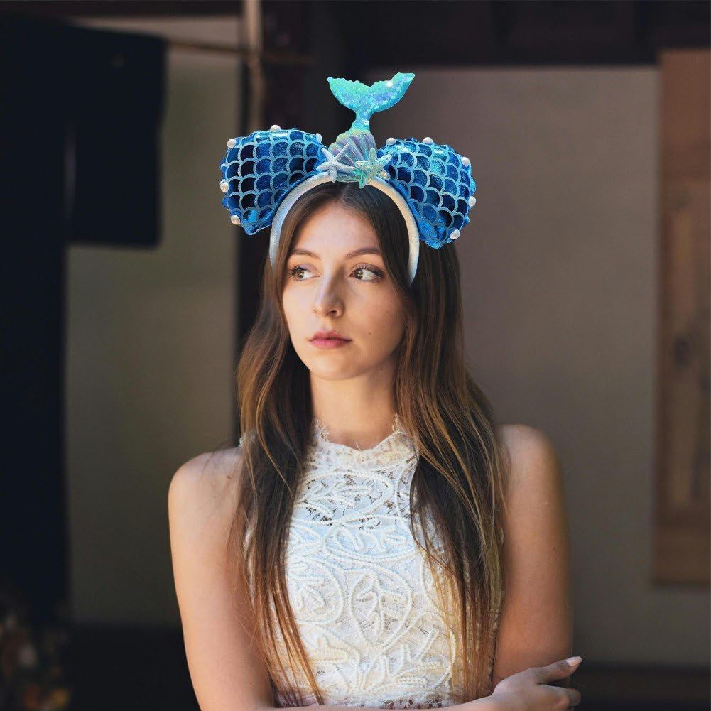Adatto come regalo: regalo unico e premuroso per gli amici che amano le sirene, portando il fascino misterioso nel mondo sottomarino. PROGETTATO ATTENTAMENTE: decorazione a coda di sirena finemente realizzata, un accessorio da sogno per gli amanti delle sirene di tutte le età. Materiale del prodotto: realizzato in resina plastica elastica leggera, comoda da indossare a lungo senza oneri. Dettagli del prodotto: 1 fascia per capelli a sirena con paillettes, dimensioni 9,84 x 9,45 pollici/25 x 24 cm, che soddisfa il tuo desiderio per il mondo sottomarino. Applicabile: tono rosa/misterioso, perfetto per carnevali, feste o abbigliamento quotidiano.
