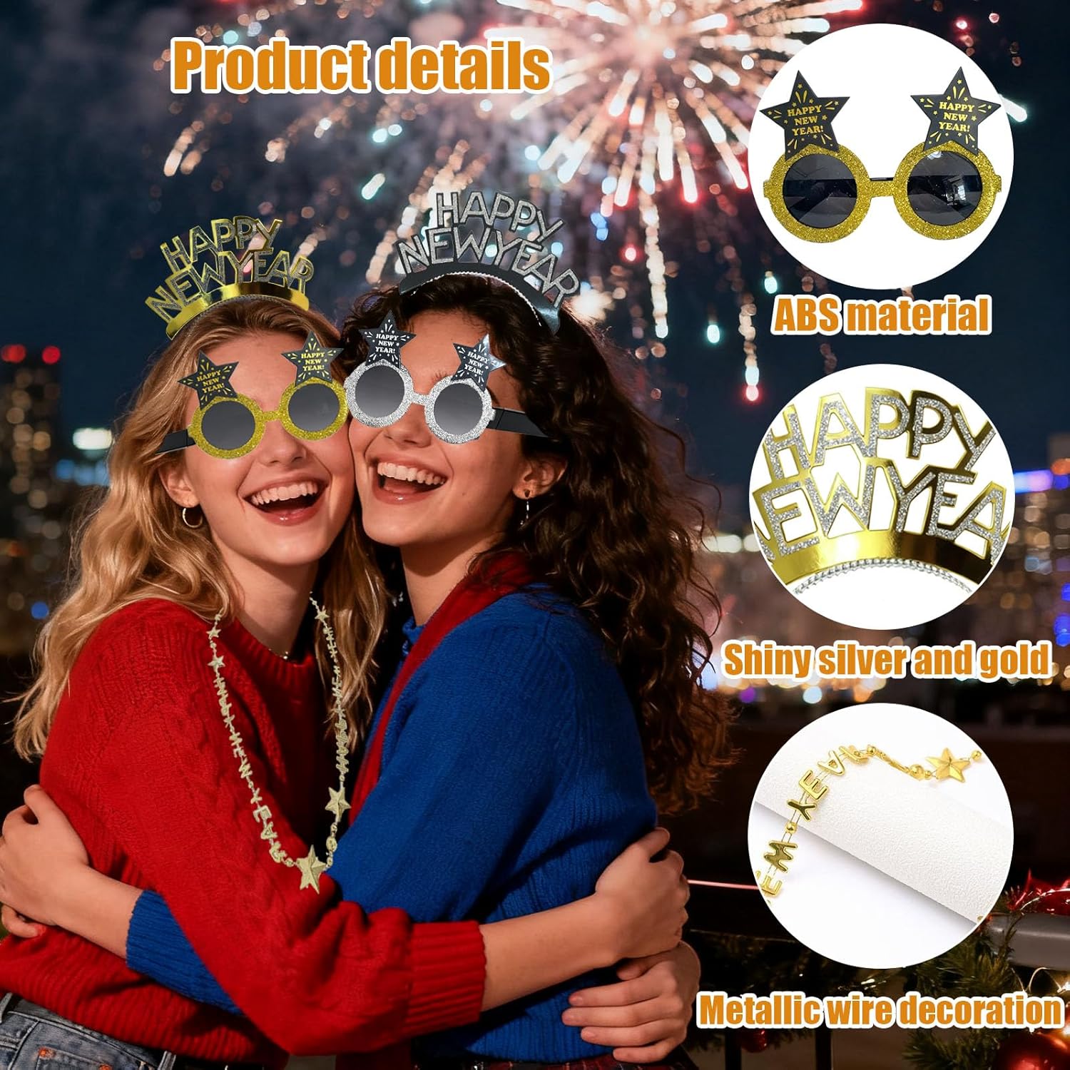 1. Set Completo di Accessori per il Capodanno 2026: Questo set include sei pezzi unici, perfetti per celebrare l'arrivo del nuovo anno. Il set comprende una fascia dorata con stelle, occhiali e collana, oltre a una fascia argentata con le stesse decorazioni, occhiali e collana. Questi accessori sono ideali per il tema della festa di Capodanno, permettendoti di abbinare facilmente i tuoi abiti da festa per un look festoso e unico per l'arrivo del 2026. 2. Materiale di Alta Qualità per Durabilità: Realizzati in plastica resistente, questi accessori per il Capodanno sono leggeri e durevoli, progettati per durare anche dopo l'uso ripetuto. La fascia stellata e gli occhiali brillanti sono resistenti, facili da indossare e non si danneggiano facilmente. Perfetti per chi cerca accessori robusti ma eleganti per le feste di fine anno. 3. Taglia Universale per Adulti e Adolescenti: La fascia per capelli e gli occhiali sono progettati con una taglia universale che si adatta comodamente a adulti e adolescenti. Grazie alla sua elasticità, la fascia è facile da indossare senza causare fastidi, rendendola ideale per lunghe serate di festa. Questo set di accessori aggiungerà sicuramente un tocco speciale al tuo look da Capodanno. 4. Design Unico con Stile Festivo: Ogni pezzo di questo set è caratterizzato da un design speciale con stelle scintillanti e decorazioni metalliche, mentre le scritte come “Happy New Year” aggiungono un tocco di allegria e auguri. La combinazione di colori oro e argento conferisce un aspetto elegante e luminoso, perfetto per far risaltare il tuo look durante le celebrazioni di Capodanno. 5. Accessori Versatili per Ogni Occasione: Questi accessori non sono solo ideali per la festa di Capodanno, ma sono perfetti anche per altre occasioni festive come le feste natalizie, i raduni familiari, i balli in maschera e altro ancora. Possono essere usati anche come oggetti per fotografie, rendendo ogni scatto ancora più memorabile. Inoltre, sono un'ottima idea regalo per chi ama festeggiare in grande stile.