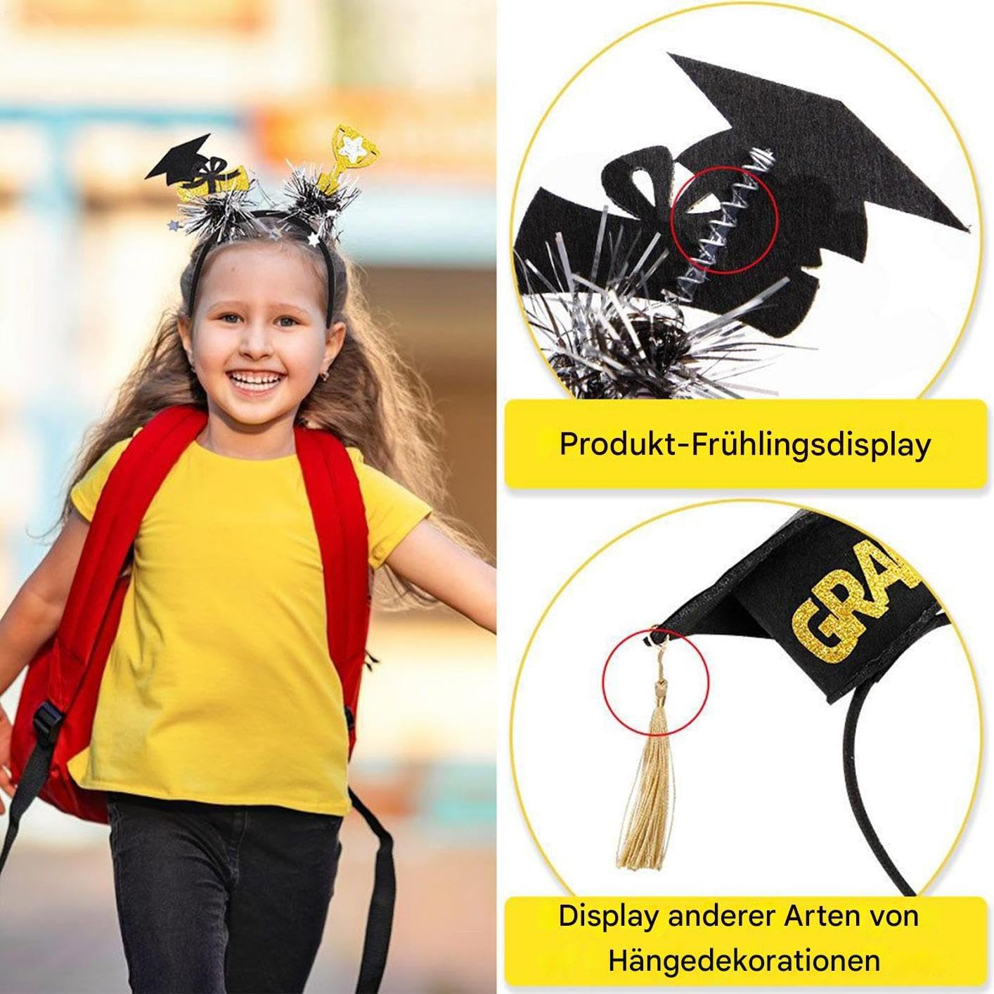 Descrizione prodotto Aumenta l'esperienza alla tua festa di laurea con il nostro set di otto diademi di laurea riutilizzabili progettati con eleganti dettagli glitterati. Adatto per eventi in età prescolare, asilo, università e molto altro ancora, questi cerchietti possono essere utilizzati anche come oggetti di scena fotografici per feste e spettacoli sul palco. Si adattano perfettamente a qualsiasi ambiente festivo e arricchiscono ogni momento indimenticabile. Specifiche: Materiale del prodotto: feltro Dimensioni del prodotto: circa 20,5 x 23,5 cm. Contenuto della confezione: 8 fasce per capelli. Note: Il colore dell'articolo potrebbe essere leggermente diverso da quello mostrato nell'immagine a causa delle differenze di illuminazione e dello schermo. A causa della differenza nella misurazione manuale, si prega di considerare una dimensione di 1-3 cm. Avviso di sicurezza Inapplicabile