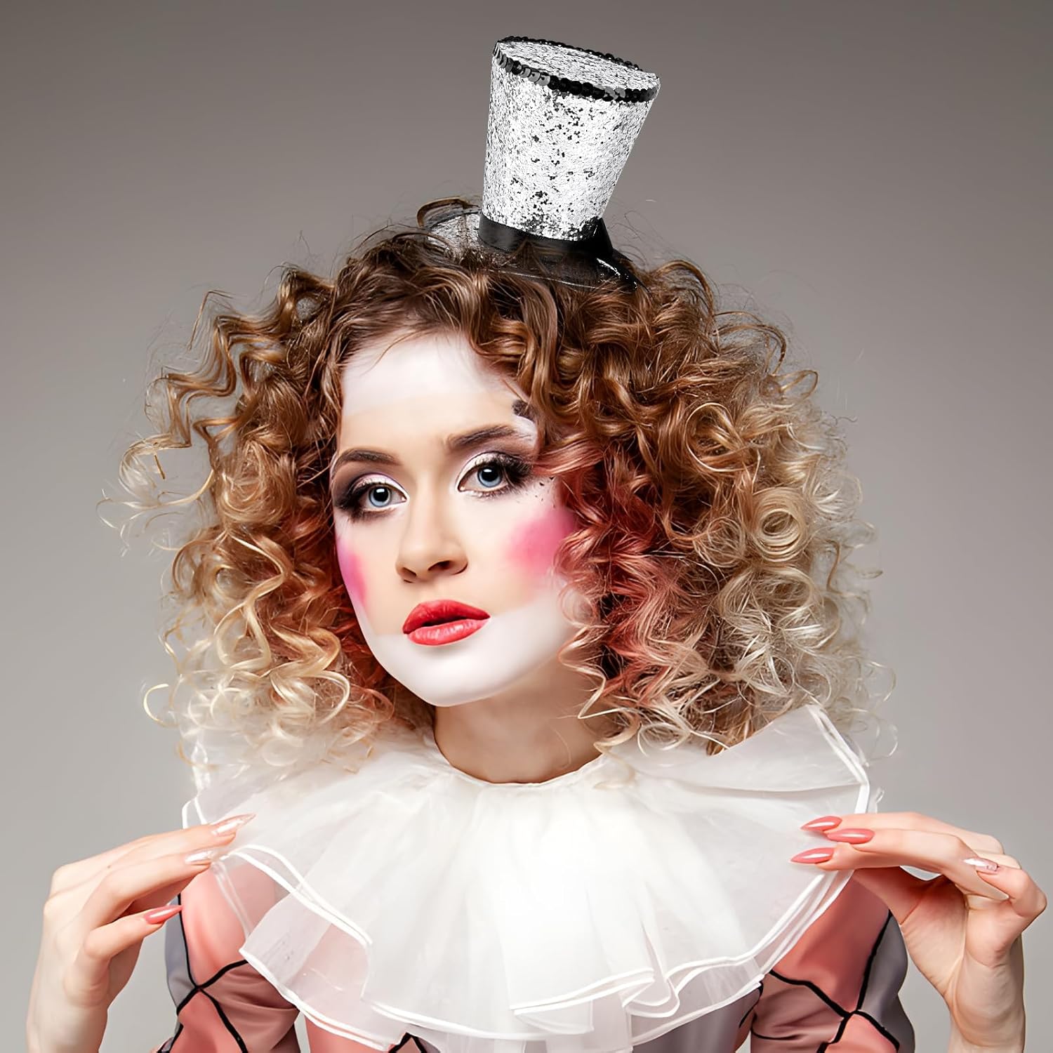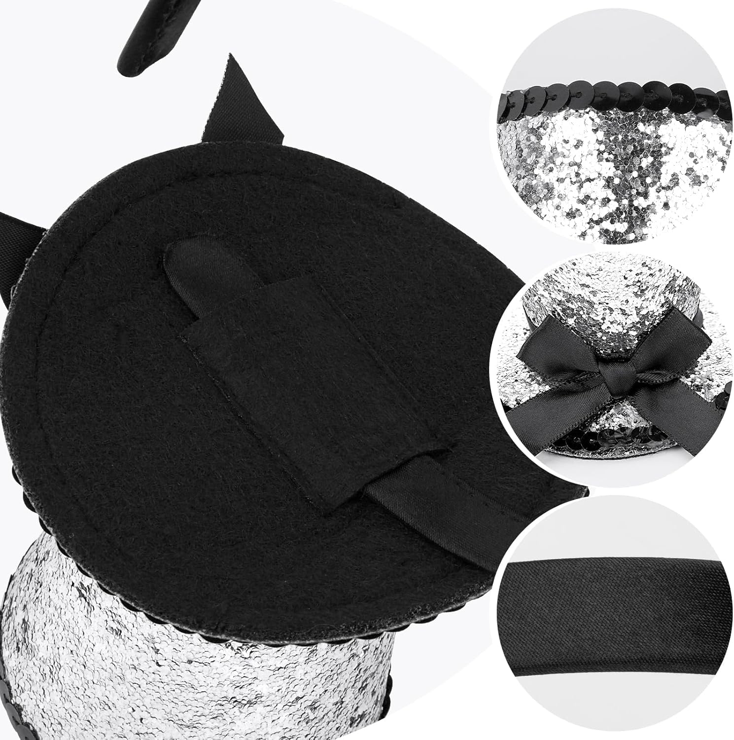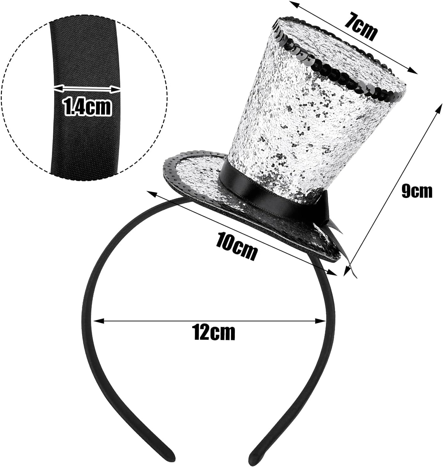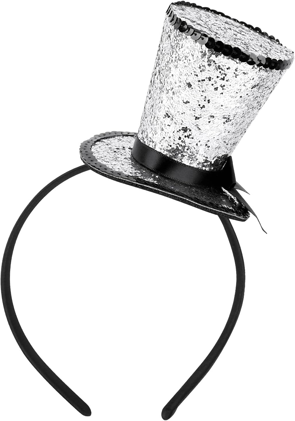 Fascia per capelli con cappello Mini cappello a cilindro Cappello glitter argento Fascia per capelli Accessori per costume per Carnevale Cosplay Capodanno