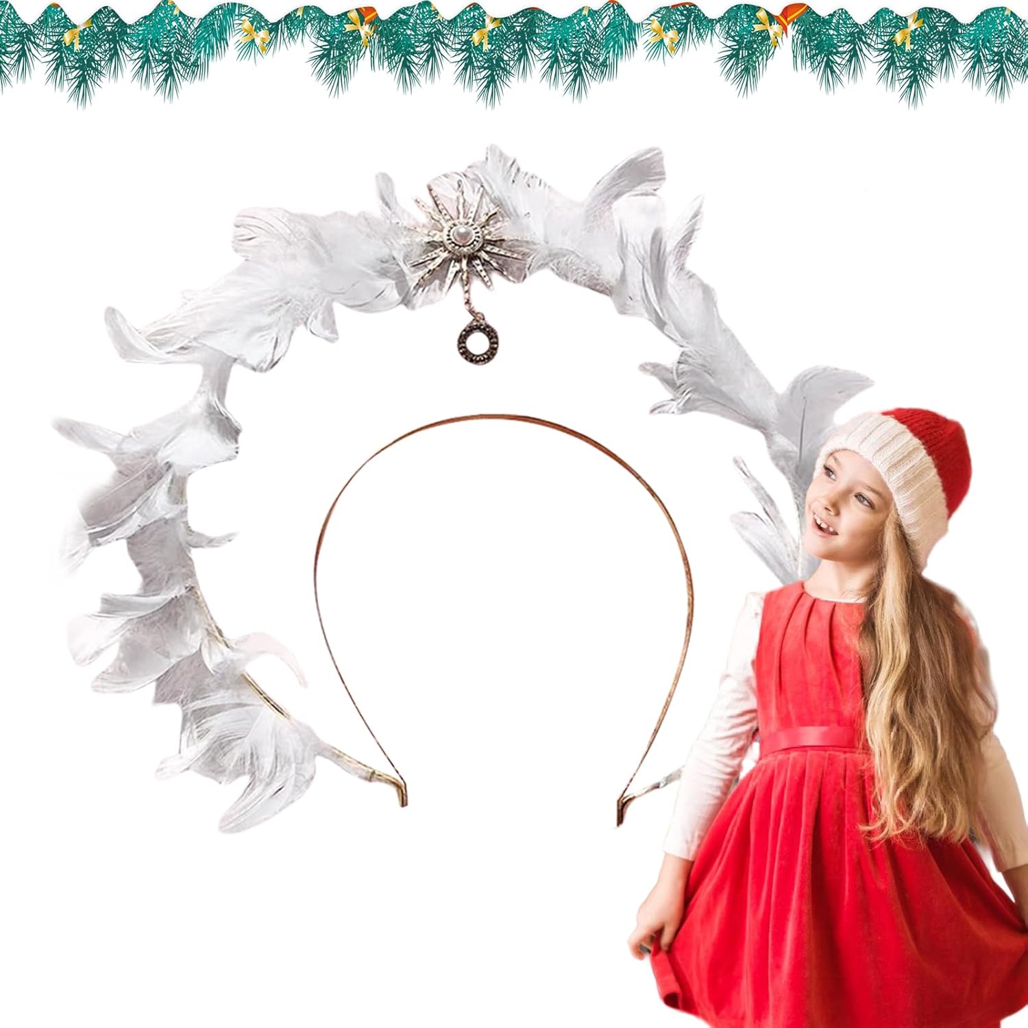 Fascia per capelli con piume d'angelo, Fascia per capelli con di elfo, di fata, per, o fascia per da festa, comode per cosplay, Natale, Halloween