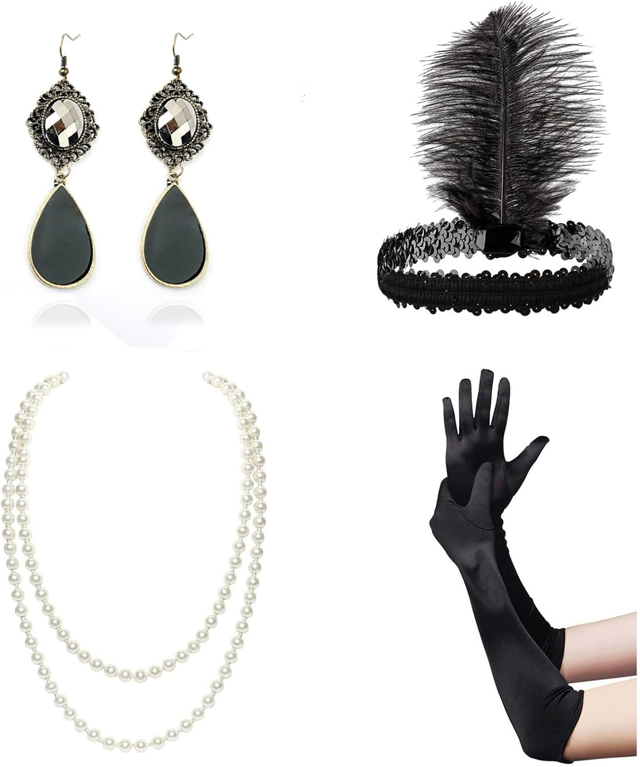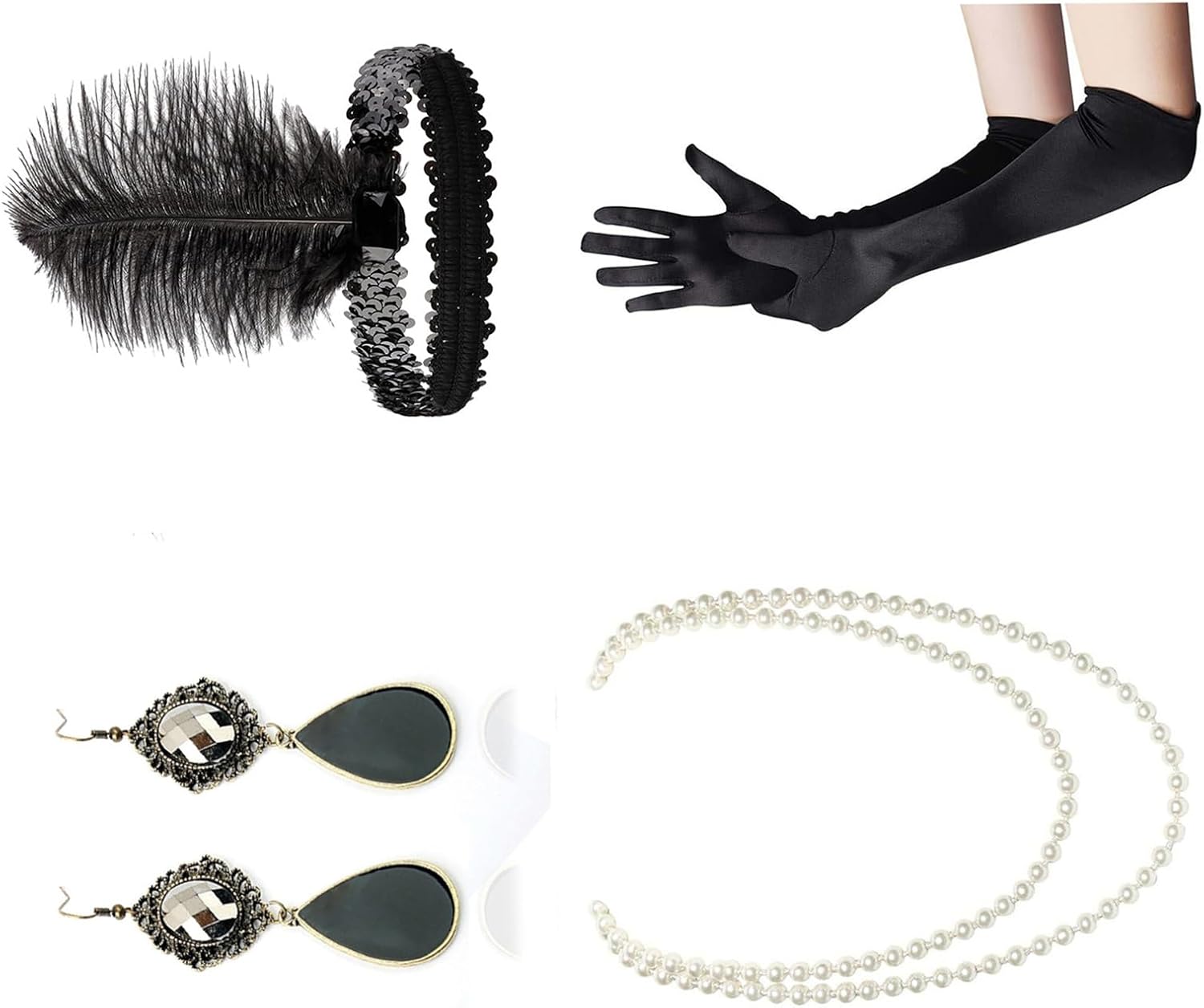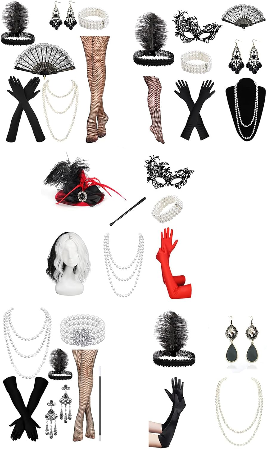 Fascia per capelli con piume, guanti lunghi e collana perle finte, set per ragazze, set accessori vintage per tea party anni '20 e '50 Caratteristiche: Aggiungi un tocco mistero e unicità tuo look da festa Halloween con questo set accessori per capelli. Adatto a chi ama partecipare a raduni a tema, spettacoli teatrali o balli in maschera. Ottimo per feste Halloween e attività gioco ruolo, ti consente esprimere la tua creatività e dichiarazione. Che tu truccatrice o semplicemente ti piaccia travestirti, questo set versatile è perfetto per creare look unici e accattivanti. Realizzati in resina e poliestere, questi accessori per capelli dal design raffinato sono comodi da indossare e possono essere facilmente attaccati e rimossi. Specifiche: Materiale: resina+poliestere Opzioni colore: Sono disponibili 5 colori come mostrato nell'immagine. Peso della confezione: 200 g Taglia calzini: taglia Peso: 35-60 kg Circonferenza della testa: 54-60 cm/21,25-23,62 pollici La confezione include: Set oggetti scena per cosplay della festa Halloween Nota: prega consentire un errore 1-2 cm dovuto alla misurazione manuale. Assicurati che non ti dispiaccia prima un'offerta. A causa della differenza tra i diversi monitor, l'immagine potrebbe non riflettere colore effettivo articolo Grazie!