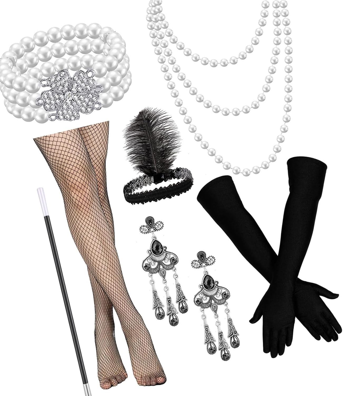 Fascia per capelli con piume, guanti lunghi e collana perle finte, set per ragazze, set accessori vintage per tea party anni '20 e '50 Caratteristiche: Aggiungi un tocco mistero e unicità tuo look da festa Halloween con questo set accessori per capelli. Adatto a chi ama partecipare a raduni a tema, spettacoli teatrali o balli in maschera. Ottimo per feste Halloween e attività gioco ruolo, ti consente esprimere la tua creatività e dichiarazione. Che tu truccatrice o semplicemente ti piaccia travestirti, questo set versatile è perfetto per creare look unici e accattivanti. Realizzati in resina e poliestere, questi accessori per capelli dal design raffinato sono comodi da indossare e possono essere facilmente attaccati e rimossi. Specifiche: Materiale: resina+poliestere Opzioni colore: Sono disponibili 5 colori come mostrato nell'immagine. Peso della confezione: 200 g Taglia calzini: taglia Peso: 35-60 kg Circonferenza della testa: 54-60 cm/21,25-23,62 pollici La confezione include: Set oggetti scena per cosplay della festa Halloween Nota: prega consentire un errore 1-2 cm dovuto alla misurazione manuale. Assicurati che non ti dispiaccia prima un'offerta. A causa della differenza tra i diversi monitor, l'immagine potrebbe non riflettere colore effettivo articolo Grazie!