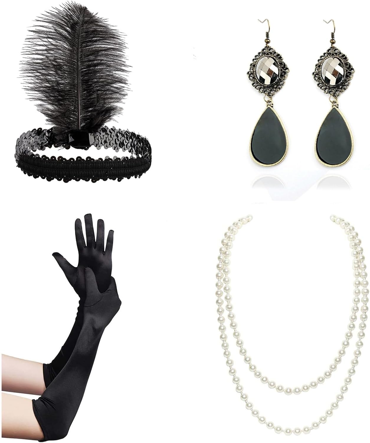 Set di guanti lunghi, fascia per capelli e collana di perle finte per ragazze - Set di accessori vintage anni '20 e '50 Caratteristiche: Aggiungi un tocco di mistero e unicità al tuo look da festa di Halloween con questo set di accessori per capelli. Adatto a chi ama assistere ad incontri a tema, spettacoli teatrali o balli in maschera. Ideale per feste di Halloween e attività di gioco di ruolo, ti permette di esprimere la tua creatività e fare una dichiarazione. Che tu sia una truccatrice o semplicemente ami travestirti, questo set versatile è progettato per creare look unici e accattivanti. Realizzati in resina e poliestere, questi accessori per capelli dal design raffinato sono comodi da indossare e possono essere facilmente attaccati e rimossi. Caratteristiche: Resina + poliestere. Colori disponibili: sono disponibili 5 colori come mostrato nell'immagine. Peso della confezione: circa 200 g. Taglia calze: peso: 35-60 kg. Circonferenza della testa: ca. 54-60cm. Contenuto della confezione: Set di oggetti di scena per cosplay della festa di Halloween Nota: Si prega di consentire un errore di 1-2 cm a causa della misurazione manuale. Si prega di ordinare solo se si accetta questo margine di errore. Il colore dell'articolo può variare dalla foto a seconda delle impostazioni di visualizzazione e luminosità del computer. Grazie