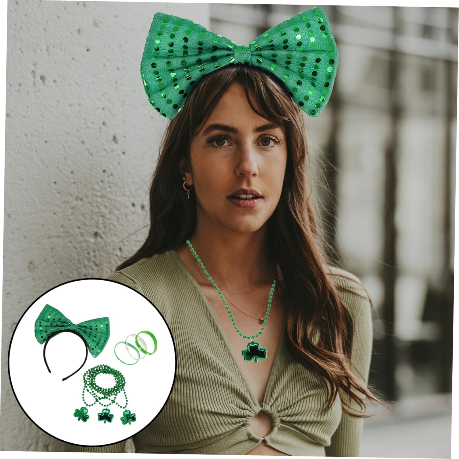 Il pacchetto include 1 fascia per , 1 collana, 3 braccialetti Caratteristiche -Comfort leggero: i materiali leggeri ti assicurano di poter godere dei festeggiamenti di San Patrizio senza il fastidio di accessori pesanti che ti trascinano giù collana con trifoglio irlandese -Design sostenibile: realizzato con attenzione alla responsabilità ambientale, questo set di accessori è progettato per durare, riducendo la necessità di frequenti sostituzioni dell'abito di San Patrizio -Dimensioni: 7,00X7,00X1,20 cm/2,75X2,75X0,47 pollici gioielli greci - Dimensioni: 44,00X4,50X0,50 cm/17,29X1,77X0,20 pollici orecchini verdi da donna - : verde, articoli per la festa di San Patrizio -Materiale: stoffa, collana di plastica per il di San Patrizio -Divertimento per tutti: che tratti di una riunione di famiglia o di una festa, questo versatile set piace a tutti, rendendolo una pratica collezione di accessori per varie occasioni collane di San Patrizio -Dimensioni: 22,00X19,00X1,80 cm/8,65X7,47X0,71 pollici fascia per le feste irlandesi Informazioni sulle merci collana trifoglio Indossa questi pezzi con orgoglio mentre ti unisci a noi, creando momenti indimenticabili con amici e persone care. collana di San Patrizio Il set di accessori per il di San Patrizio è un must per chiunque voglia festeggiare con stile. accessori per il di San Patrizio all'ingrosso I fortunati disegni del trifoglio non sono solo belli ma anche simbolici, rappresentando la buona fortuna. collana luminosa di Halloween La nostra collana di San Patrizio