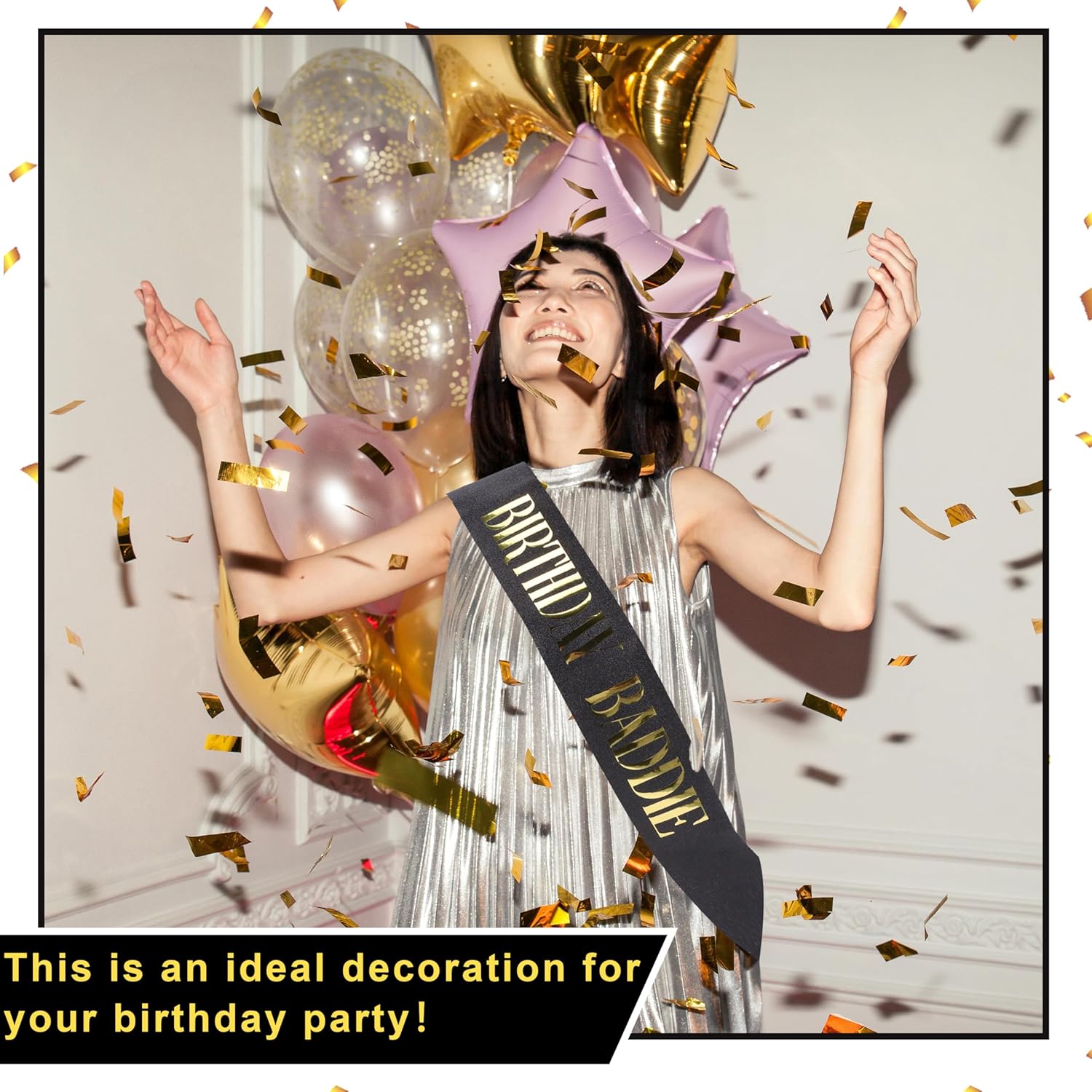 Colore classico: la fascia di compleanno adotta una classica combinazione nera e argento, con il nero stabile e atmosferico, e l'argento abbagliante e accattivante. Il carattere argento di "birthday baddie" colpisce visivamente contro la fascia nera di compleanno. Che si tratti di una festa vivace o di scattare foto come ricordo, può attirare immediatamente l'attenzione di tutti e rendere la stella del compleanno al centro dell'attenzione Materiale scalogno di alta classe: la fascia per compleanno è realizzata con cura in polvere di scalogno, che è fine e uniforme, saldamente attaccata e non cade facilmente. Sotto l'illuminazione della luce, brilla con una lucentezza affascinante, aggiungendo un'atmosfera lussuosa e alla moda alla fascia, migliorando anche la qualità del prodotto, rendendo la stella di compleanno unica e nobile Design divertente: il "compleanno baddie" sulla fascia di compleanno nera non solo mostra una personalità unica, ma aggiunge anche un'atmosfera gioiosa e rilassata alla festa di compleanno. Rompe la monotonia delle tradizionali decorazioni di compleanno ed esprime benedizioni alla stella del compleanno in modo divertente, rendendo tutti coloro che la vedono sorridere consapevolmente e rendendo l'atmosfera della festa più vivace Ampiamente applicabile: questa fascia di compleanno è lunga 160 cm e viene fornita con una spilla che può essere regolata liberamente in base alle esigenze personali. Questa fascia di compleanno per donne e uomini è semplice ed elegante, adatta sia per le donne per mostrare eleganza e giocosità, sia per gli uomini per mostrare individualità e moda, raggiungendo davvero la compatibilità di genere Focus sulla festa: questa fascia di buon compleanno funge da decorazione per una festa di compleanno, migliorando istantaneamente il senso della cerimonia della festa. Indossando questa tracolla, la stella del compleanno sembra avere un alone protagonista, evidenziando il significato speciale del loro compleanno. Non è solo una decorazione, ma anche un elemento indispensabile per le feste di compleanno, lasciando ricordi indimenticabili e belli per le stelle di compleanno