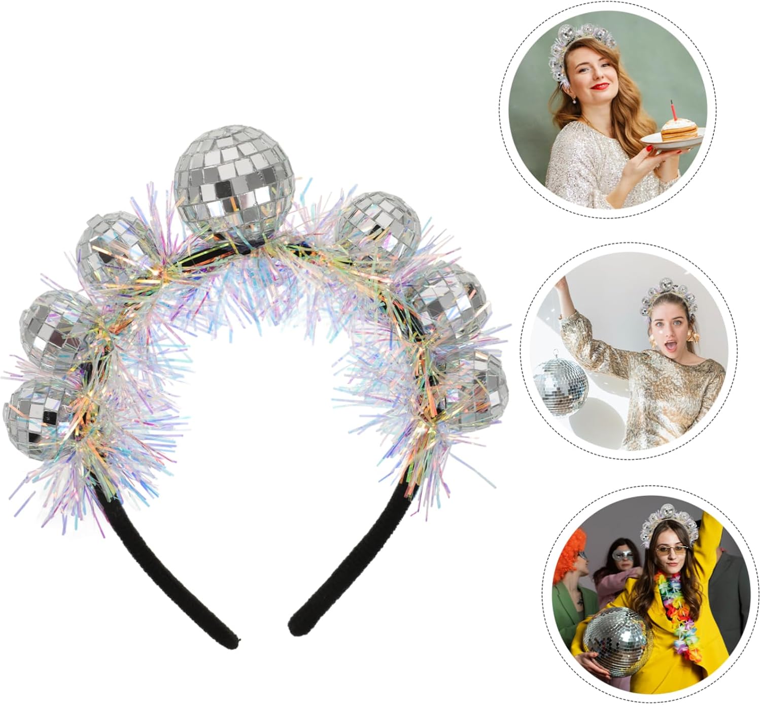 Decorazione per feste: cerchietto dal design retrò con strisce di pellicola, che aggiunge un tocco alla moda tuo look, cerchietto decorativo per feste Fascia per da festa: l'accessorio perfetto per varie occasioni speciali come matrimoni, feste e altri eventi, aggiungendo un elemento vibrante e vivace tuo outfit, fascia per unica per la festa Decorazione per : la fascia è un ottimo accessorio per le feste di natale e altre occasioni festive, ornamento per Fascia per da festa: questa fascia per a forma di palla da discoteca è leggera e non risulta pesante da indossare Fascia per cosplay: questo è un fantastico accessorio per cosplay o foto che aggiungerà più fascino e bellezza tuo look, articoli per feste