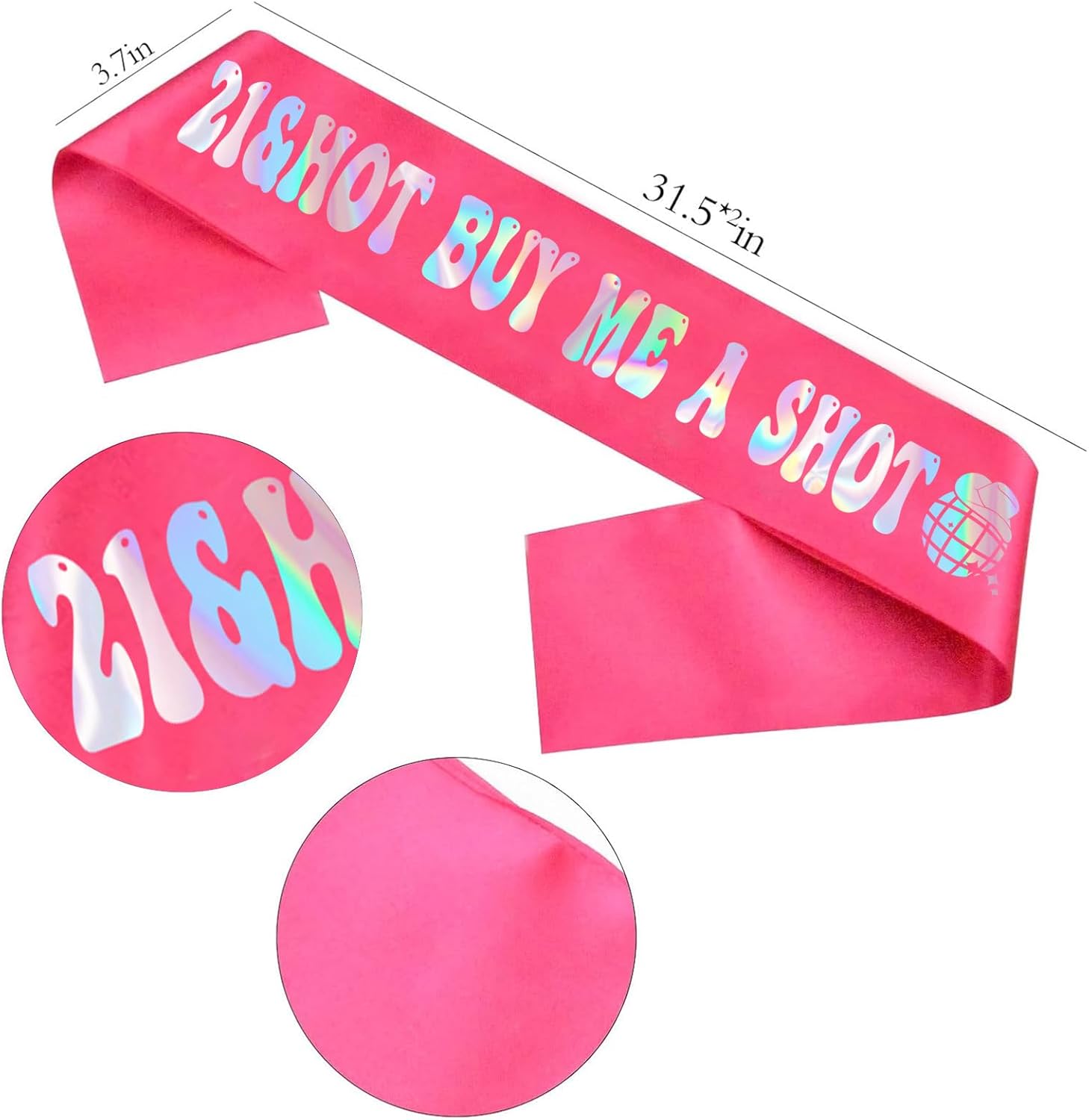 Fascia per il 21° compleanno da donna: perfetta per la tua festa di compleanno, fascia dal design unico con messaggio "21 & Hot BUY ME A SHOT" ti sentirai bella e sicura. Vestiti e divertiti ad essere al centro dell'attenzione per il tuo compleanno Ideale per feste di buon compleanno: è un regalo premuroso per le tue amate donne, ideale come decorazione per feste di compleanno, accessori per feste di compleanno, regali di compleanno per ragazze, puoi acquistarlo per tua figlia, nipote, amici, sorella, ecc Qualità premium: elegante fascia per compleanno realizzata in tessuto di alta qualità, morbido raso liscio con scritta in alluminio. Questa fascia di compleanno non si strappa o si piega facilmente. Non c'è bisogno di preoccuparsi che le lettere si staccino. Durevole e riutilizzabile, si può tenere come ricordo Taglia unica: la lunghezza della fascia per compleanno è di 80 cm e la larghezza è di 9,4 cm. Una spilla da balia è inclusa all'interno, che può essere utilizzata per fissare la fascia, la nostra fascia è adatta a tutti, si può indossare con fiducia. Questa elegante fascia di compleanno ti farà risaltare e accattivante Il nostro servizio: la fascia di compleanno "21&Hot BUY ME A SHOT" è confezionata con cura, saremo responsabili per loro. se per qualsiasi motivo, non sei soddisfatto, mettiti in contatto con noi e promettiamo di renderlo migliore o darti il rimborso del 100%. Il nostro obiettivo è quello di offrire a tutti i nostri clienti una piacevole esperienza di acquisto.