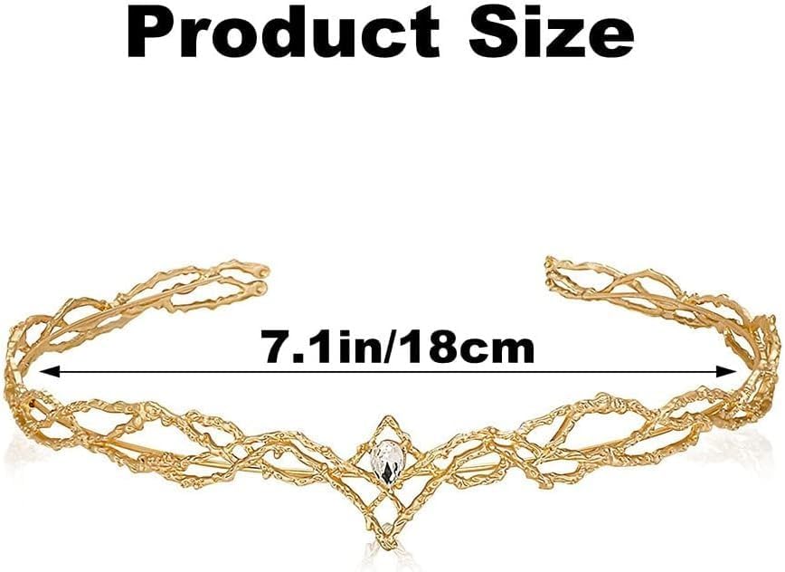 Realizzata in lega di alta qualità, questa tiara da elfo vintage è robusta, affidabile e progettata per resistere a un uso ripetuto. Resiste alla rottura, all'ossidazione e allo scolorimento, garantendo che rimanga un accessorio stupendo per le tue feste ed eventi per molti anni a venire. Adornata con scintillanti strass accuratamente incastonati su una base color oro, questa tiara emana un fascino esotico e sofisticato. I cristalli abbaglianti catturano splendidamente la luce, aggiungendo un tocco di lusso a qualsiasi outfit e facendoti risaltare senza sforzo in ogni occasione. Progettata per uno styling senza problemi, questa tiara si inserisce facilmente in tutti i tipi di capelli, dai lisci e ricci agli acconciature raccolte e semi-raccolte. Si abbina perfettamente a diversi outfit, che tu stia partecipando a una festa in costume, a un matrimonio o a un evento festivo, aiutandoti a ottenere un look splendido che mette in risalto il tuo stile unico. Con un design regolabile, questa tiara si adatta comodamente alla maggior parte degli uomini e delle donne adulte. È ultra-leggera, quindi puoi indossarla per ore senza sentirti affaticato, rendendola perfetta per eventi di tutta la giornata come matrimoni, servizi fotografici o sessioni di cosplay maratona. Questa corona elfica è un accessorio versatile ideale per una vasta gamma di occasioni, tra cui cosplay, fiere rinascimentali, Halloween, Natale, compleanni, riprese di cortometraggi, mascherate, ricevimento di matrimonio e eventi a tema bosco/foresta. Serve anche come fantastico prop fotografico, aggiungendo un tocco magico ai tuoi momenti memorabili.