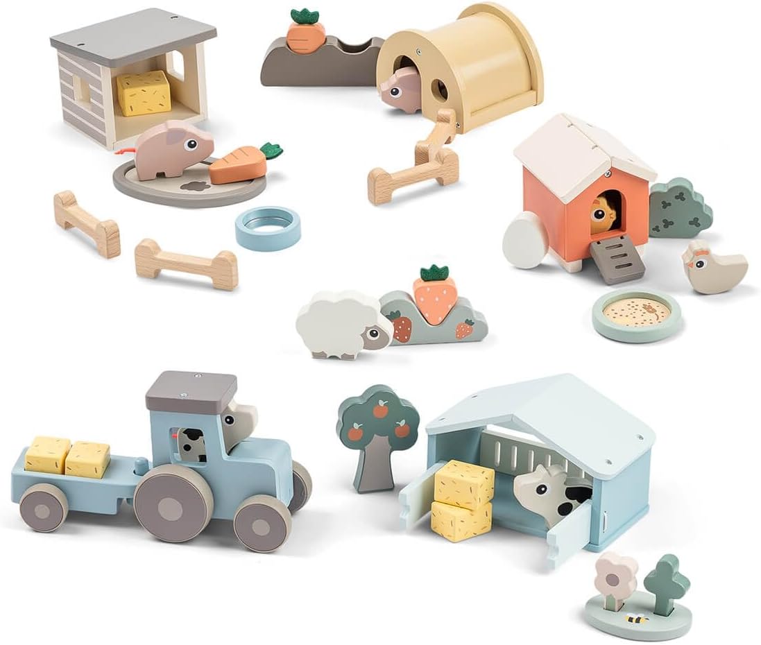 Incoraggia l'immaginazione e il linguaggio – Supporta la narrazione iniziale e lo sviluppo del linguaggio attraverso il gioco creativo. Allena la motricità fine e la coordinazione: ideale per promuovere in modo giocoso la presa, il movimento e la coordinazione occhio-mano. Perfetto per le mani dei più piccoli: design a misura di bambino, facile da impugnare e verniciato in modo sicuro con vernici a base d'acqua. Giocattoli in legno sostenibili: realizzati con legno di provenienza responsabile, durevoli e rispettosi dell'ambiente. Espandibile con altri set – Può essere combinato con altri set Tiny Farm per ancora più avventure in fattoria.