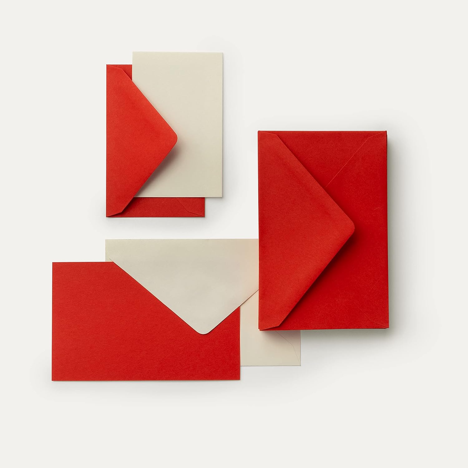 Buste e cartoncini in carta Burano Cartoncino certificato FSC da 200gr e Busta coordinata da 90gr Formato 72x110mm Colore: rosso