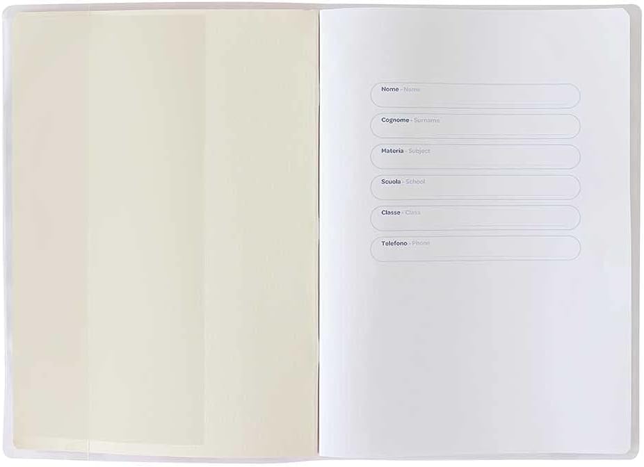 Copri quaderni trasparenti con finitura liscia. Realizzati in polipropilene. Formato interno 21 x 29.7 cm (A4) Leggeri, pratici e particolarmente resistenti per un uso quotidiano con massima protezione per il tuo quaderno Alette ripiegate e tasche interne con etichetta personalizzabile Confezione da 10 pezzi