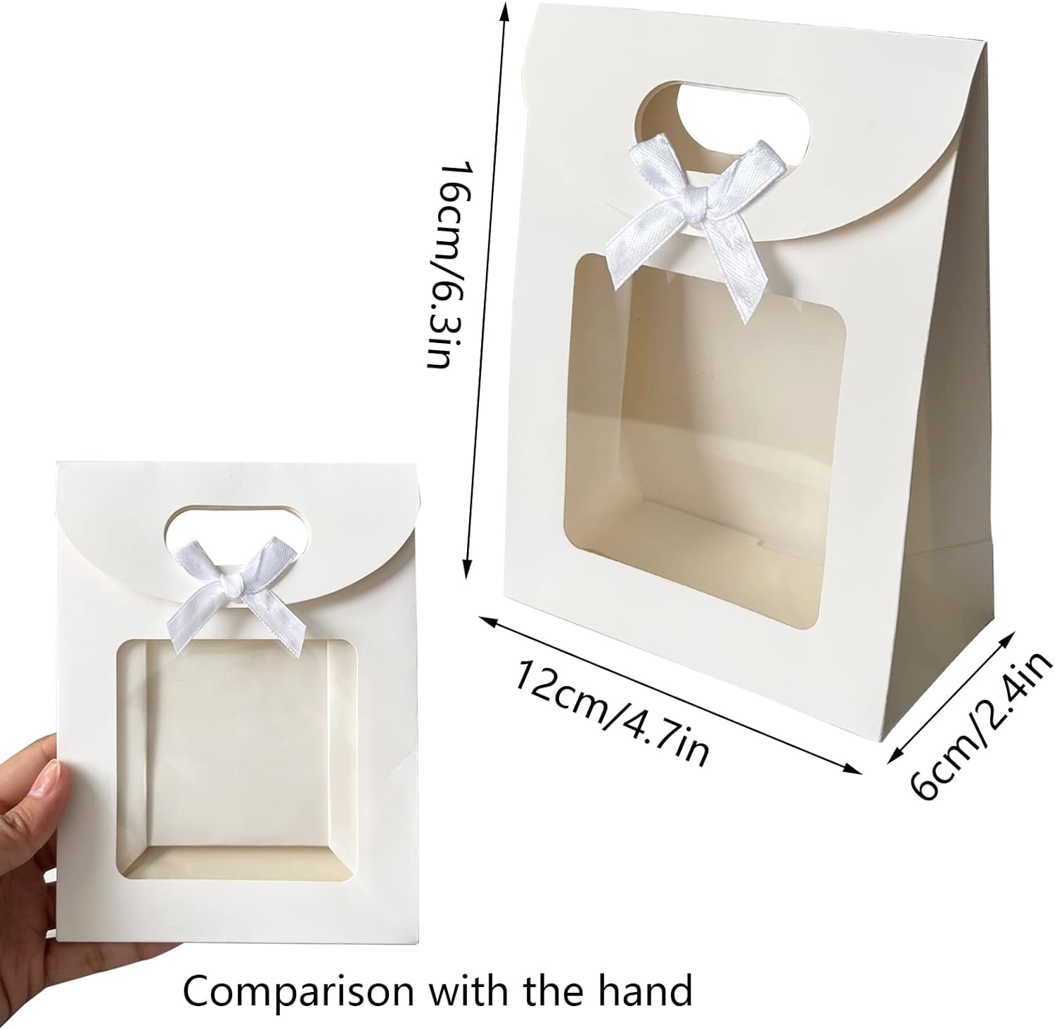 【Materiale di alta qualità】: i sacchetti di carta bianca sono realizzati in carta kraft. Il sacchetto regalo è spesso e resistente, bello, liscio al tatto, non facile da danneggiare, riutilizzabile, non tossico e può essere utilizzato a lungo. 【Design perfetto】: la confezione regalo in carta kraft ha una maniglia e una finestra di visualizzazione, che non solo la rende facile da tenere ma ti consente anche di vedere gli oggetti all'interno. Inoltre, la base rettangolare garantisce che la borsa rimanga in posizione verticale e così tutto ciò che contiene. Facile da riporre: i sacchetti di carta kraft bianca sono pieghevoli e misurano ca. 12*6*16 cm quando aperto e ca. 12*2*16 cm quando piegato. Puoi riporre le scatole regalo Kraft in posizione piatta in modo che non occupino troppo spazio. 【Versatile】 Il sacchetto regalo in carta kraft bianca può essere utilizzato per confezionare cioccolatini, dolci nuziali, dolci, gioielli e piccoli regali. Può essere utilizzato per Natale, compleanni, appuntamenti, lauree, Pasqua e altre festività. 【Il miglior regalo】: i sacchetti regalo con finestra bianca sono perfetti per confezionare regali o regali principali, pieni di regali, dolci, snack e altro per i tuoi cari. Stupirai i tuoi cari.