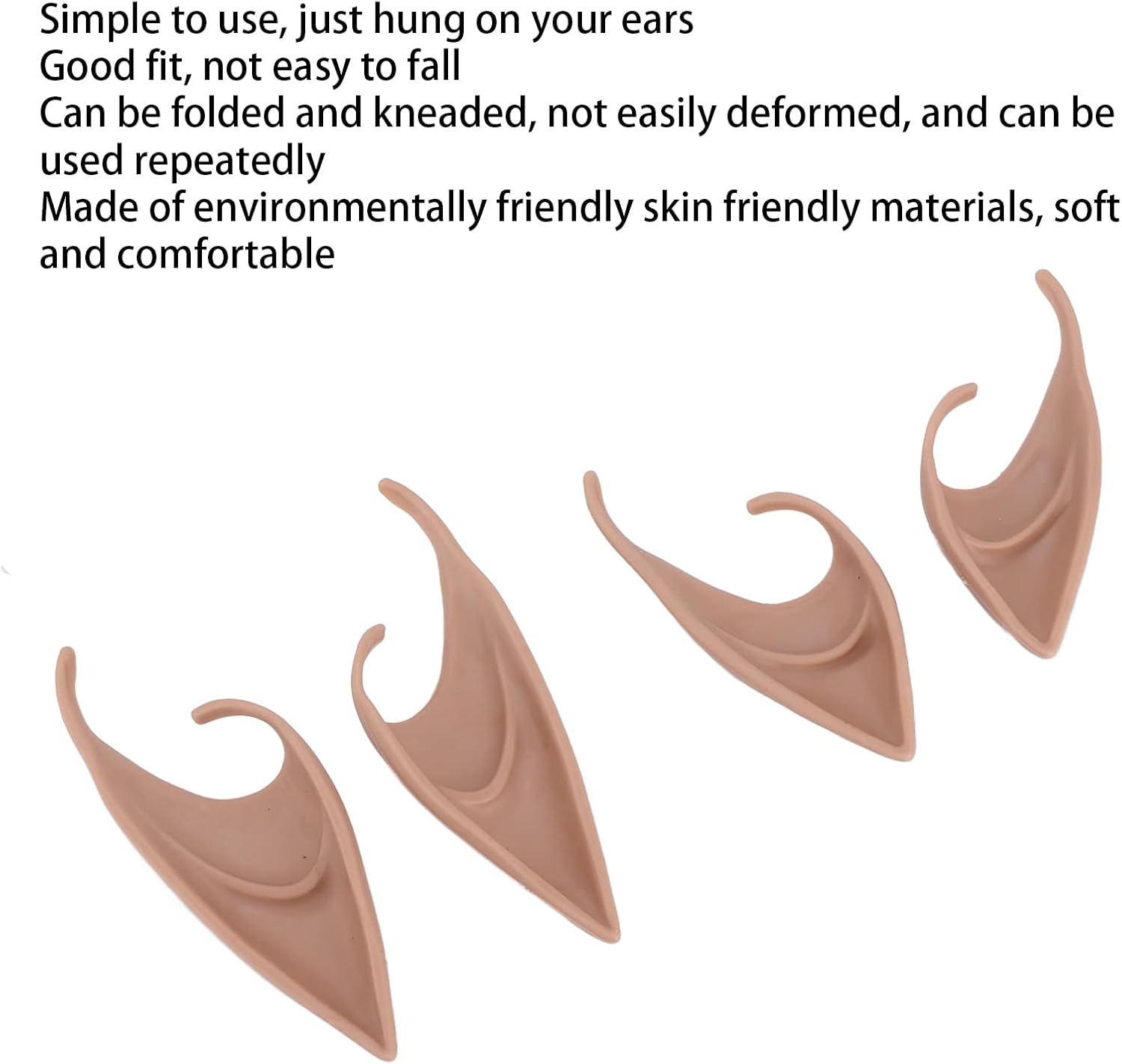 [Ideale per varie occasioni] Adatto a giochi di ruolo, Halloween, Natale, Carnevale, palla fantasiosa e altre feste a tema. [Accessorio versatile in costume] Ottimo per vestirsi come fata, elfo o zombi, aggiungendo fascino al tuo look. [Robusto e riutilizzabile] può essere piegato e impasto senza deformazione, realizzato in materiale in gomma per uso duraturo. [Comodo da indossare] a base di materiale in gomma morbido e adatto alla pelle, garantisce comfort per un'usura prolungata. [Facile da usare e di sicurezza] Appendere direttamente sull'orecchio, si adatta saldamente senza cadere, utilizzare il nastro a doppia faccia maggiore sicurezza.
