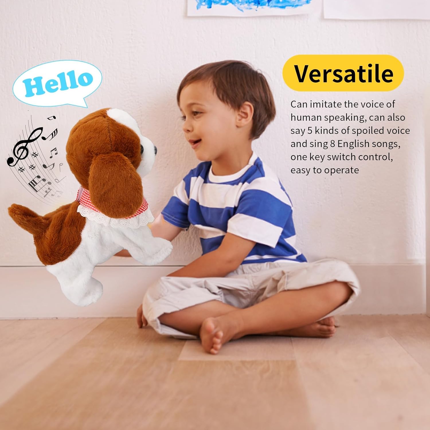 [Durata della batteria lunga] Utilizzare 3 batterie AA (non incluse) per un lungo periodo di gioco per garantire prestazioni permanenti e affidabili per ore divertenti. [Adorabile design] Questo giocattolo per cambiare e abbaiare i cuccioli è un compagno di animale domestico dolce e adorabile che conduce bambini di tutte le età alla gioia e all'intrattenimento. [Funzioni impegnate] Le funzioni interattive includono l'insegnamento delle lingue, le frasi viziate e le canzoni inglesi che possono essere riprodotte in modo creativo e apprendere attraverso la riproduzione. [Facile manutenzione] Questo lussuoso animale domestico è facile da pulire e spremere dai materiali di prima classe e lo mantiene nuovo e presentato per la gioia a lungo termine. [Giocattoli multiplo] adatti per uso interno ed esterno, nei parchi per bambini, nei giardini e nelle case infantili che offrono intrattenimento infinito per più di 4 anni.