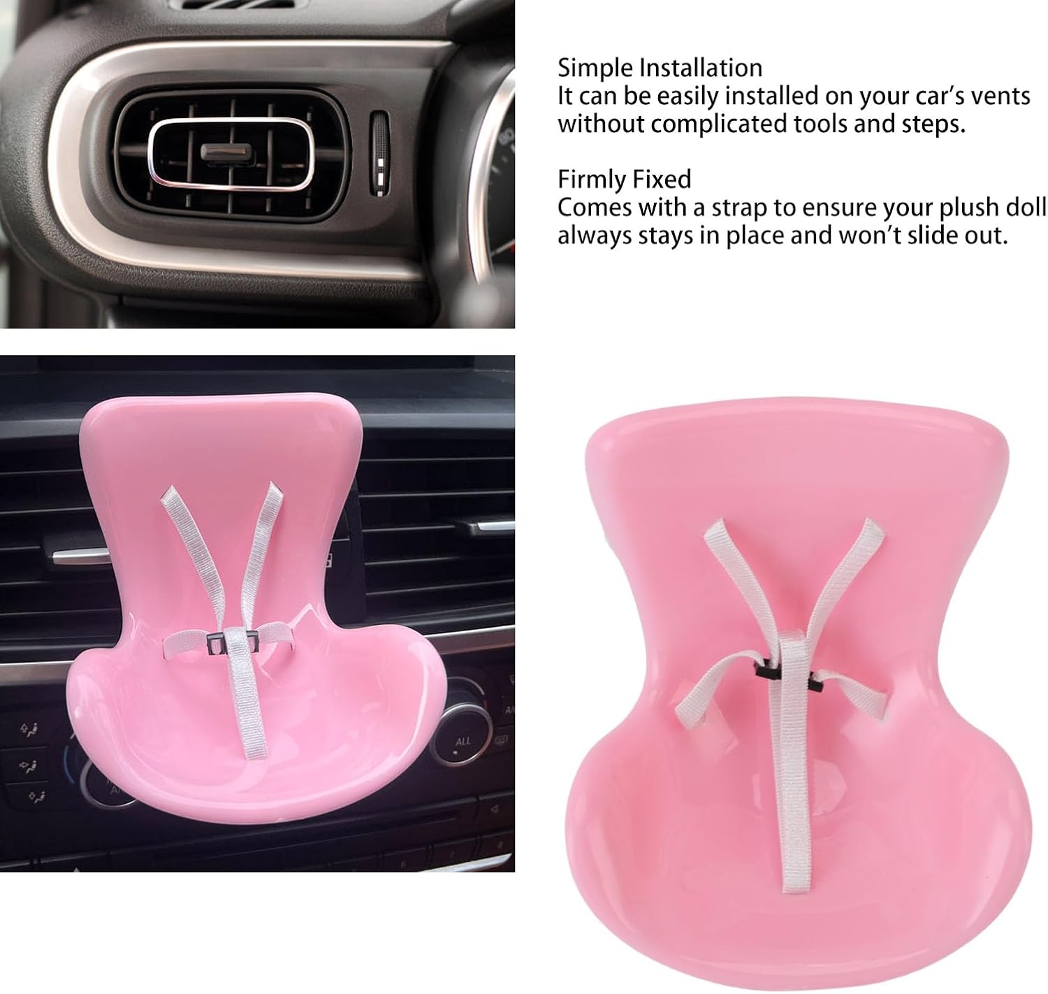 Installazione senza sforzo: il nostro seggiolino per auto delle bambole è progettato per un attacco rapido e veloce alla presa d'aria della tua auto, consentendo la configurazione in pochi secondi. Si prega di notare che la staffa del sedile e le bambole non sono incluse, assicurandoti di poterlo personalizzare a tuo piacimento. Sedili comodi e divertenti: questo delizioso sedile offre un posto accogliente per le tue bambole, trasformando i viaggi con i tuoi peluche preferite in un'esperienza piacevole. Design compatto per il risparmio spaziale: con le sue dimensioni compatte, questa sedia di bambole occupa spazio minimo, rendendo ottimo per la decorazione dell'auto o per migliorare l'estetica nella tua stanza o in ufficio. La sua piccola impronta gli consente di fondersi perfettamente in qualsiasi ambiente. Cintura di sicurezza : dotata di una cintura di sicurezza affidabile, la nostra sedia da auto bambola assicura che i tuoi peluche rimangano saldamente in posizione durante il viaggio. Materiali sicuri: realizzato in plastica di alta qualità, questo sedile delle bambole è robusto, progettato per resistere all'uso quotidiano senza odori spiacevoli. Crea un ambiente sicuro per i tuoi cari giocattoli, rendendolo un'aggiunta fantastica agli interni della tua auto.