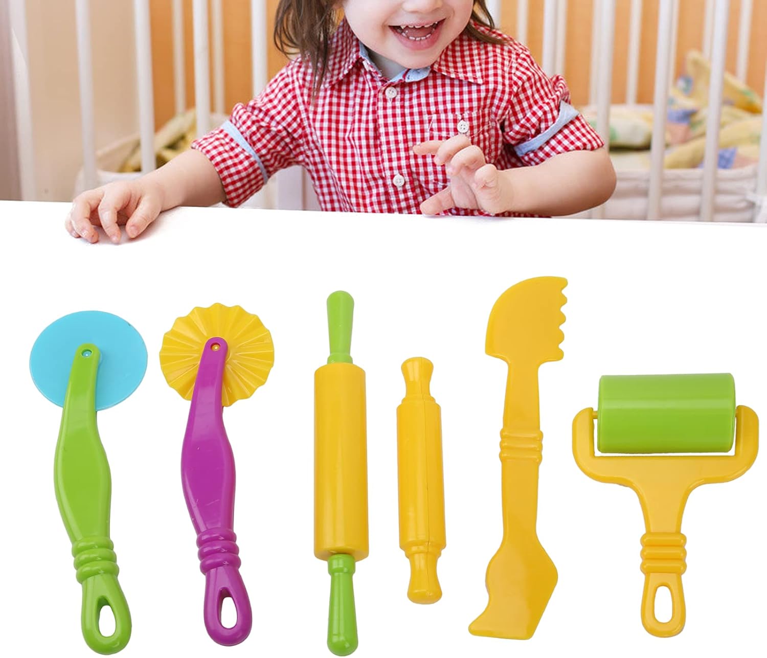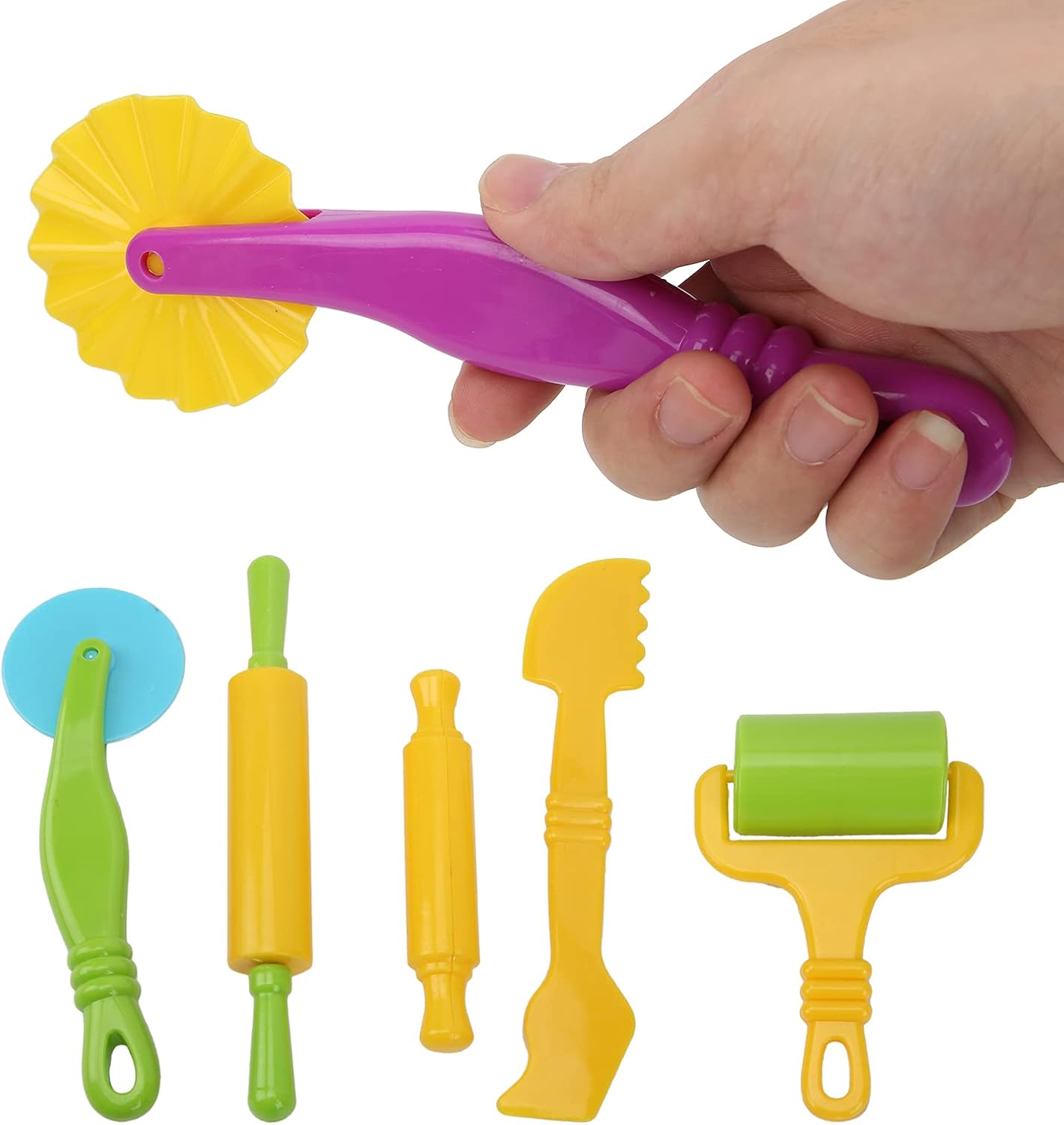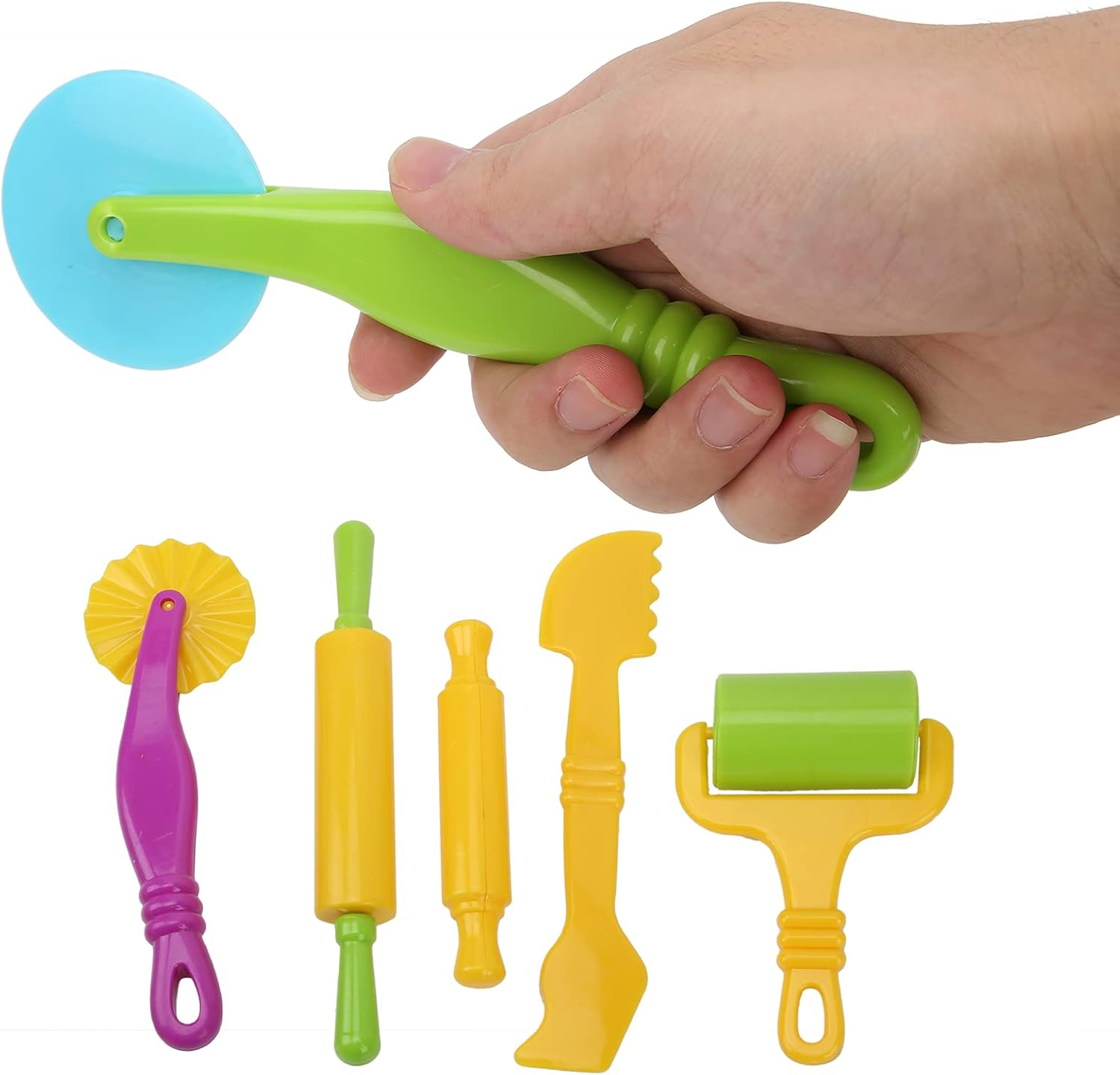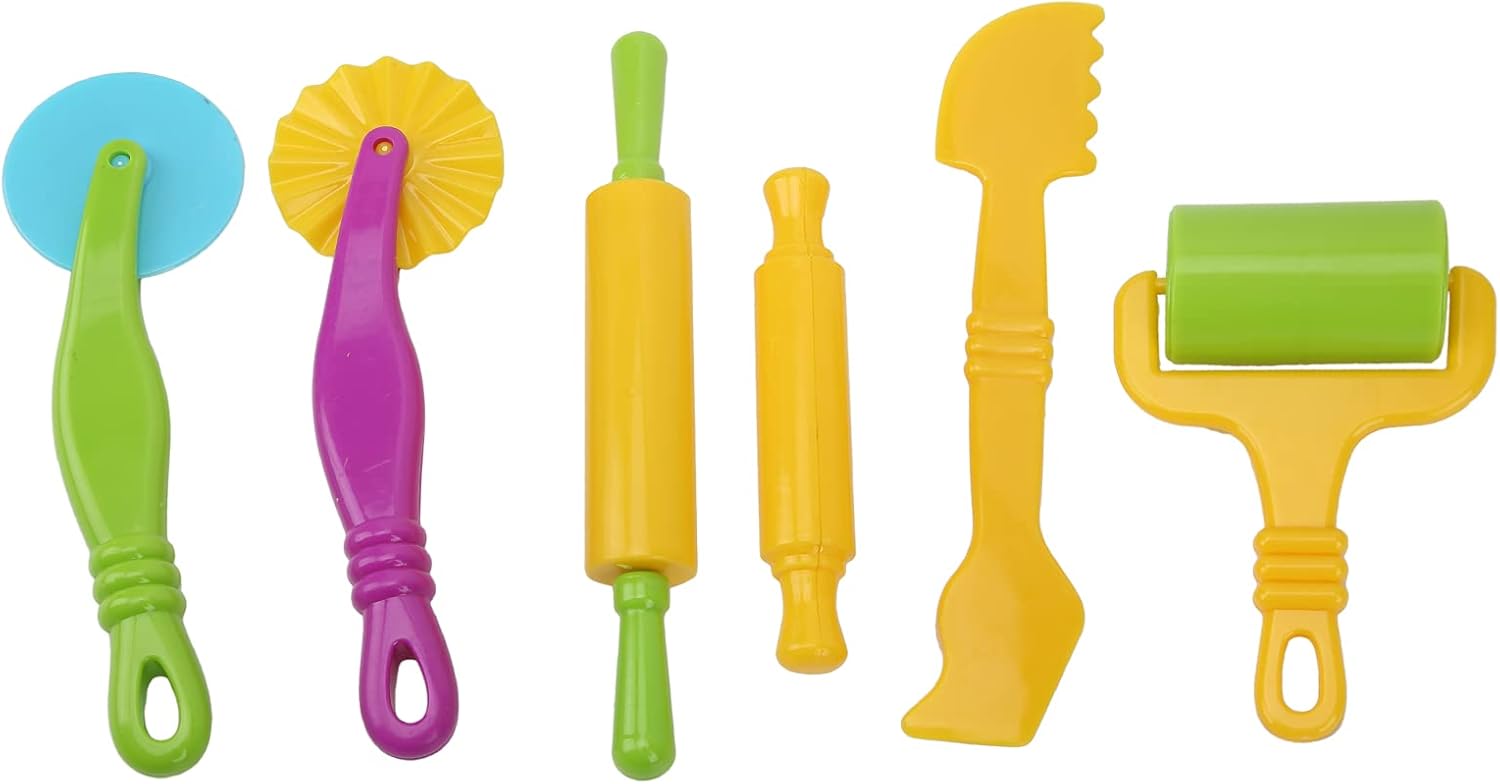 [STRUMENTI DA COLORI LUMINOSI PER BAMBINI] Appositamente progettati per consentire ai bambini di creare, decorare e modellare blocchi di argilla, stimolando la creatività. [IDEALE PER AMBIENTI DI APPRENDIMENTO ] da utilizzare in aule o scuole materne per arricchire l'immaginazione e le capacità motorie dei bambini. [DETTAGLIO DI QUALITÀ ECCELLENTE] Strumenti per aggiungere dettagli complessi alle torte, migliorandone l'aspetto finale. [MATERIALI SICURI E NON TOSSICI] Realizzato in plastica ABS innocua, mantiene i bambini al sicuro ed è facile da usare e da pulire. [SET COMPLETO DI UTENSILI] Include mattarello grande e piccolo, mattarello piccolo e lama per tagliare l'impasto in plastica.