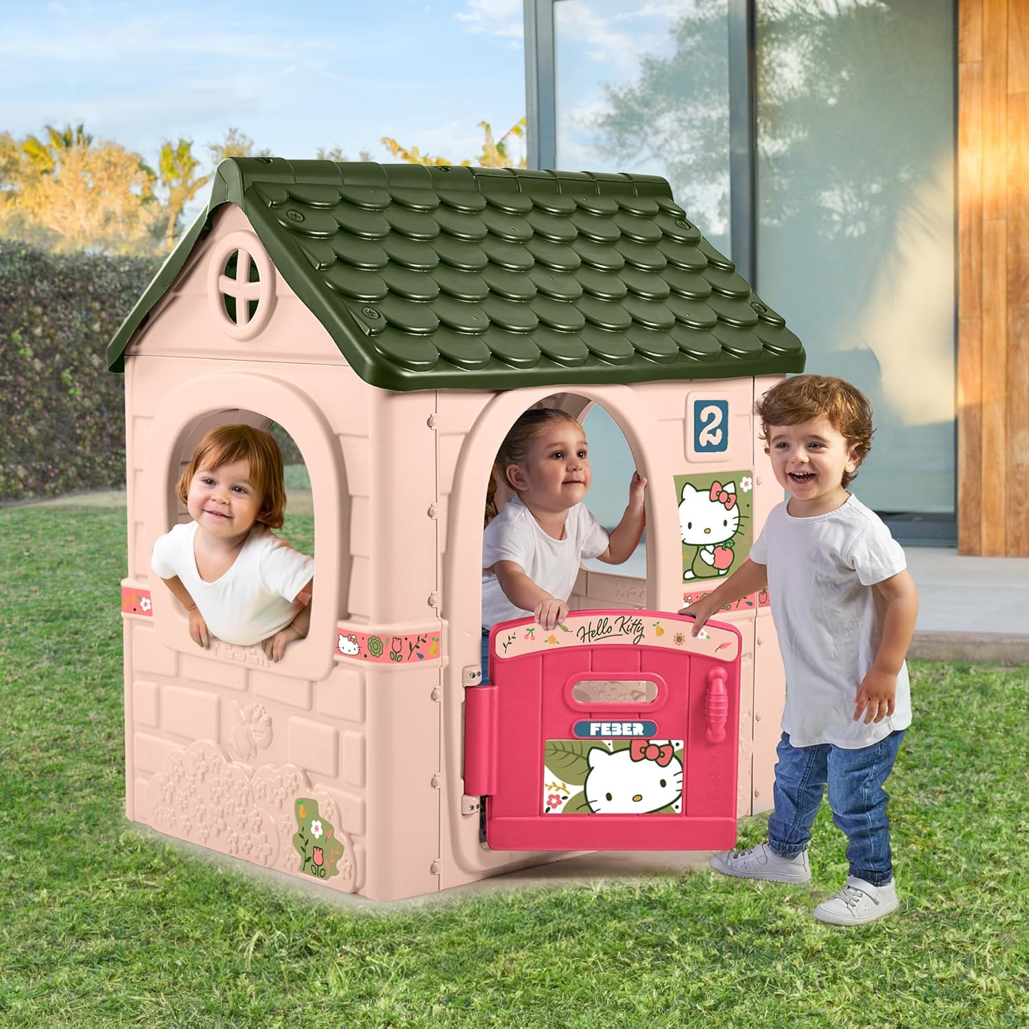 La Feber Hello Kitty House è una bellissima casetta per bambini con una porta pieghevole, che garantisce ai più piccoli un accesso facile e divertente. Include adesivi Hello Kitty che consentono ai bambini di personalizzare e decorare la loro casetta, stimolando la loro creatività e immaginazione mentre giocano. I colori della casetta sono resistenti alla luce solare e agli sbalzi di temperatura, garantendo che la casetta mantenga il suo aspetto vivace anche all'esterno. Questa casetta è facile da montare, consentendo ai genitori di assemblarla rapidamente. Adatto ai bambini a partire dai 2 anni, offre uno spazio sicuro e divertente in cui giocare. Con le sue dimensioni di 85 cm di lunghezza, 124 cm di altezza e 108 cm di larghezza, è spaziosa e adatta al gioco sia all'interno che all'esterno. Il prodotto pesa 15 kg.