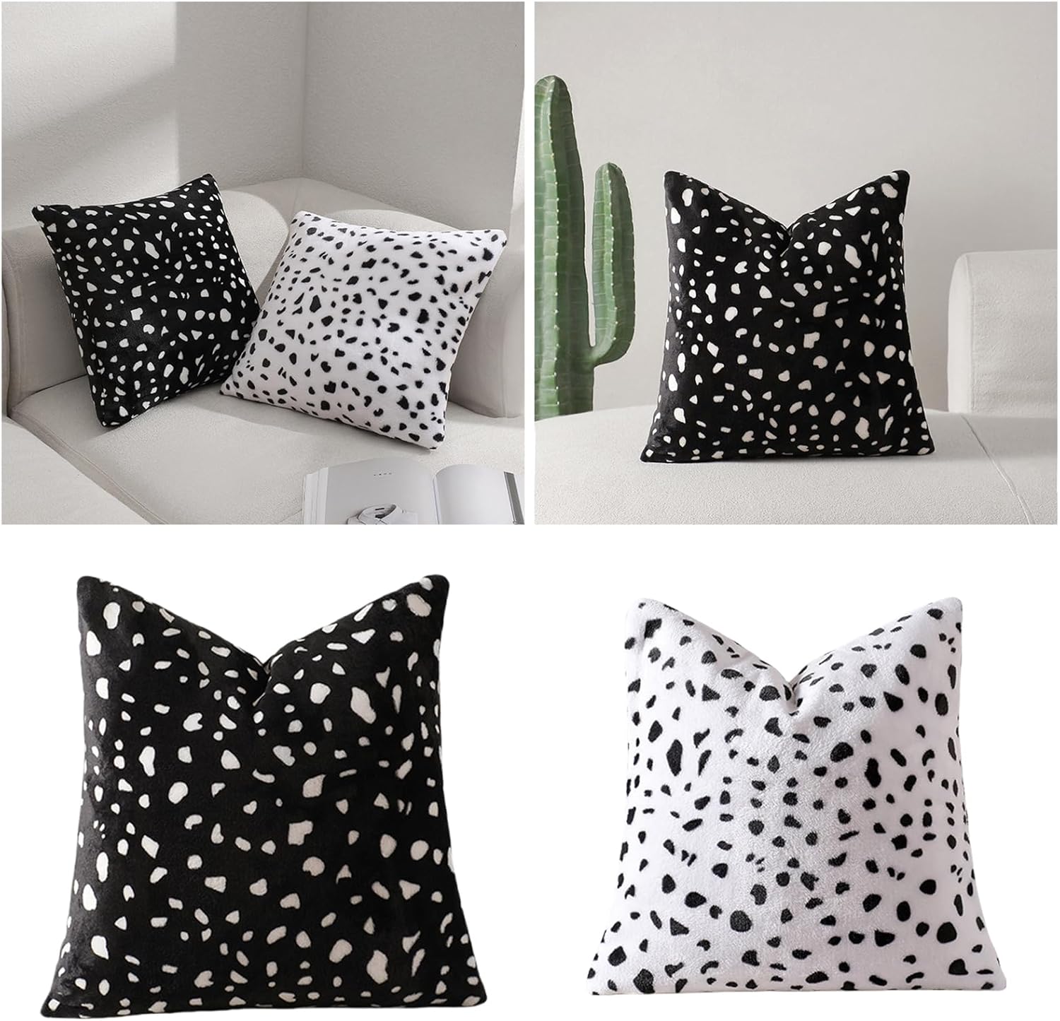 Decorazione della tua casa con la nostra federa decorativa a tema bianco nero. In morbido tessuto di peluche, queste federe da 45 x 45 cm non sono solo attraenti, ma sono anche eccezionalmente morbide al tatto, garantendo comfort e durata per un uso prolungato. Per chi ama le decorazioni uniche, questa federa per cuscino per diverse fasce d'età, aggiunge eleganza a qualsiasi spazio abitativo. Per decorare il salotto, la camera da letto o anche l'interno della tua auto, come decorazione speciale per le riunioni del Ringraziamento. La confezione include: 1 federa per cuscino