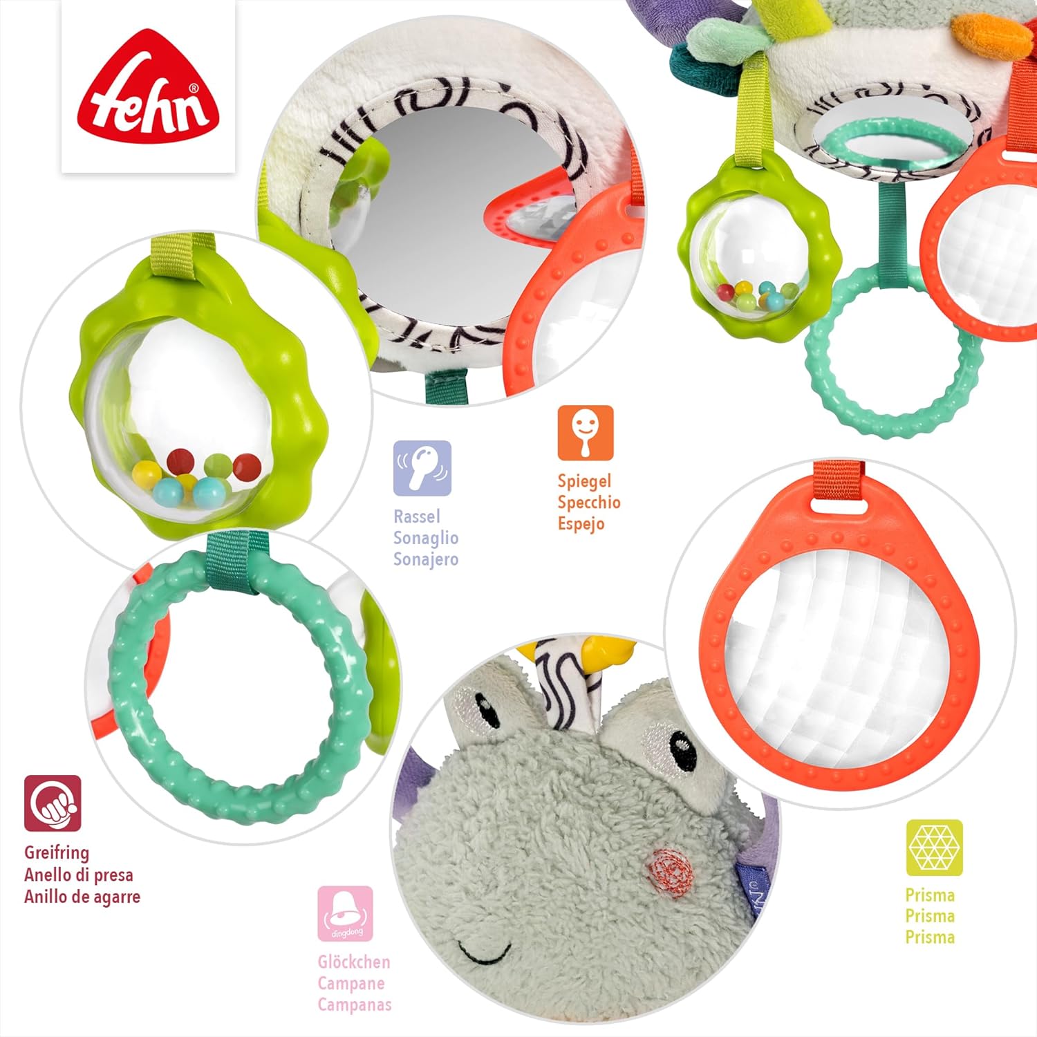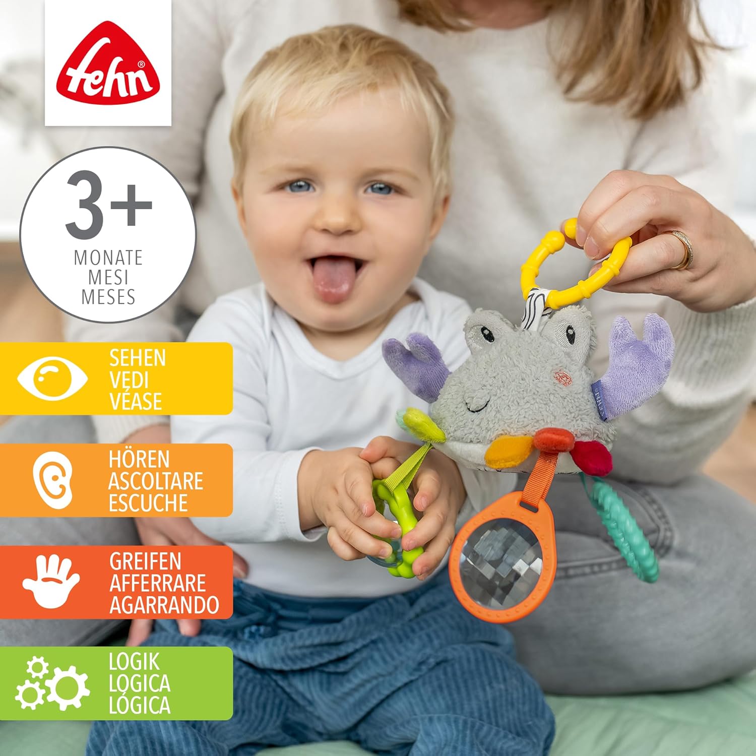 Scoprire giocando: il granchio con sonaglio, specchietto, elementi da mordere, campanellini e anello da afferrare risveglia la curiosità e aumenta la percezione dell'io in maniera ottimale Favorisce lo sviluppo sensoriale: i colori vivaci e i diversi elementi sospesi invitano a giocare ed esplorare, i pezzi da afferrare consentono di mettere alla prova il tatto e le abilità prensili Divertimento versatile: il simpatico giocattolo per bambini e bambine sviluppa in modo giocoso la destrezza e la coordinazione mano-occhio dei più piccoli, garantendo un'esperienza di gioco ricca e stimolante Comodo da fissare: il giocattolo Activity da appendere può essere facilmente agganciato ai passeggini, ai seggiolini per auto e ai lettini grazie al pratico anello di fissaggio Contenuto della confezione: 1 mini granchio mobile, dimensioni: circa 18 x 18 cm, materiale di rivestimento: bouclette, velluto, spugna, tessuto stampato, imbottitura: poliestere, lavaggio a mano delicato, numero dell’articolo: 043112