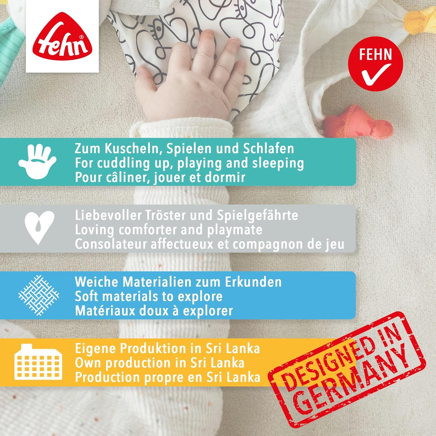 FEDELTÀ - L'adorabile piumino con testa di lontra fa sorridere il bambino: porta conforto, calore e sicurezza e diventa rapidamente il suo amico AIUTANTE PER IL SONNO - Questo adorabile piumino è un vero aiuto per addormentarsi - si annida facilmente nel cuore degli avventurieri stanchi e diventa un fedele compagno, a casa o in viaggio DETTAGLI ATTENTI - I materiali morbidi, il mix di materiali e le estremità annodate ti invitano ad afferrare, toccare e annuire, in modo che l'amico di peluche Theo presto non lascerà più il tuo mano CARINO COMPAGNO - Nei momenti tranquilli la sciarpa con ciuccio aiuta ad addormentarsi, durante il giorno l'aspetto allegro della lontra permette di divertirsi - un simpatico regalo per i bambini dalla nascita CONSEGNA - 1x peluche lontra / Misura: 36 cm / Parte superiore: peluche, lavorato a maglia, mussola / Imbottitura: poliestere lavabile a 30°C / Art. n.: 047035