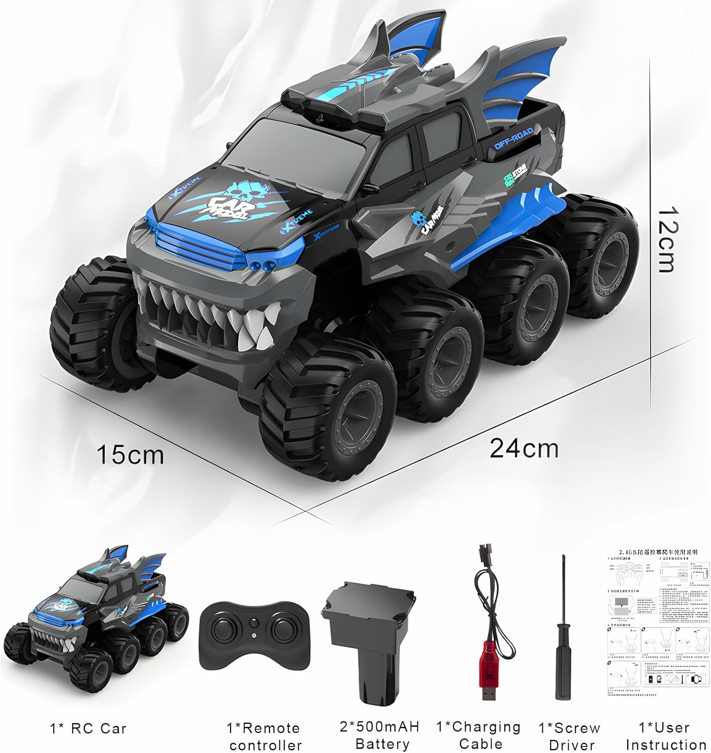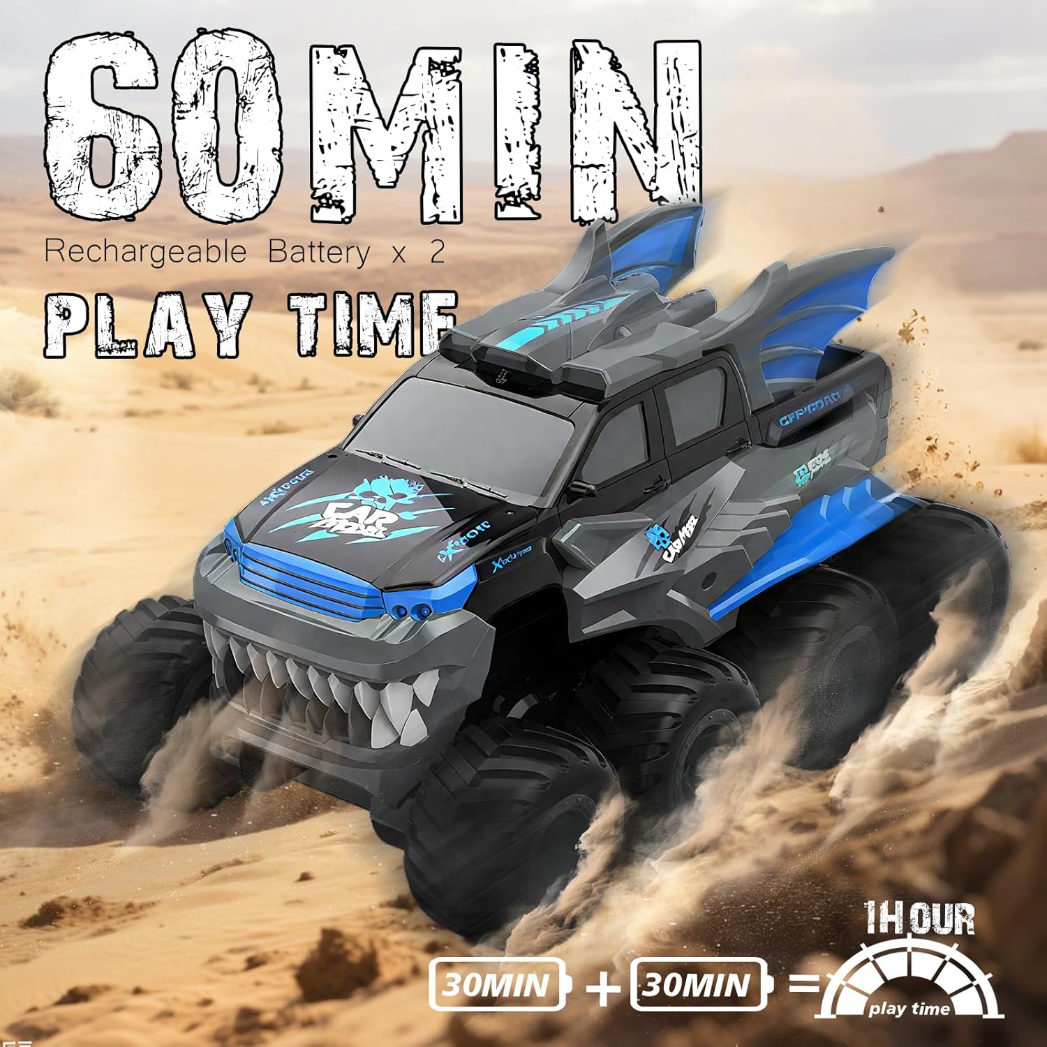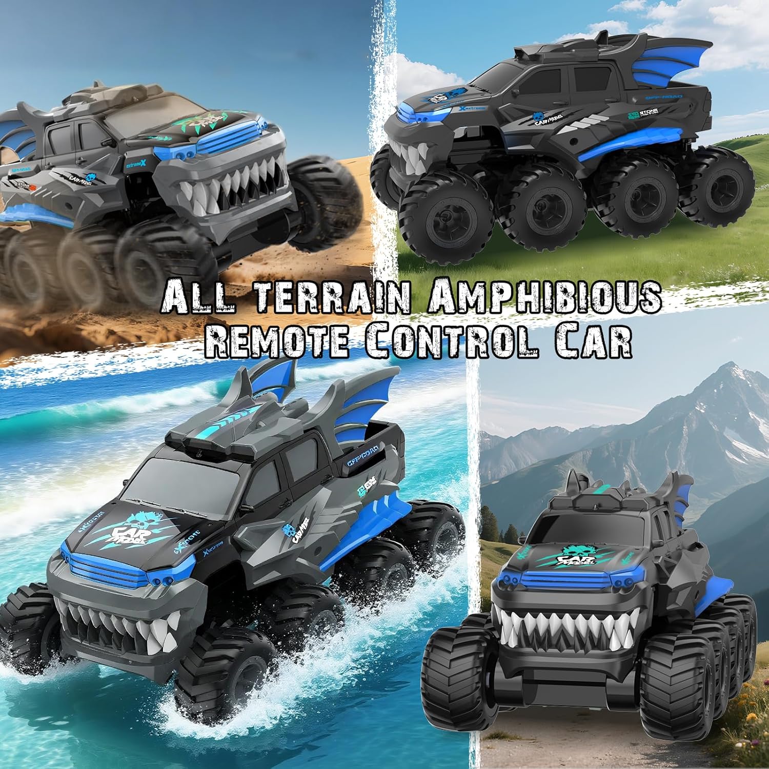 Macchina Telecomandata Anfibia 8WD: Guidate questo robusto camion anfibio RC per bambini a 8 ruote senza problemi attraverso laghi, piscine, erba, fango, sabbia e terreni accidentati. Il suo design innovativo passa senza problemi dall'esplorazione acquatica a quella terrestre. Sostituisce la "modalità barca/modalità fuoristrada".(Assicurarsi che le viti del vano batteria dell'auto RC siano serrate prima di metterla in acqua). Auto RC 8WD per tutti i terreni: Sperimenta una trazione superiore e una capacità di arrampicarsi sugli ostacoli grazie alle otto ruote motrici. Affronta pendenze impegnative, dossi e superfici irregolari senza sforzo per vivere avventure su tutti i terreni. Veicolo Hobby dal controllo semplice e preciso: Questo fuoristrada RC per esterni è progettato per essere leggero e portatile, non solo facile da usare, ma anche flessibile e robusto. Padroneggiate le tecniche di guida intuitive con il telecomando reattivo a 2,4 GHz. Manovra facilmente in avanti, indietro, a sinistra, a destra e con rotazione a 360°. I bambini possono iniziare facilmente. Auto fuoristrada a tempo di gioco prolungato: Questo macchina radiocomandata include 2 batterie ricaricabili(30-35 minuti per batteria, 3,5 ore di ricarica) e un cavo di ricarica USB. Grazie alla sostituzione rapida delle batterie, è possibile giocare più a lungo: basta sostituirle per continuare a divertirsi senza lunghe pause. Kit auto da drifting per esterni: Include un camion anfibio a 8 ruote, un telecomando (2 batterie AA da 1,5 V non incluse), 2 pacchi di batterie ricaricabili per l'auto giocattolo, un cavo di ricarica USB, un cacciavite (assicurarsi che le viti del vano batteria siano serrate prima dell'uso in acqua) e istruzioni chiare. Regalo di qualità: Presentato in una confezione regalo di alta qualità, questo camion RC unico per l'acqua e la terra è la sorpresa perfetta per compleanni, vacanze, occasioni speciali, festa dei bambini e Natale.offre un'esplorazione emozionante per i bambini di 3 4 5 6 7 8 9 10 anni.