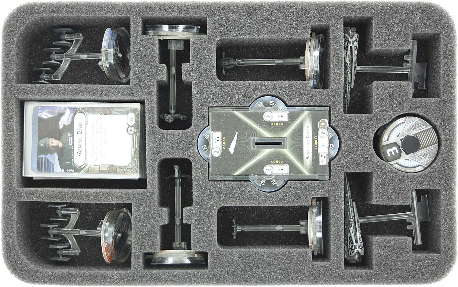 Perfetta per una flotta imperiale di Star Wars Armada Wave 1+ Wave 2, si adatta due volte alle navi più grandi nei suoi vassoi di schiuma e anche 31 squadroni e navi dei cattivi troveranno abbastanza spazio. La borsa è perfetta per il trasporto sicuro delle miniature di Star Wars Armada. Grazie alla schiuma di alta qualità, le miniature possono essere trasportate in tutta sicurezza. Schiuma di alta qualità Made in Germany - senza acidi - senza cloro 👉 Le figure e i componenti del gioco mostrati sono solo per confronto di dimensioni e non sono inclusi. I modelli stampati in 3D possono presentare piccole imperfezioni. Le immagini del prodotto mostrano possibili risultati finali.