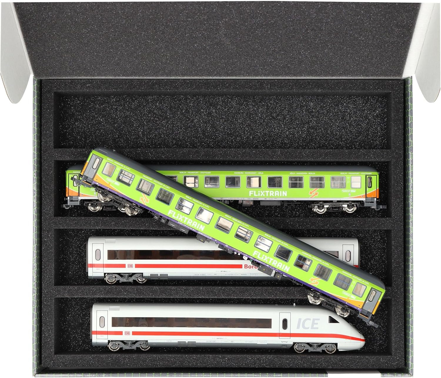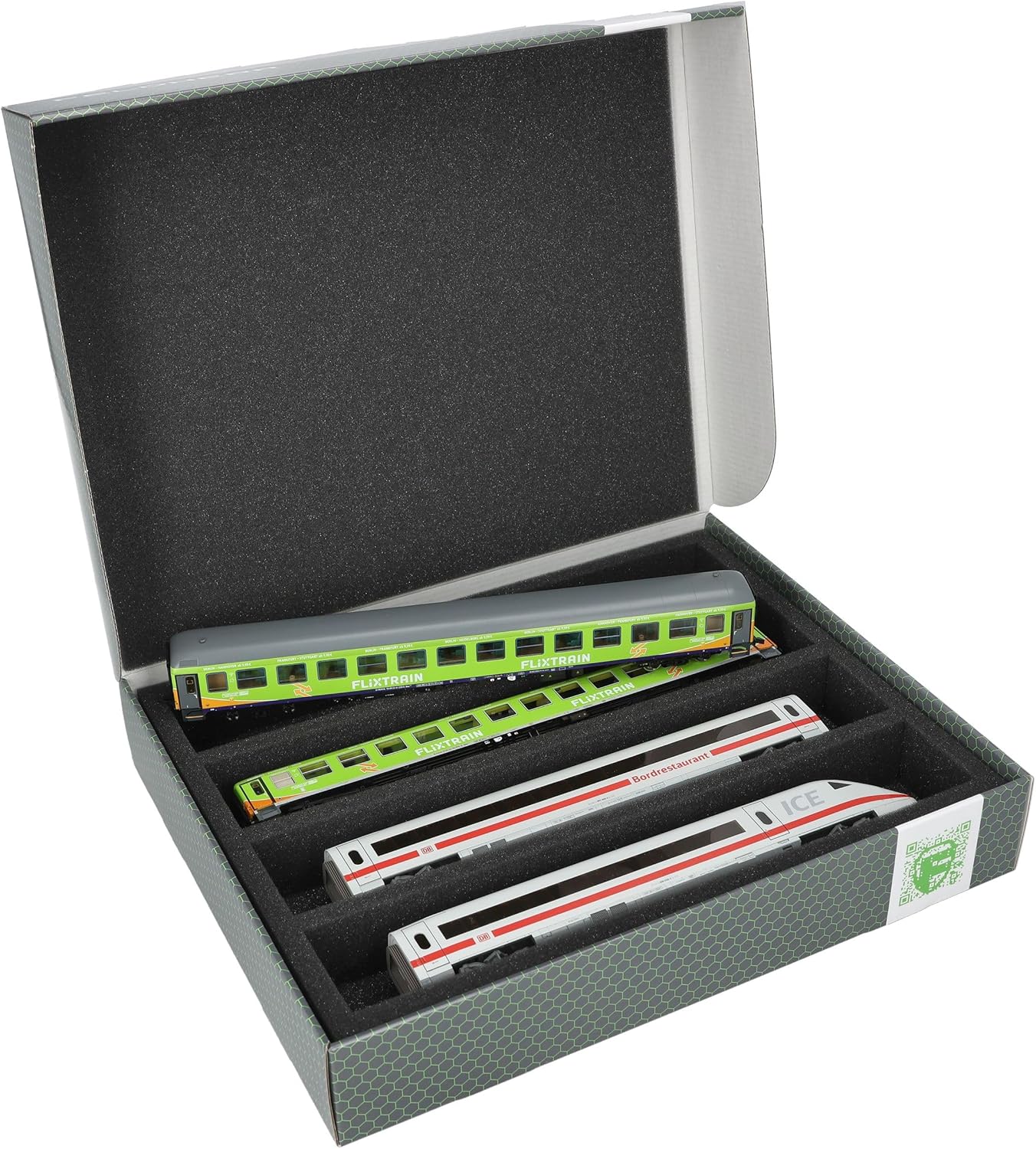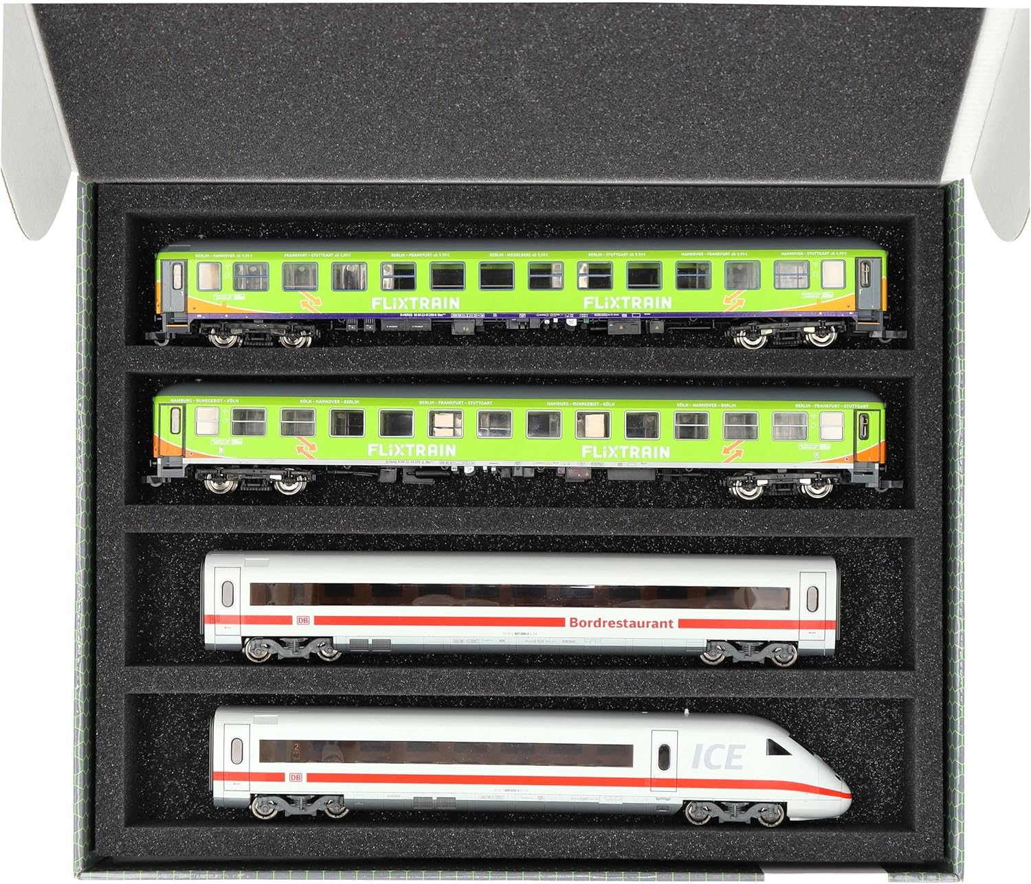 Scatola di immagazzinamento Feldherr FSLB055 con inserto in schiuma e 4 slot per modellismo ferroviario in scala H0. Per conservare, presentare e trasportare in sicurezza i vostri treni e vagoni. Il set è composto da una scatola di immagazzinaggio FSLB055, un inserto in schiuma a grandezza naturale per modellini ferroviari in scala H0 e il topper in schiuma abbinato. L'inserto è diviso in 4 scomparti, fatti su misura per i modellini ferroviari in scala H0, in posizione distesa. Ognuno dei 4 vani misura 320 mm di lunghezza x 55 mm di larghezza x 40 mm di profondità. In uno scomparto è possibile riporre diversi treni e carrozze uno accanto all'altro. I distanziatori sono disponibili separatamente (HS040A002, HS020A001). I modelli sono conservati in modo sicuro tutt'intorno. La schiuma di alta qualità li protegge in modo affidabile e duraturo da danni e usura, come graffi e sfaldamenti della vernice. La scatola di stoccaggio è realizzata in cartone rivestito a doppia parete e quindi non solo è piacevolmente leggera, ma anche particolarmente resistente agli strappi e stabile. 👉 Le figure e i componenti del gioco mostrati sono solo per confronto di dimensioni e non sono inclusi. I modelli stampati in 3D possono presentare piccole imperfezioni. Le immagini del prodotto mostrano possibili risultati finali.