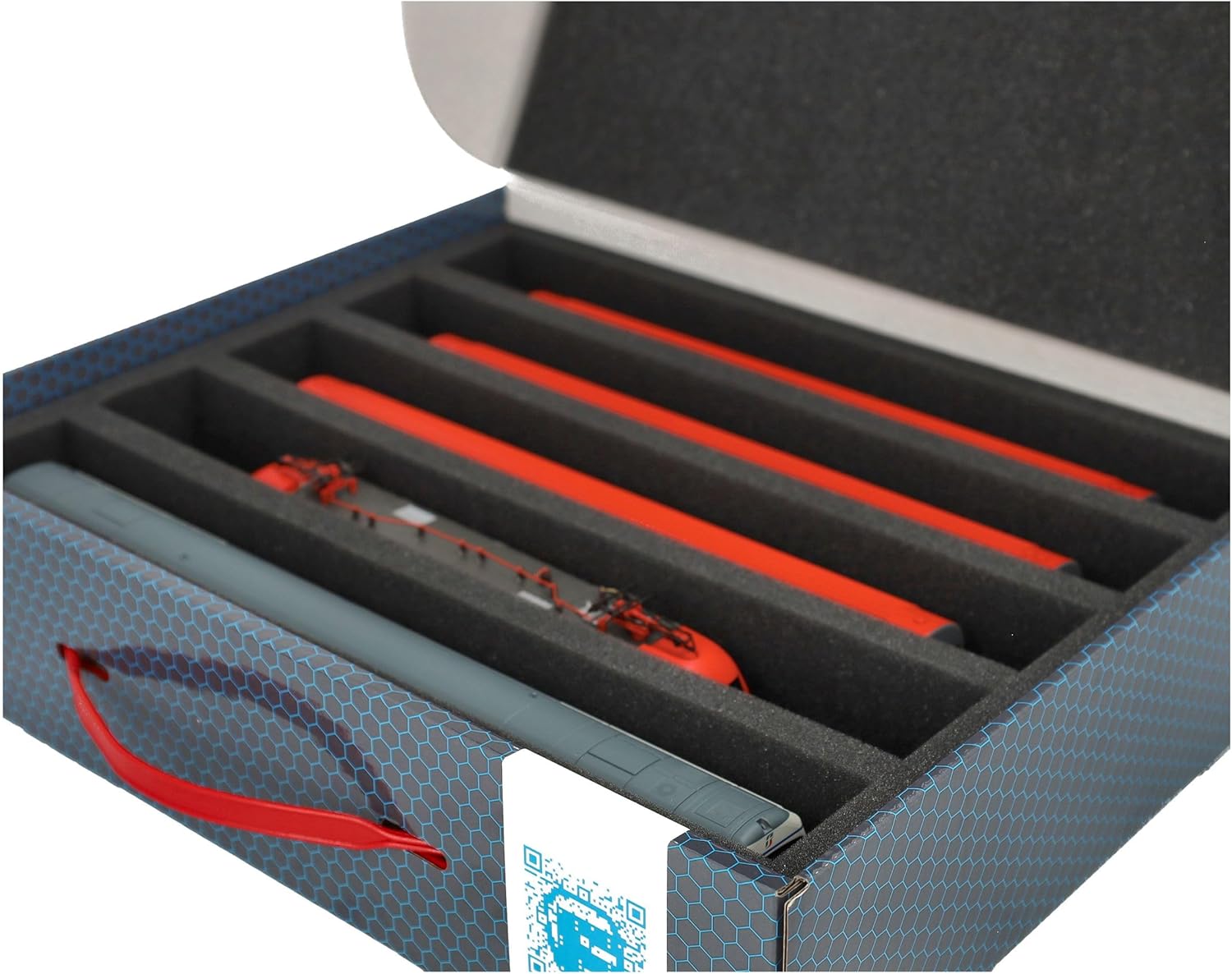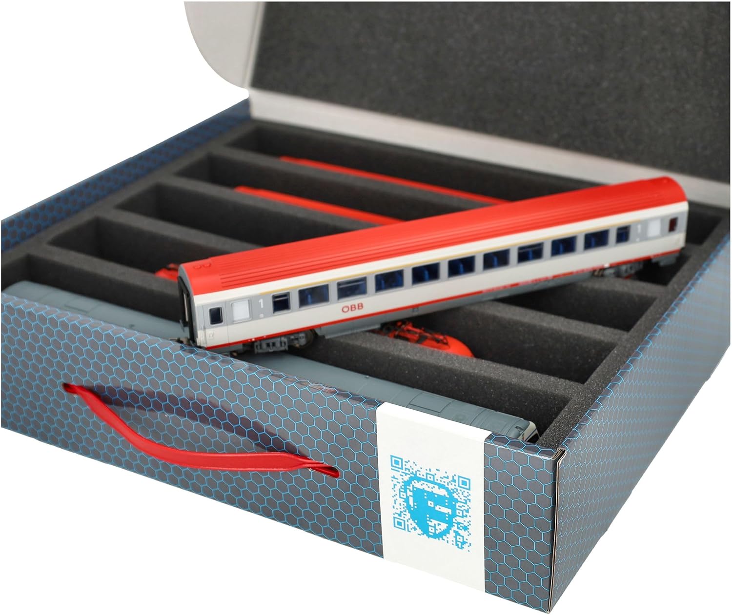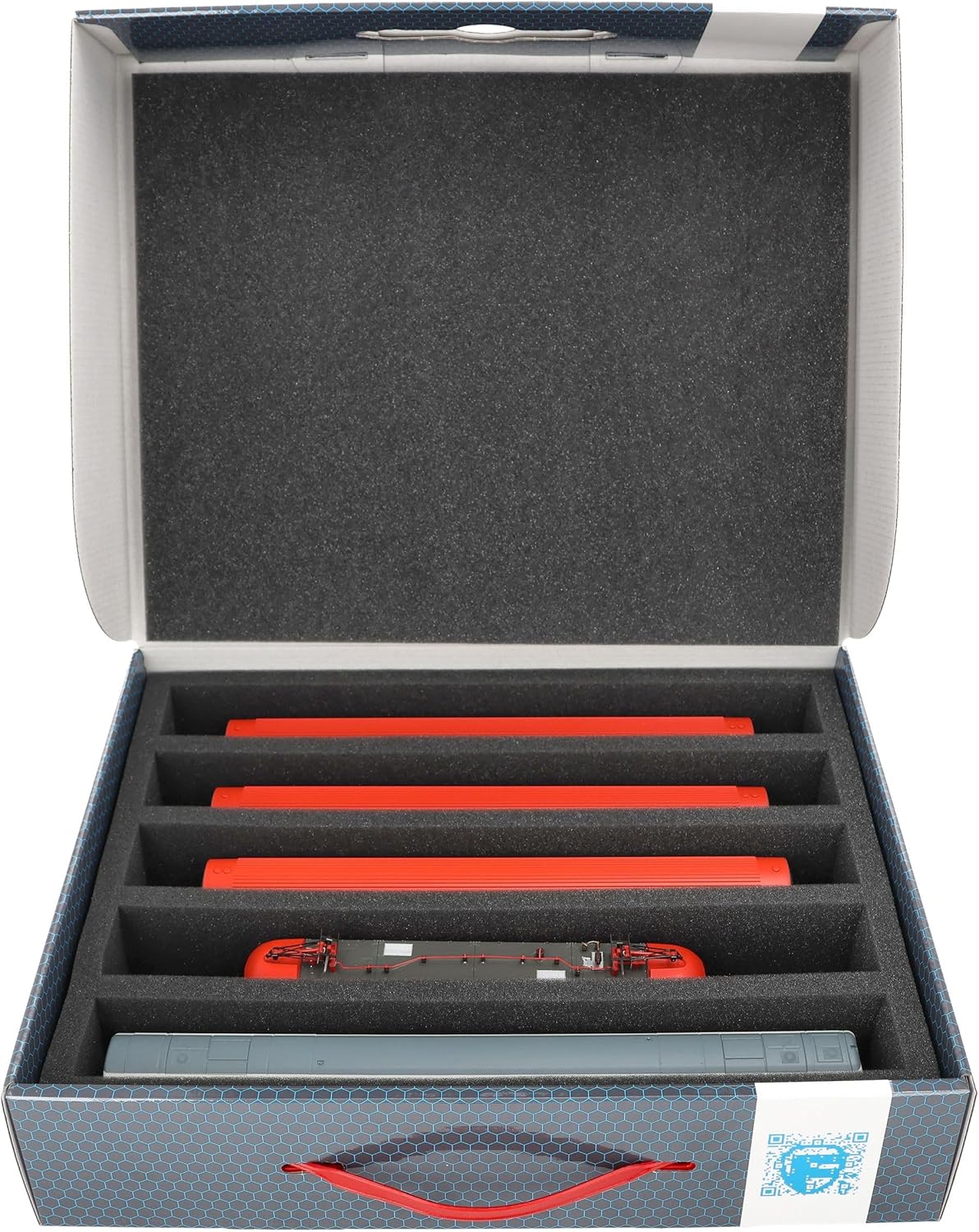 Scatola di immagazzinamento Feldherr FSLB075 con vassoio in gommapiuma e 5 slot per modellismo ferroviario in scartamento H0. Per conservare e trasportare in sicurezza treni e vagoni. Il set è composto da una scatola di immagazzinaggio FSLB075, un inserto in schiuma a grandezza naturale per modellini ferroviari in scartamento H0 e il topper in schiuma abbinato. L'inserto è diviso in 5 scomparti, fatti su misura per i modellini ferroviari in scartamento H0, in posizione eretta. Ognuno dei 5 scomparti è lungo 320 mm x largo 40 mm x profondo 55 mm. In uno stesso scomparto è possibile riporre diversi treni e carrozze uno accanto all'altro. I distanziatori sono disponibili separatamente (HS040A002). I modelli sono conservati in modo sicuro tutt'intorno. Sono protetti in modo affidabile e permanente dalla schiuma di alta qualità contro i danni e l'usura, come i graffi e la vernice che si sfalda. La scatola di immagazzinamento con maniglia di trasporto è realizzata in cartone rivestito a doppia parete e quindi non solo è piacevolmente leggera, ma anche particolarmente resistente agli strappi e stabile. 👉 Le figure e i componenti del gioco mostrati sono solo per confronto di dimensioni e non sono inclusi. I modelli stampati in 3D possono presentare piccole imperfezioni. Le immagini del prodotto mostrano possibili risultati finali.