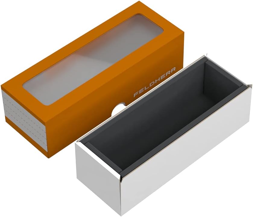 Scatola pieghevole in due pezzi con coperchio a finestra per riporre in modo sicuro singole locomotive, vagoni e veicoli - Disponibile in diversi colori (arancione, nero e grigio) Il set comprende 1 scatola/parte inferiore in cartone rivestito grigio, 1 coperchio in cartone rivestito a colori con finestra e un inserto in schiuma di alta qualità, senza cloro e senza acidi. Dimensioni interne: 160 mm x 60 mm x 50 mm. Dimensioni esterne: 170 mm x 70 mm x 55 mm. L'intarsio in schiuma ha le dimensioni di: 239 mm x 139 mm x 4 mm. La soluzione ideale per conservare, trasportare e rivendere singoli modelli. Si consiglia di utilizzare la scatola per modellini di treni in scartamento H0 (1:87) e 00 (1:76). La scatola e il coperchio vengono consegnati piatti. Possono essere facilmente piegati con poche semplici operazioni. 👉 Le figure e i componenti del gioco mostrati sono solo per confronto di dimensioni e non sono inclusi. I modelli stampati in 3D possono presentare piccole imperfezioni. Le immagini del prodotto mostrano possibili risultati finali.
