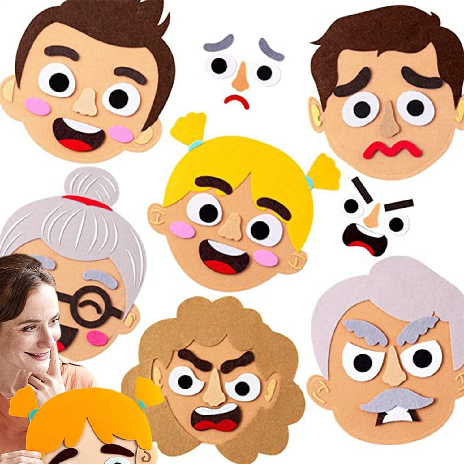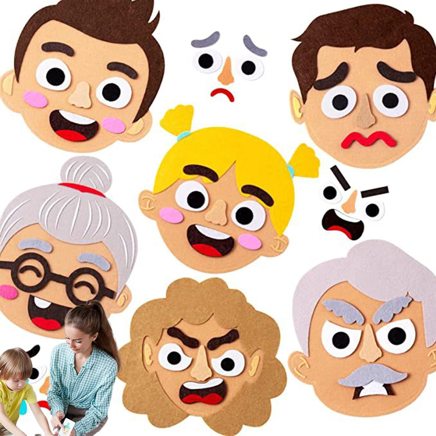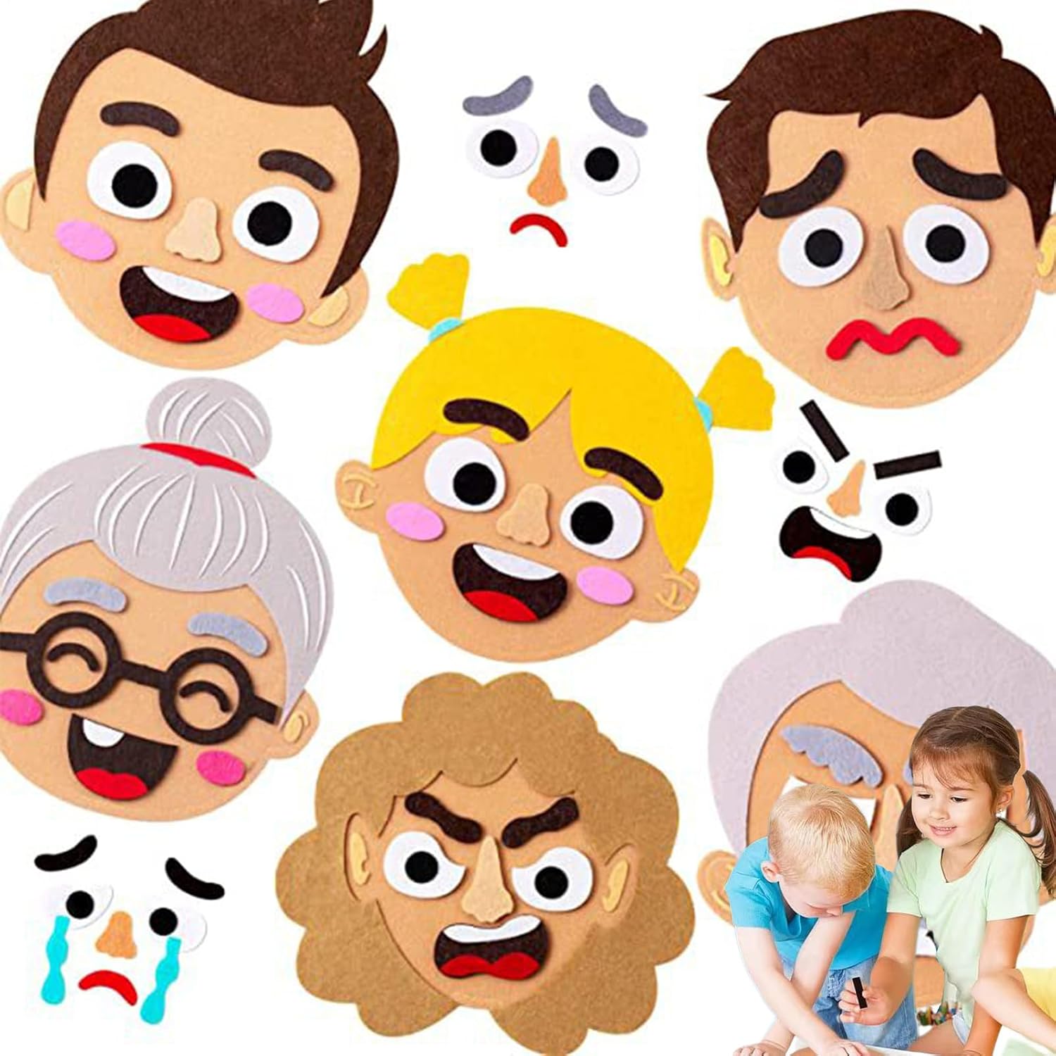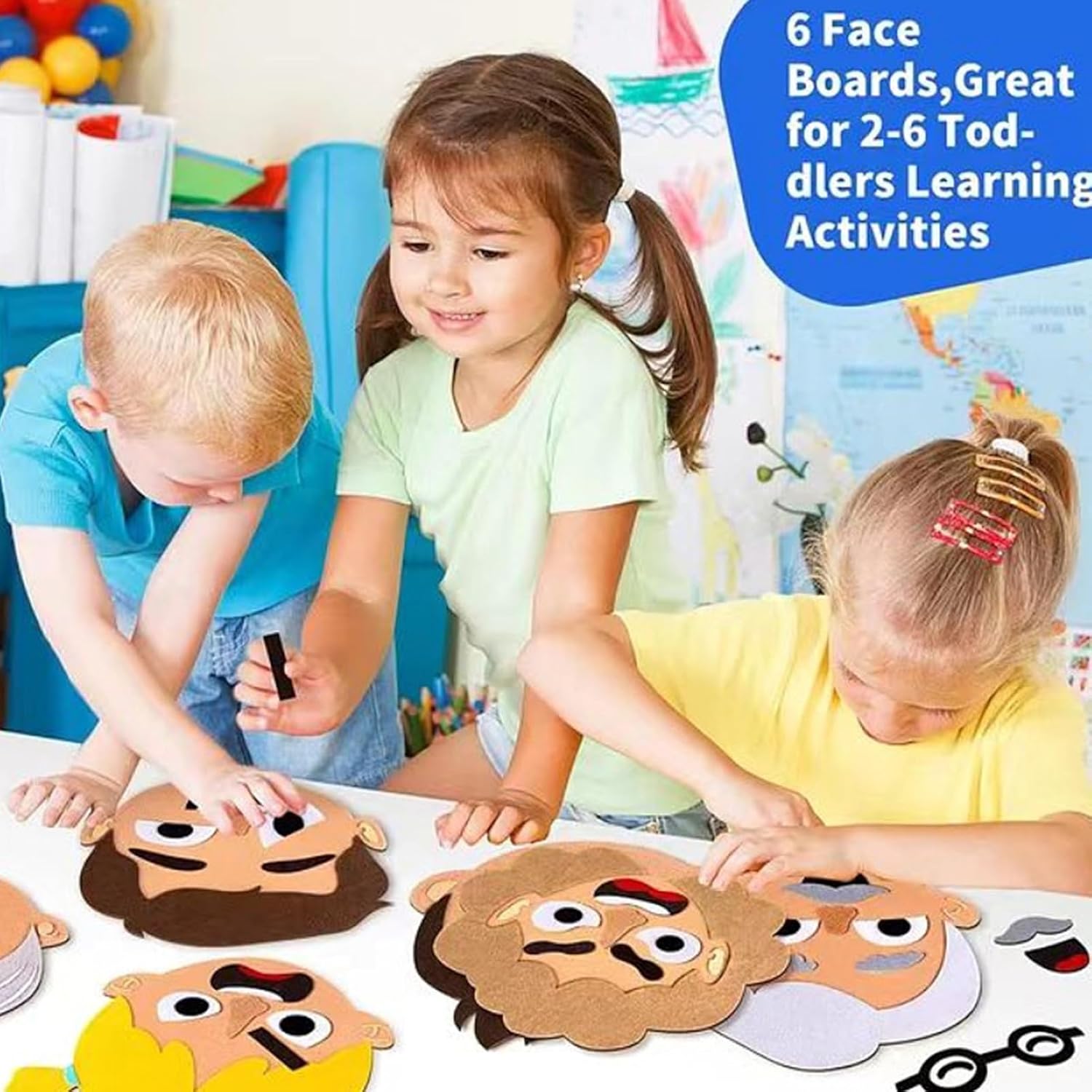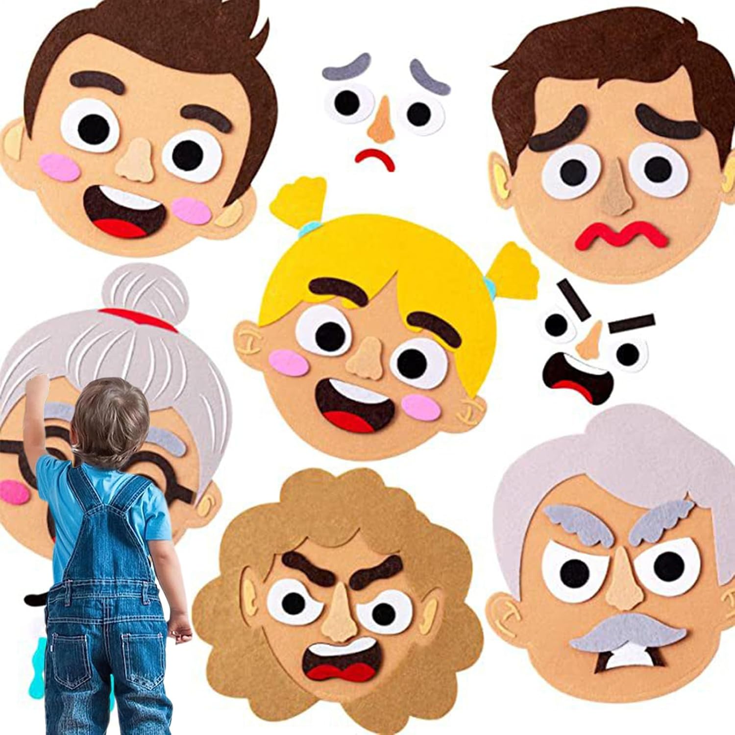 Encourages Emotional Learning: This felt sticker set allows kids to explore and express emotions by mixing and matching facial features, promoting social-emotional development through fun interactive play in group or solo settings Interactive Multiplayer Game: Designed for multiple children to play together, this kit fosters communication, cooperation, and empathy. Perfect for classrooms, groups, or family time, helping kids understand emotions through creative expression. Soft and Safed Felt Material: Made of high-quality felt, the pieces are soft, safe, and easy for little hands to grip and reposition. The 490g kit includes a variety of eyes, mouths, eyebrows, and accessories to make countless funny faces Perfect for Indoor and Outdoor Use: Lightweight and portable, this emotional face sticker set is ideal for schools, parks, playrooms, or even the backseat of a car—keeping kids engaged and learning wherever they go Reusable Educational Toy: The felt pieces can be used over and over again without wear, making this a long-lasting resource for teachers, therapists, and parents who want a fun and effective tool to support children's emotional intelligence