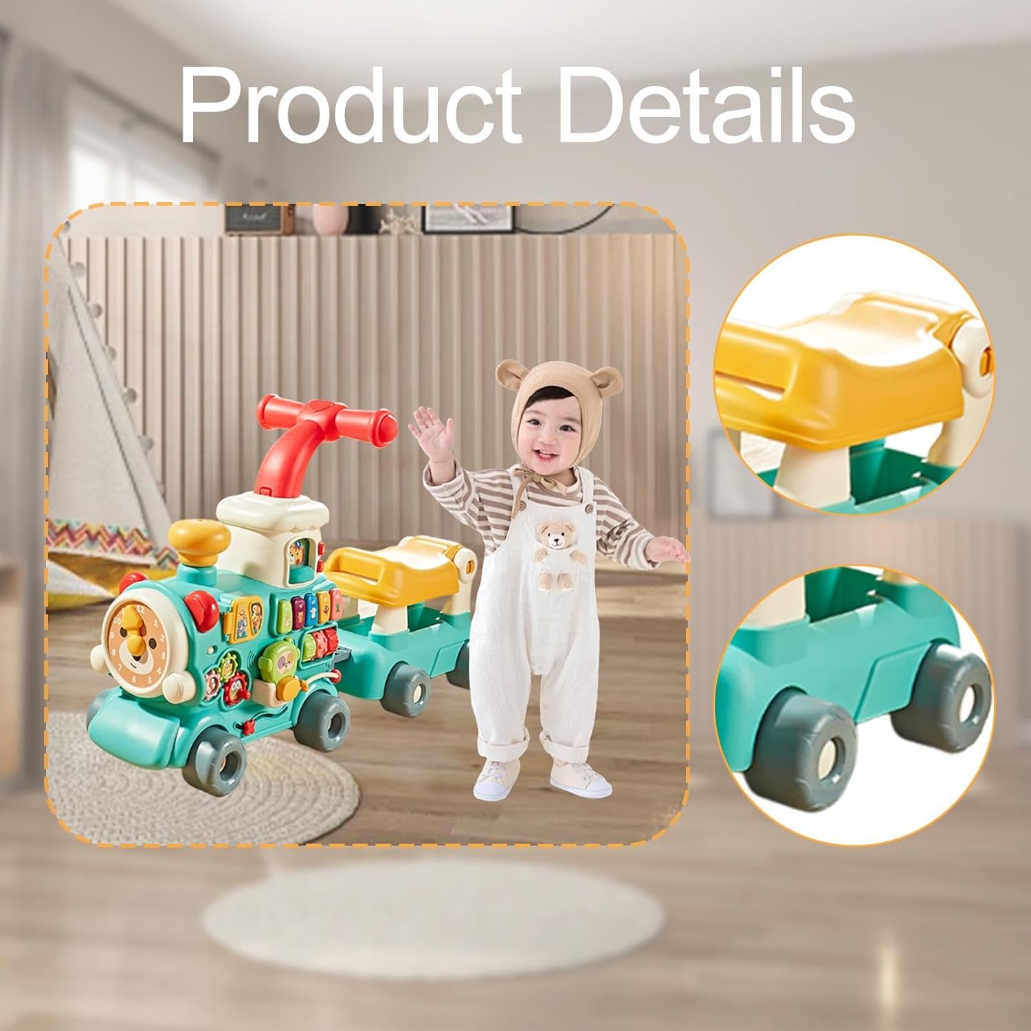 * 【Centro attività interattivo】: il giocattolo interattivo a spinta è dotato di quadrante dell'orologio, abbinamento di forme, ingranaggi, pulsanti colorati, telefono digitale, colorati e altri metodi di gioco, aumentando il divertimento e migliorando la coordinazione occhio-mano dei bambini, le capacità motorie fini e le capacità cognitive, ecc. * 【Bel regalo】: il giocattolo educativo del girello è un bel regalo per i neonati dai 6 ai 12 mesi in occasione di compleanni e feste, adatto a ragazzi e ragazze * 【Giocattolo per l'apprendimento musicale】: il giocattolo per l'apprendimento precoce con musica ed effetti sonori, alimentato da 3 batterie AAA (NON incluse), attira l'interesse del bambino e incoraggia la creatività e l'esplorazione * 【5 in 1】: girello a forma di treno a vapore, offre una varietà di modalità di gioco divertenti, tra cui cavalcare, camminare, tirare, spingere e imparare 5 modalità, soddisfacendo la curiosità dei bambini e il desiderio di esplorazione durante l'apprendimento * 【Materiale Premium】: Questo giocattolo multifunzionale è realizzato in materiale PP e TPE, ha una superficie liscia senza sbavature, non facile da rompere e garantisce un lungo tempo di utilizzo