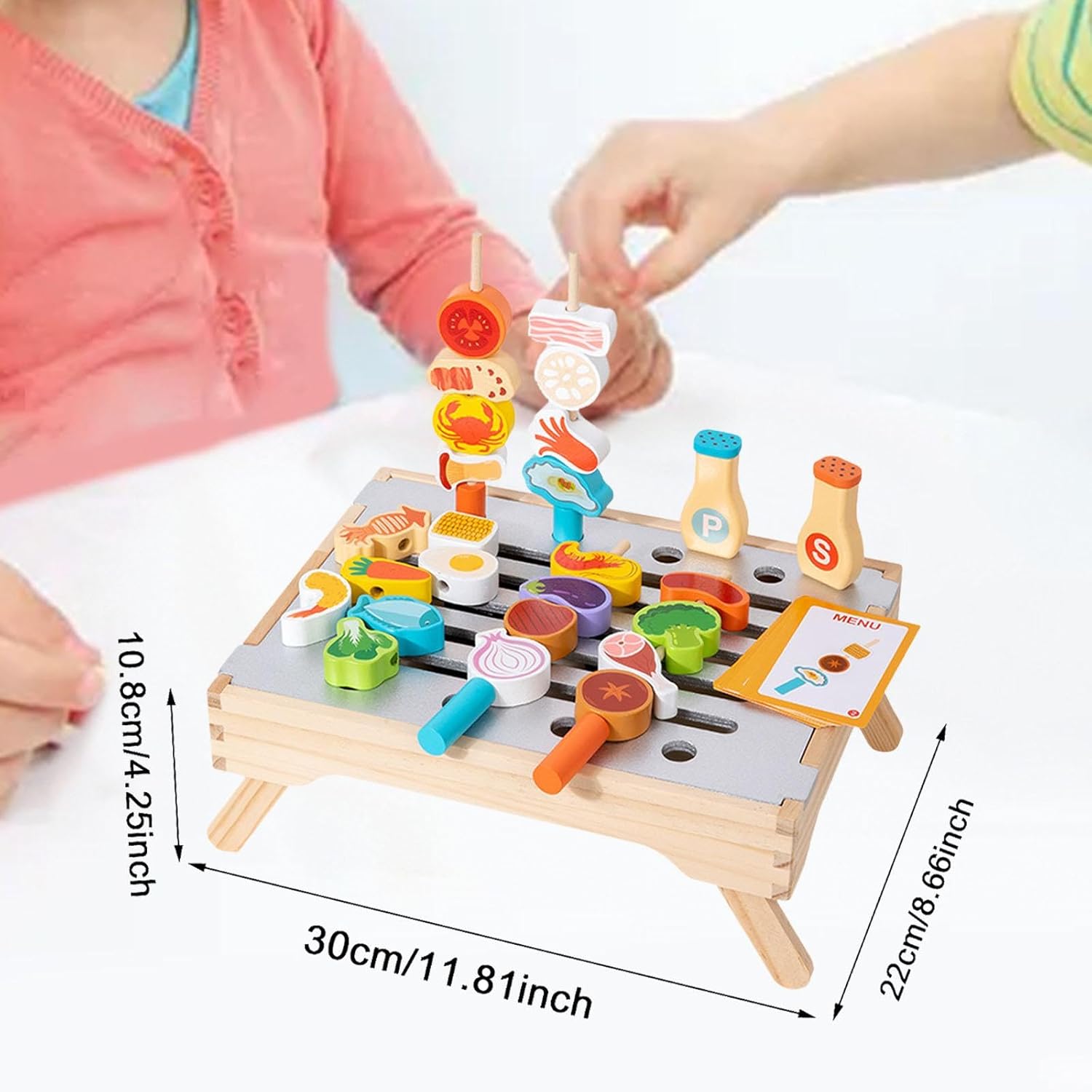 * 【Dimensioni compatte per una facile conservazione】: con dimensioni di 30 cm x 22 cm x 10,8 cm / 11,81 pollici x 8,66 pollici x 4,25 pollici, questo set da barbecue ha dimensioni convenienti per una facile conservazione, pur offrendo ampio spazio per un gioco fantasioso * 【Giocattolo educativo multifunzionale】: questo set di giocattoli per barbecue in legno offre un divertente gioco dello spiedino che aiuta i bambini a sviluppare i movimenti delle mani, la di presa e le capacità sensoriali attraverso il gioco interattivo * 【Costruzione robusta】: realizzato in legno, questo giocattolo è progettato per resistere al gioco senza deformarsi o rompersi, garantendo stabilità durante l'uso * 【Accessori realistici】: il set di barbecue simulato include 28 accessori dettagliati, esercita la capacità pratica dei bambini di provare il divertimento del barbecue * 【Liscio e di design】: ogni pezzo del set da barbecue è lucidato con bordi lisci e angoli arrotondati per garantire il gioco senza superfici ruvide o ruvide