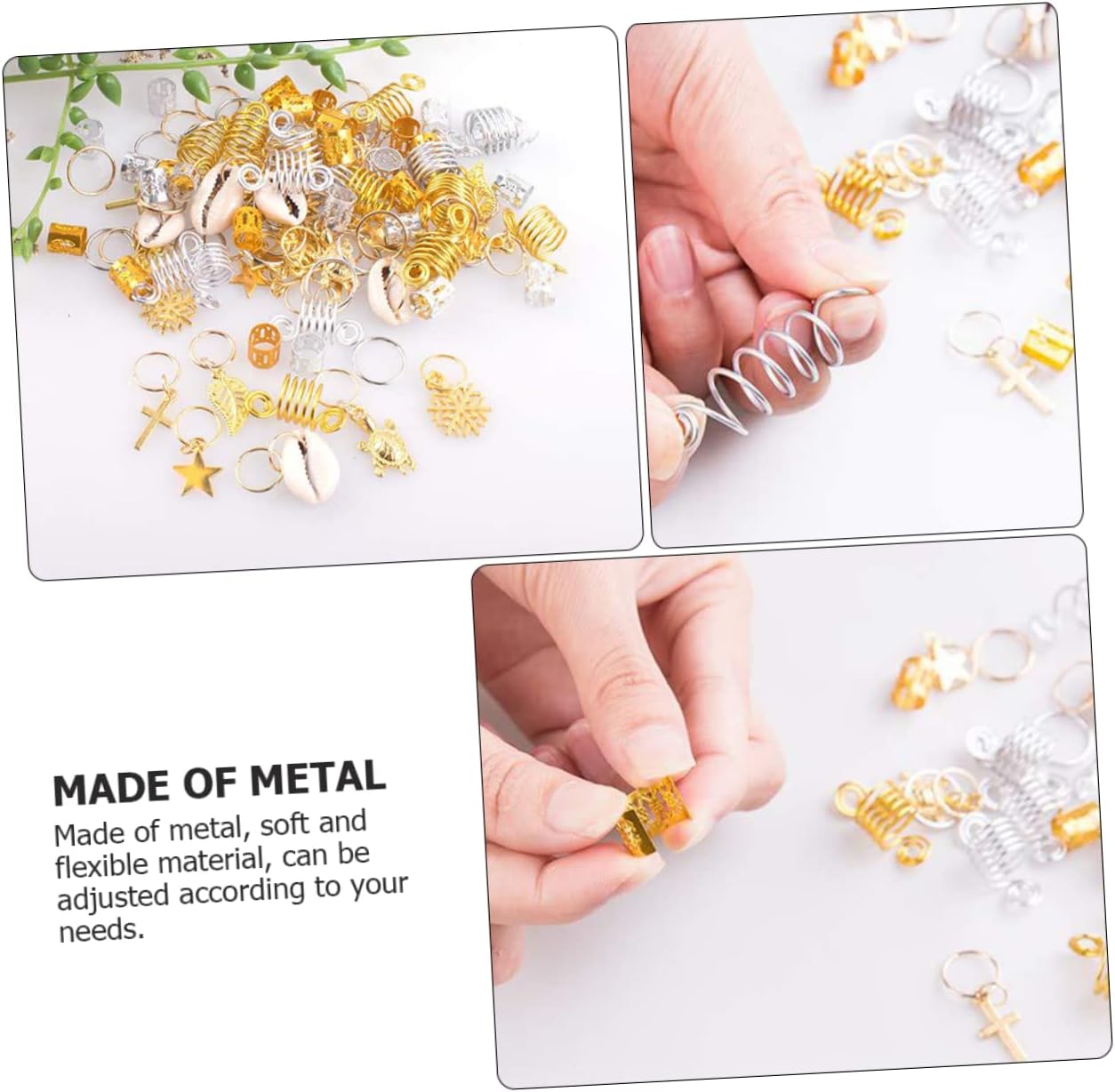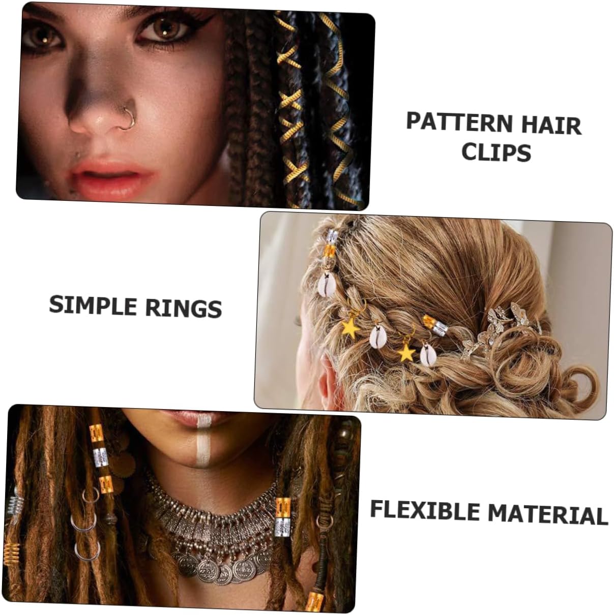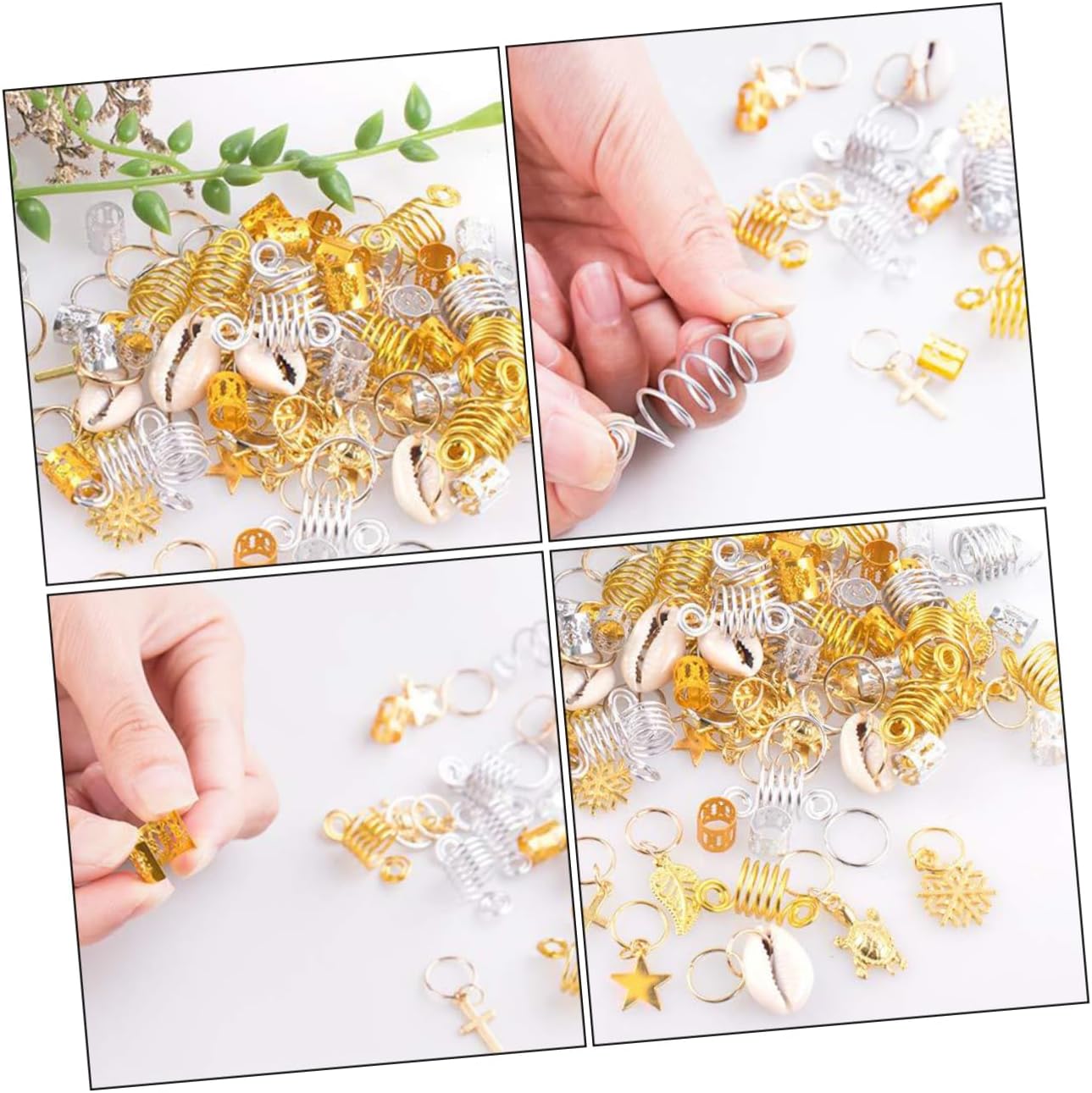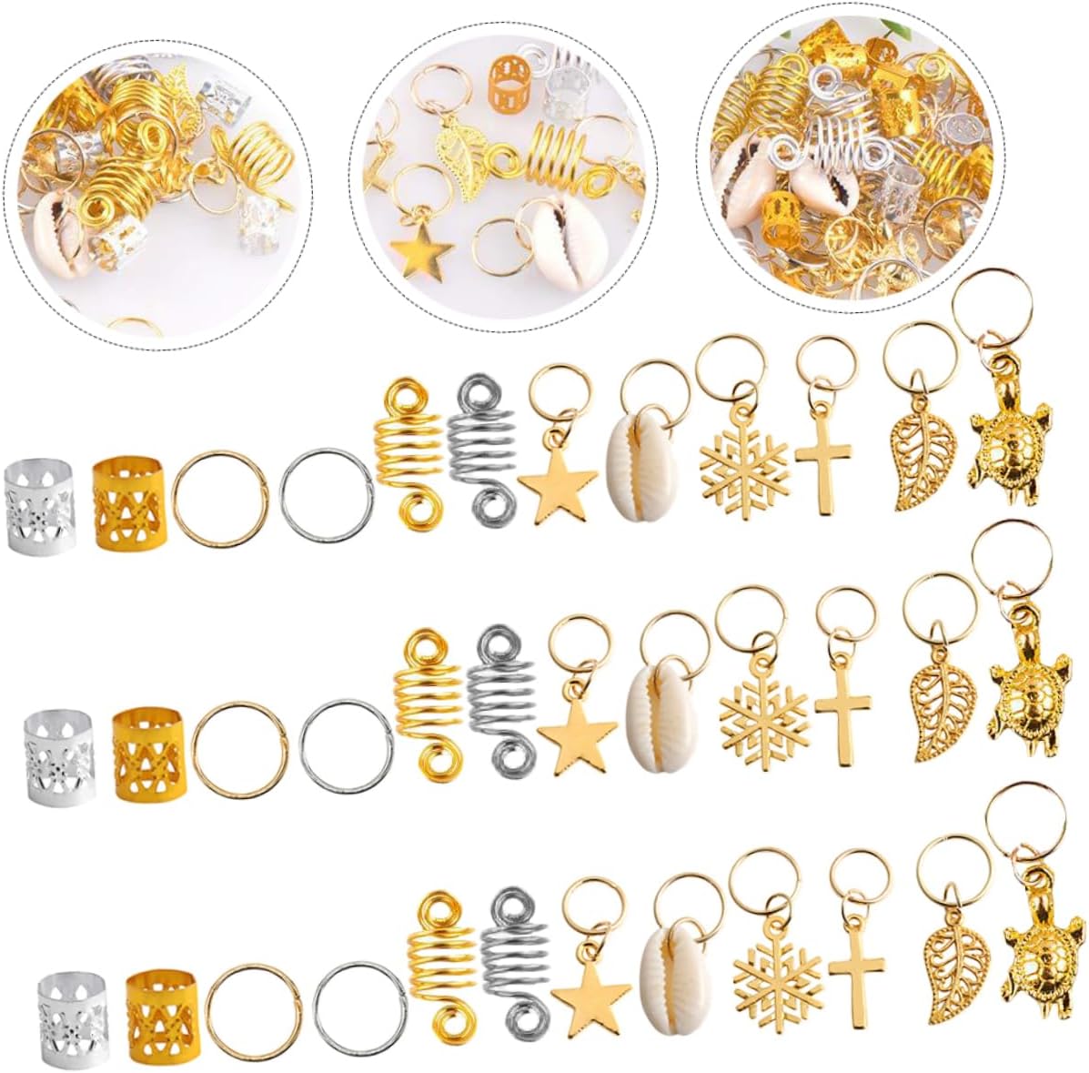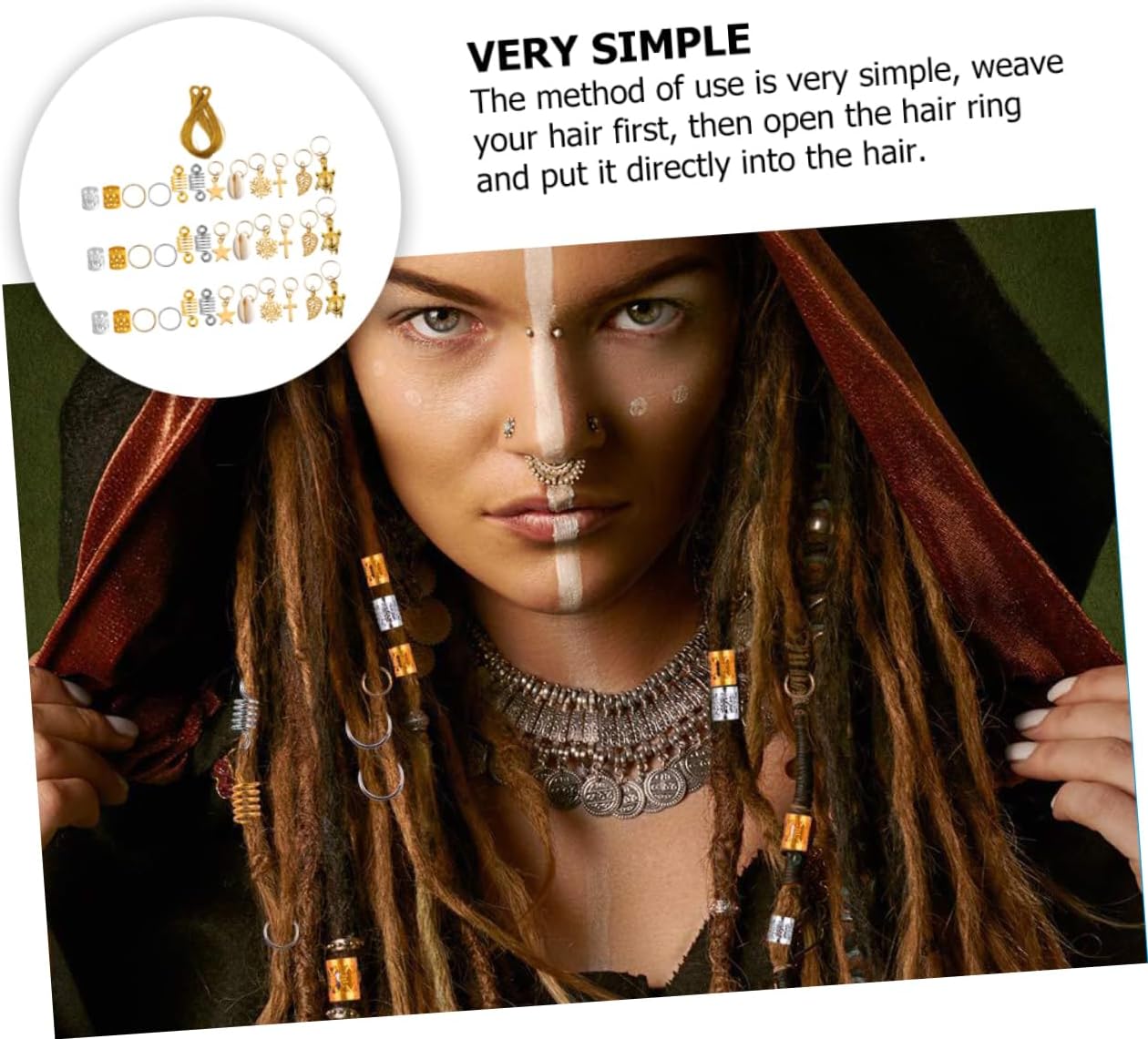 Anelli per gioielli per capelli: con loro riceverai tutti i complimenti dagli spettatori a un festival o una festa, Anelli per intrecciare i dreadlock Anelli per intrecciare i dreadlocks: l'applicazione è molto semplice: prima intreccia i capelli, poi apri l'anello per capelli e inseriscilo direttamente nei capelli per ottenere i dreadlocks Perline per intrecciare i dreadlocks: ci sono tutti i tipi di forme, anelli semplici e altri modelli diversi, abbastanza per soddisfare le tue esigenze, Fermagli per capelli Tubo per capelli fai da te: può essere un grande amante dei dreadlocks e ti piacerà molto, polsini per capelli con dreadlocks Anello per dreadlocks: questi fermagli per capelli con motivi sono adatti per feste, sfilate di moda, foto, matrimoni, balli, ecc. anelli per capelli