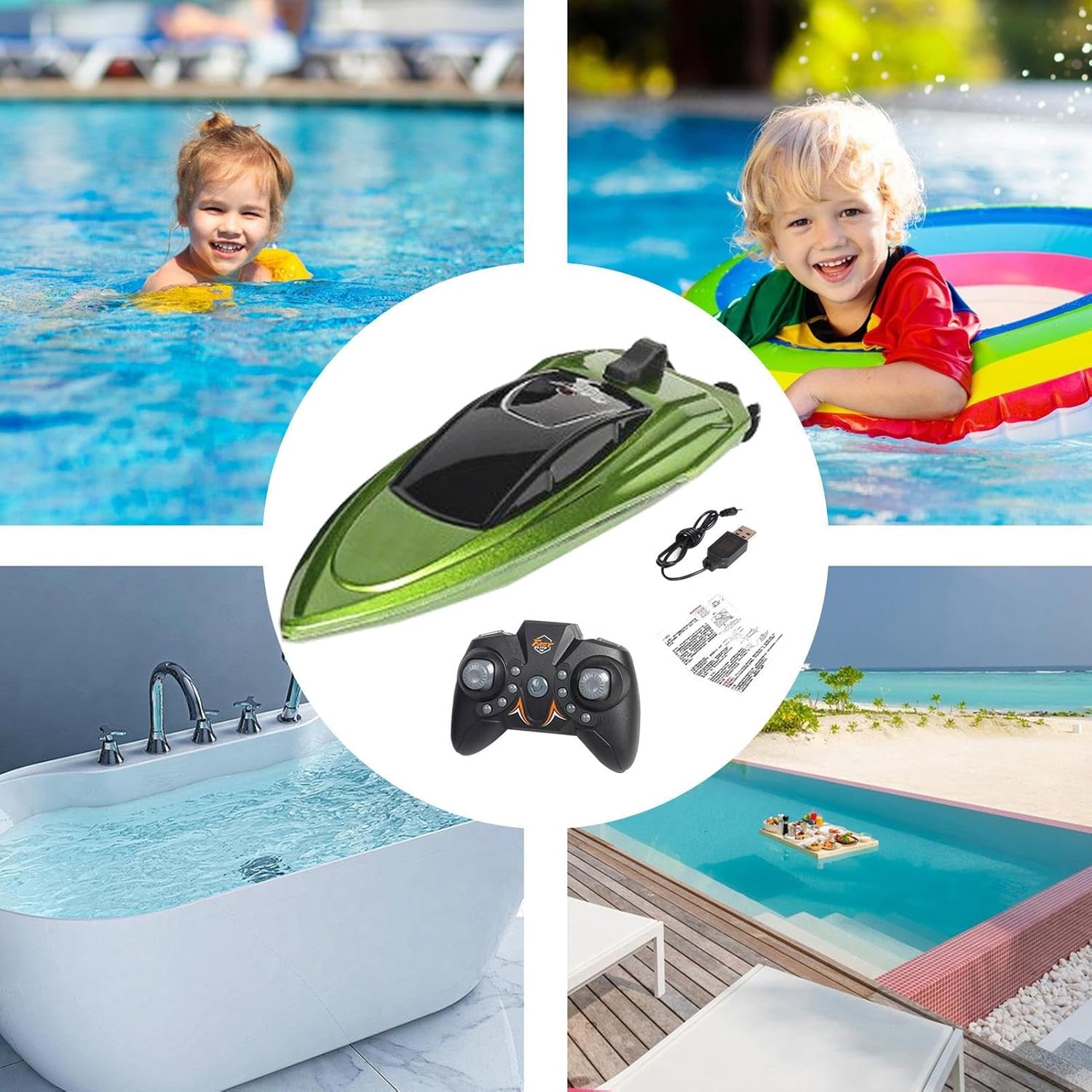 Verbesserte Navigation : Durch den Einsatz fortschrittlicher Technologie bietet unser ferngesteuertes 2,4-G-RC-Boot eine verbesserte Präzision durch die Verwendung eines 2,4-GHz-Funksteuerungssystems. Dadurch werden Störungen minimiert, eine gute Signalübertragung gewährleistet und Ihnen eine präzisere Steuerung und Navigation ermöglicht Wasserschutz: Dieses ferngesteuerte Boot besteht aus starken ABS-Materialien und verfügt über ein wasserdichtes Design. Es eignet sich für Pools, Seen und Badewannen. Seine langlebige, wasserdichte Konstruktion stellt sicher, dass es allen Wetterbedingungen ohne Schaden standhält, sodass Sie mehr Wasserspaß und Erkundungstouren genießen können Müheloser Gruppenspaß : Unser ferngesteuertes Boot bietet ein starkes Rennerlebnis mit Mehrkanal-RC-Design, sodass mehrere Boote gleichzeitig Rennen fahren können. Genießen Sie 12 Minuten optimierte Akkuleistung für ununterbrochenen Spaß mit Ihren Freunden und Ihrer Familie Mühelose Navigation : Erhalten Sie die präziseste Navigation mit unserem ferngesteuerten Boot, das auf maximale Manövrierfähigkeit ausgelegt ist. Das Warnsystem bei niedrigem Batteriestand stellt sicher, dass Sie nie überrascht werden, während die Sicherheits-Einschalterkennung für einen guten Schutz sorgt. Darüber hinaus macht die USB-Aufladung die Energieverwaltung zum Kinderspiel Vielseitiger Wasserspaß : Mit seiner kompakten Größe eignet sich dieses ferngesteuerte Boot sowohl für Innenbadewannen als auch für Kinderbecken, eignet sich hervorragend für Sommerunterhaltung im Freien und bietet mehr Spannung für alle Altersgruppen