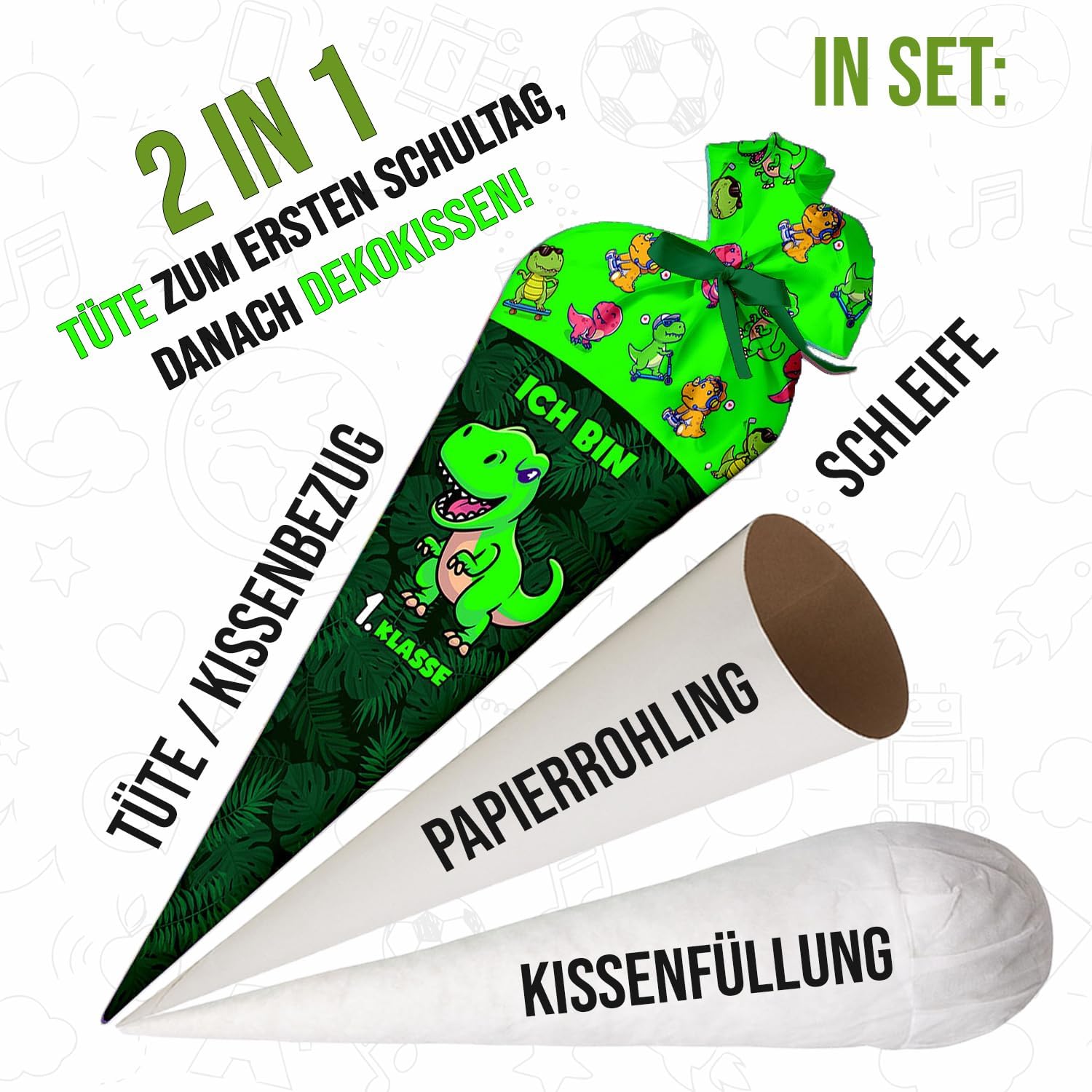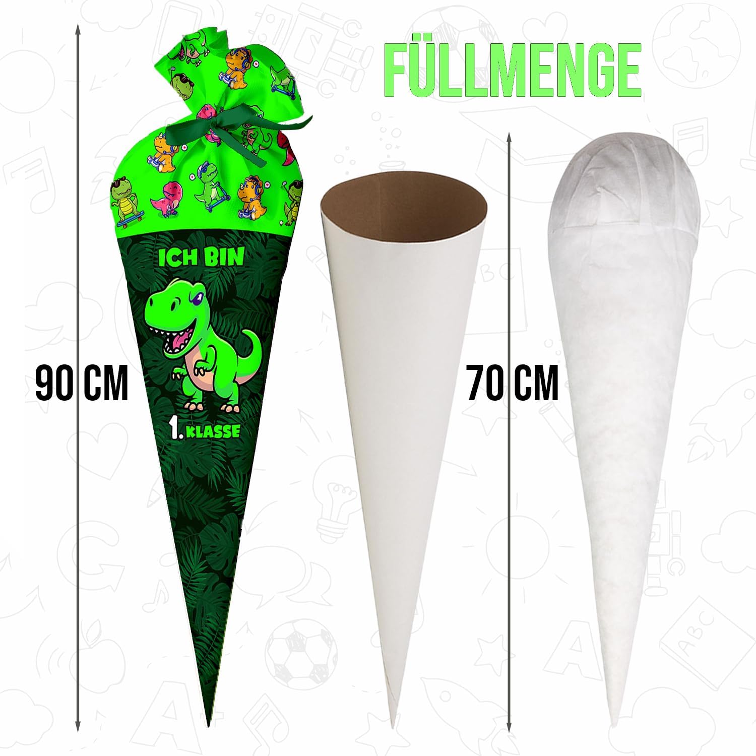 Il cono della scuola è realizzato in tessuto 100% poliestere. All'interno è presente un cartone tondo e un'imbottitura a sfera in fibra cava di poliestere removibile. Il tuo bambino potrà poi utilizzare la borsa come cuscino! Rimetti semplicemente le palline di fibra cava, fai un fiocco e il gioco è fatto. La borsa ha 70 cm da riempire (questa è anche la dimensione del cartoncino) + tessuto in alto che si può annodare con un fiocco. Il cinturino fa parte del kit. Il colore dell'arco verrà inviato a caso. Il sacchetto di caramelle è personalizzato con il nome del bambino. Basta fare clic su "Personalizza ora", inserire il nome e aggiungere al carrello! Nel nostro negozio troverai gli accessori scolastici adatti per l'inizio della scuola del tuo bambino, ad es. valigette, borse sportive e molto altro.