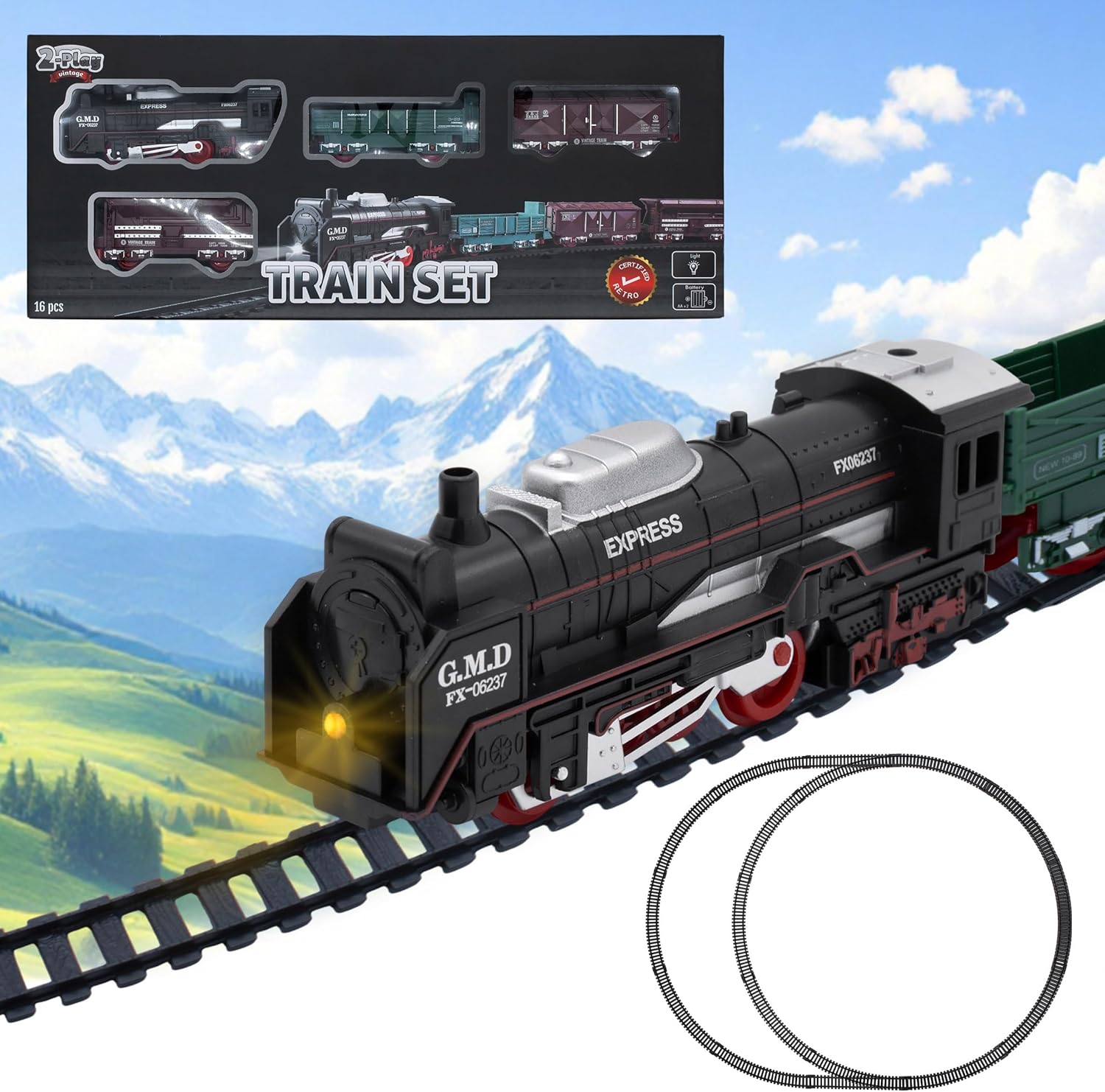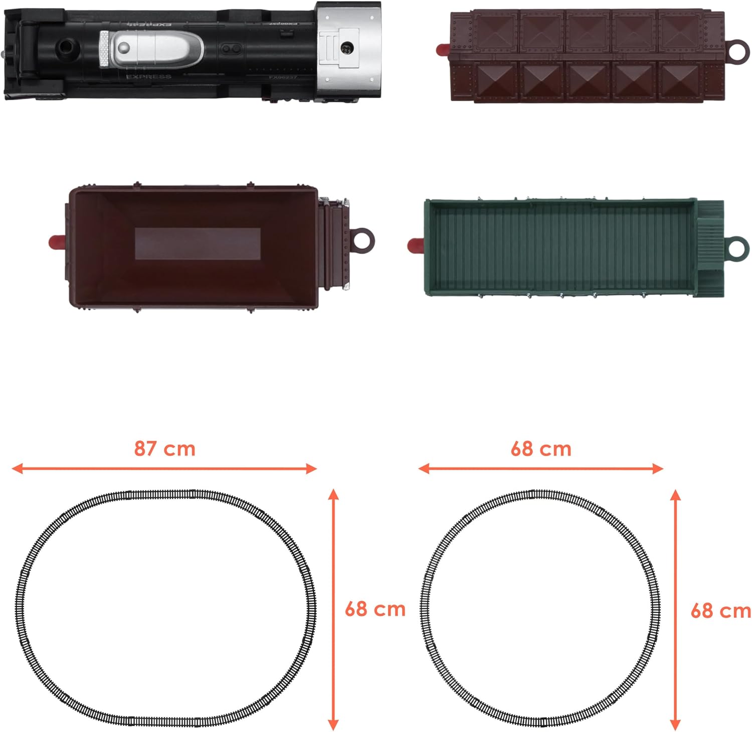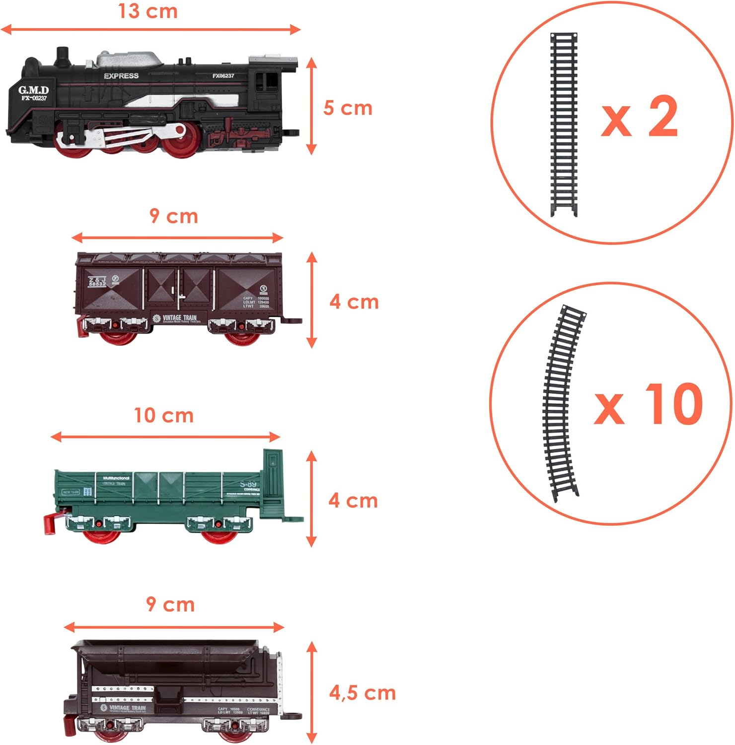 Il set è composto da un totale di 16 pezzi – Materiale: plastica – Colore: multicolore Trenino giocattolo elettrico in set completo da 16 pezzi Funzionamento a batteria: necessita di 2 batterie mignon AA da 1,5 V (non incluse nella confezione). Struttura flessibile della pista di trazione, come cerchio o ovale Dimensioni della struttura del cerchio: circa 68 cm (diametro). Dimensioni della struttura ovale: circa 87 cm x 68 cm (lunghezza x larghezza) Stimola il gioco creativo, le abilità motorie e il pensiero logico Divertimento per gli amanti della ferrovia dai 4 anni in su, ideale come idea regalo, per la cameretta dei bambini o in viaggio Il set include: 1 locomotiva, 3 carri, 10 parti di binari curve, 2 guide dritte