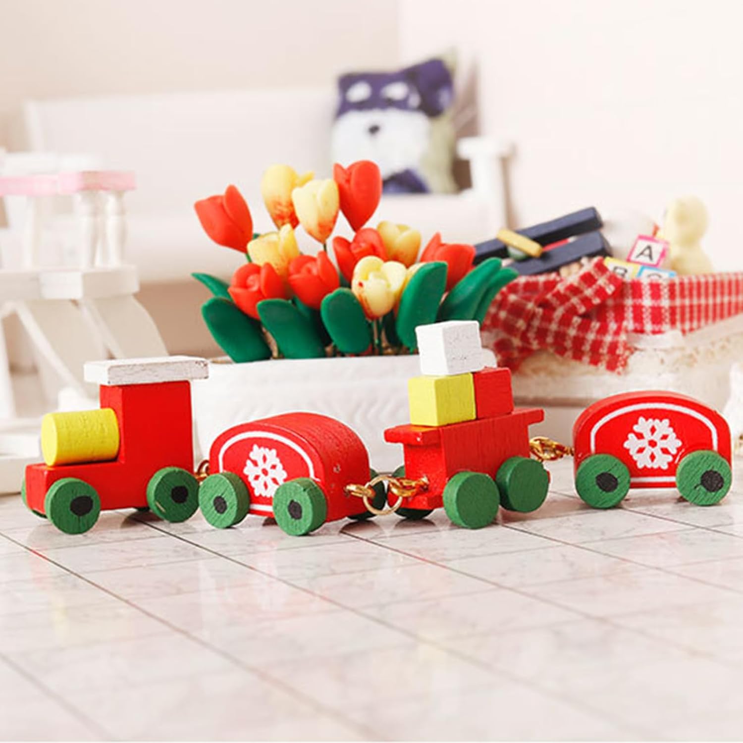 Con precisione e legno selezionato, questo treno in miniatura presenta intricati dettagli di fiocchi di neve e un tema festivo, perfetto per migliorare le decorazioni della tua casa delle bambole. Non importa se vuoi espandere i tuoi mondi in miniatura o se stai cercando un regalo speciale, questo treno in miniatura della casa delle bambole è un'ottima aggiunta che promette divertimento e un'atmosfera da festival. Goditi l'atmosfera festosa con questi trenini in miniatura per case delle bambole in scala 1:12, un fantastico modello giocattolo di trenino natalizio, che porta divertimento a qualsiasi collezione di miniature. Crea l'ambientazione per il divertimento natalizio nelle tue case delle bambole o usalo come pezzo decorativo unico per aggiungere un tocco di divertimento alla decorazione stagionale della tua casa o come supporto fotografico creativo. Questo modello giocattolo è ideale per gli appassionati di case delle bambole e i collezionisti di miniature ed è progettato per stimolare l'immaginazione di bambini e adulti