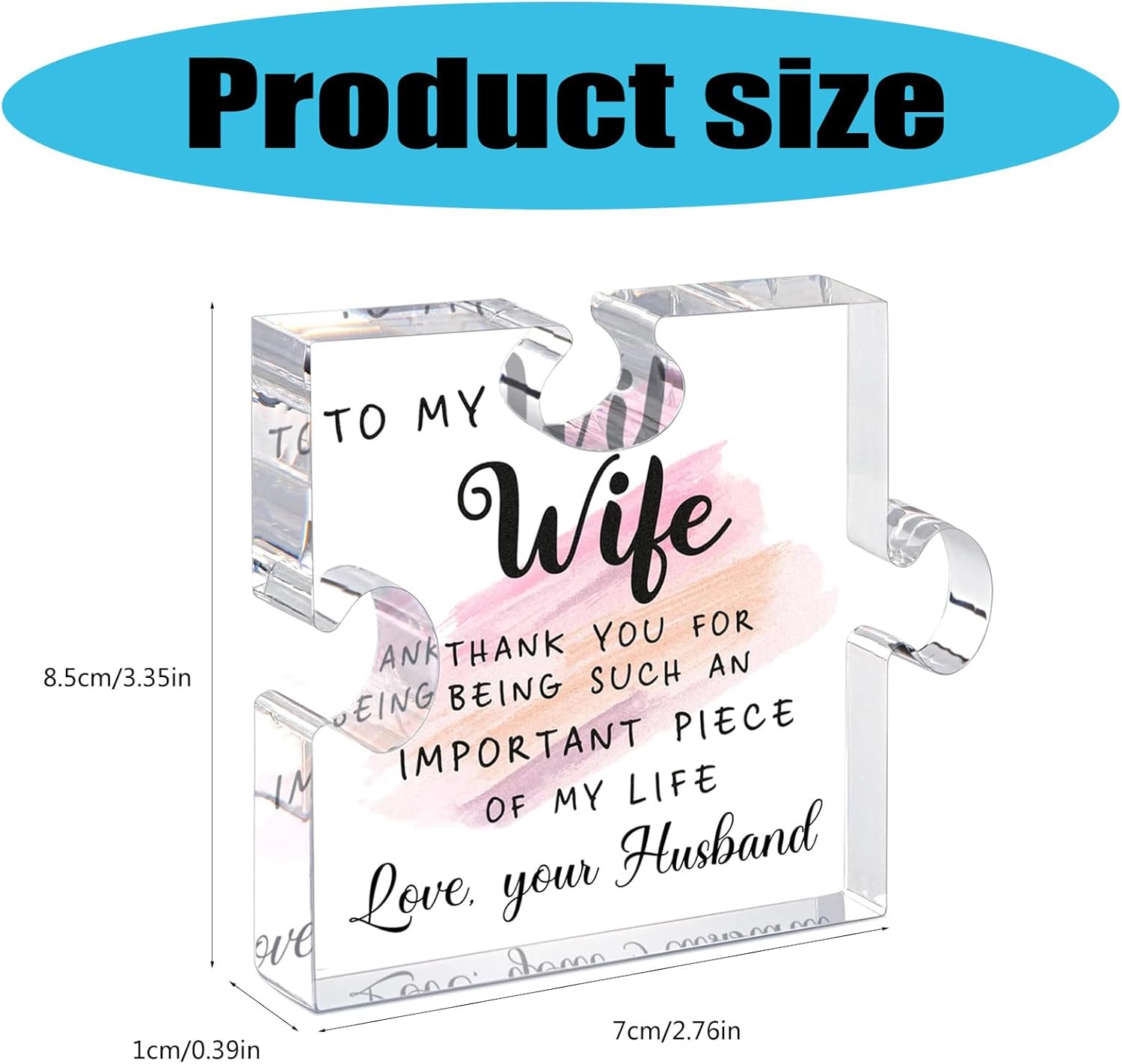 Per migliorare il vostro salotto, la scrivania dell'ufficio o la zona studio, questo pezzo aggiunge calore e fascino a qualsiasi spazio Che si tratti della festa della mamma, Natale, compleanno o anniversario, questo puzzle decorativo funziona come un regalo unico per una donna Questi pezzi colorati di blocchi di puzzle acrilici presentano un design unico e sincero che simboleggia il calore e la gratitudine Realizzato in acrilico trasparente ad alta resistenza, questo pezzo vivace e complesso è durevole, lunga durata dello schermo, facile da pulire e aggiunge a qualsiasi arredamento Ideale per mostrare apprezzamento alle zie, soprattutto generazioni e per i significati professionali