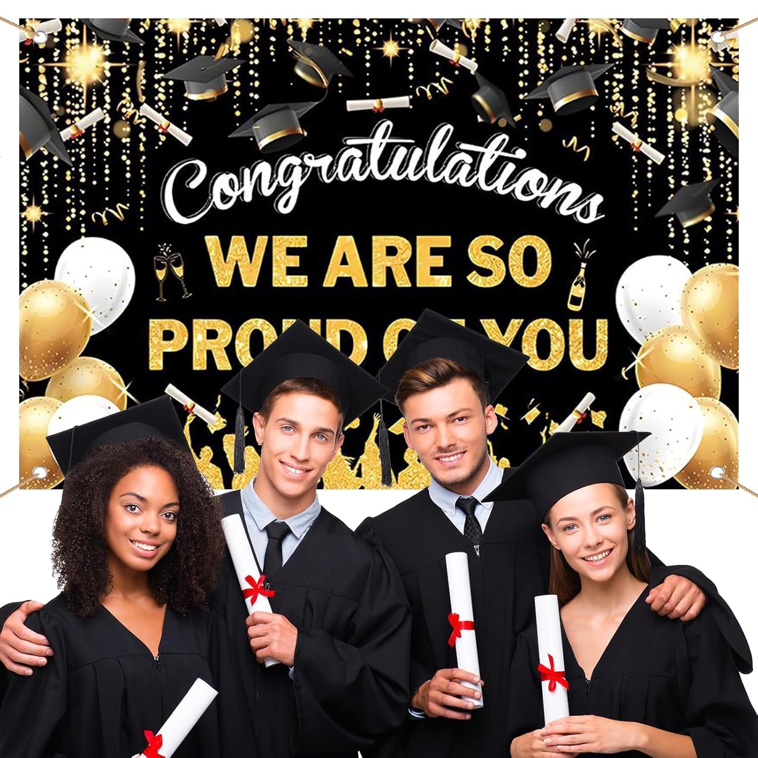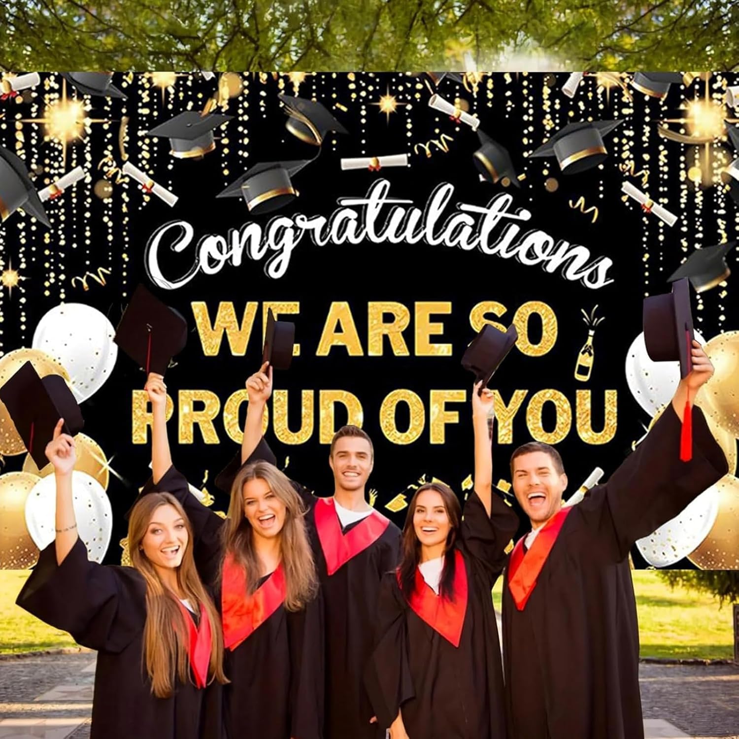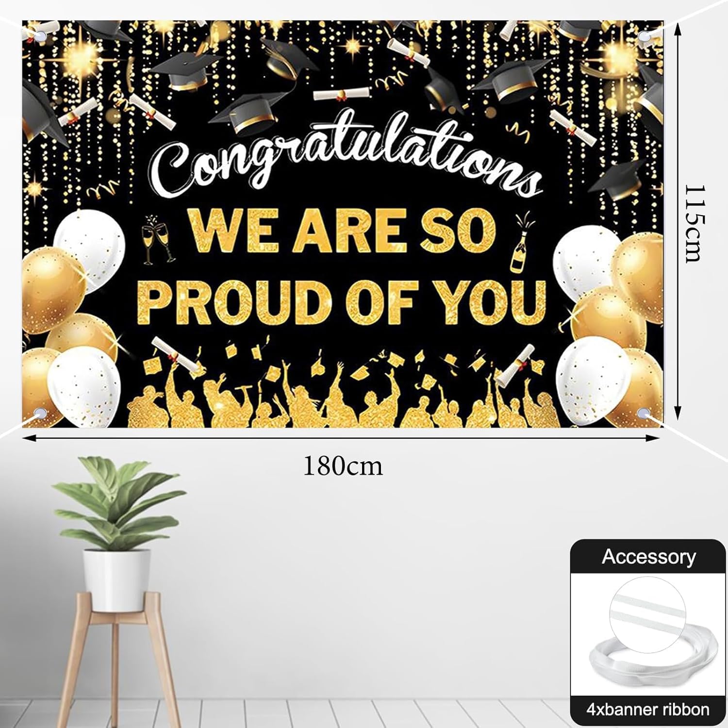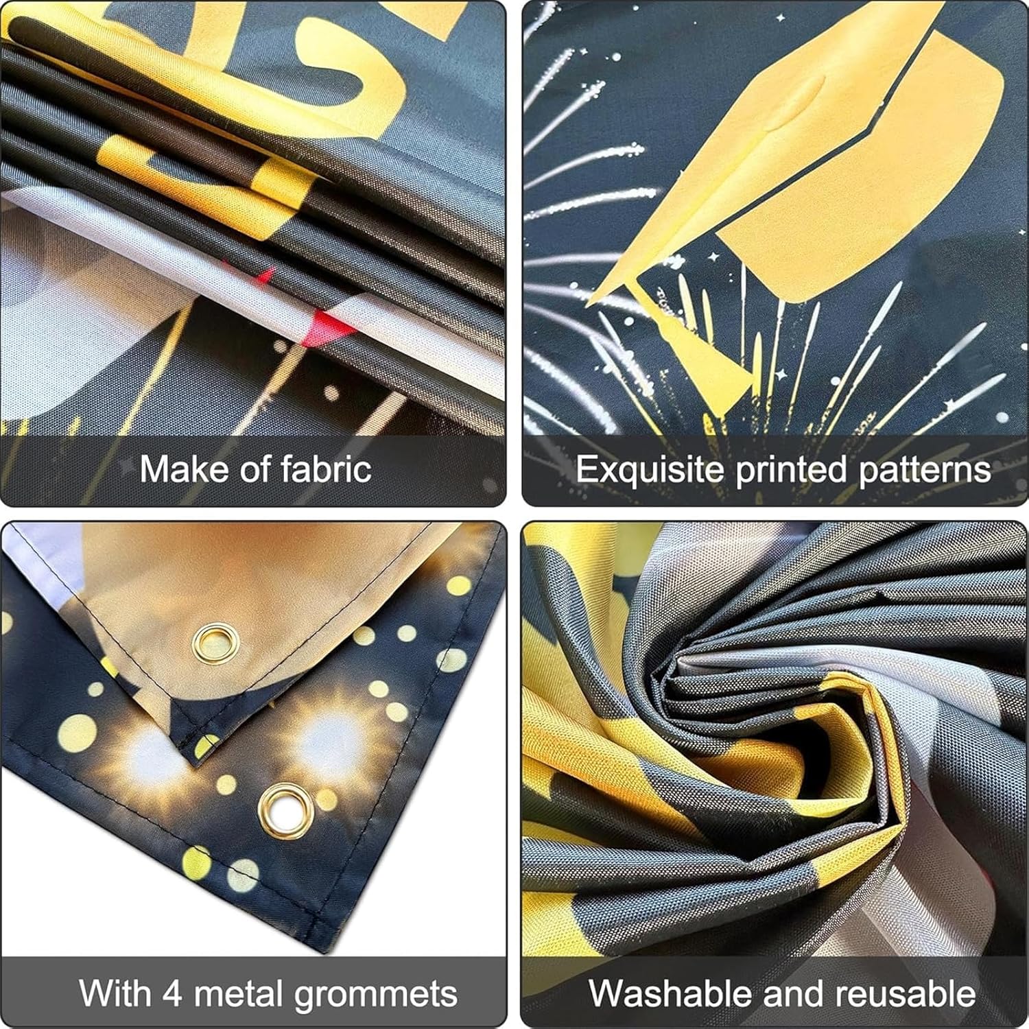 【Design ampio ed elegante】 Include 1 striscione di laurea in tessuto (180 x 115 cm / 70,8 x 45,3 pollici) e una corda da 6 m. Il design ampio aggiunge un tocco di eleganza alla tua festa di laurea 2025 e crea un'atmosfera di festa indimenticabile. 【Decorazione versatile】 Questo banner sullo sfondo della laurea del 2025 è perfetto per varie ambientazioni di feste, tra cui decorazioni per cerimonie di laurea, riunioni di classe, fondali per balli studenteschi, strutture per il giardino, recinzioni, porte, pareti e decorazioni per alberi. Migliora senza sforzo il tema della festa. Classica combinazione di colori nero e oro: con una combinazione senza tempo di nero e oro, questo striscione trasuda raffinatezza ed eleganza. L'armoniosa combinazione di colori si adatta perfettamente al tema della laurea 2025 e lo rende un vero e proprio eye-catcher per foto e decorazioni. 【Materiale durevole di alta qualità】 Realizzato in tessuto di poliestere di alta qualità, questo banner è resistente agli agenti atmosferici, privo di componenti in plastica e dotato di accessori metallici antiruggine. Il processo di stampa digitale garantisce colori vivaci e resistenti allo sbiadimento. Adatto per uso interno ed esterno, può essere riutilizzato più volte mantenendo la sua qualità. Acquista con fiducia: che la tua festa di laurea sia all'interno o all'esterno, questo striscione di laurea in tessuto è progettato per elevare l'arredamento e creare un'atmosfera calda. Scopri altre decorazioni per la festa di laurea per rendere la tua festa ancora più memorabile!