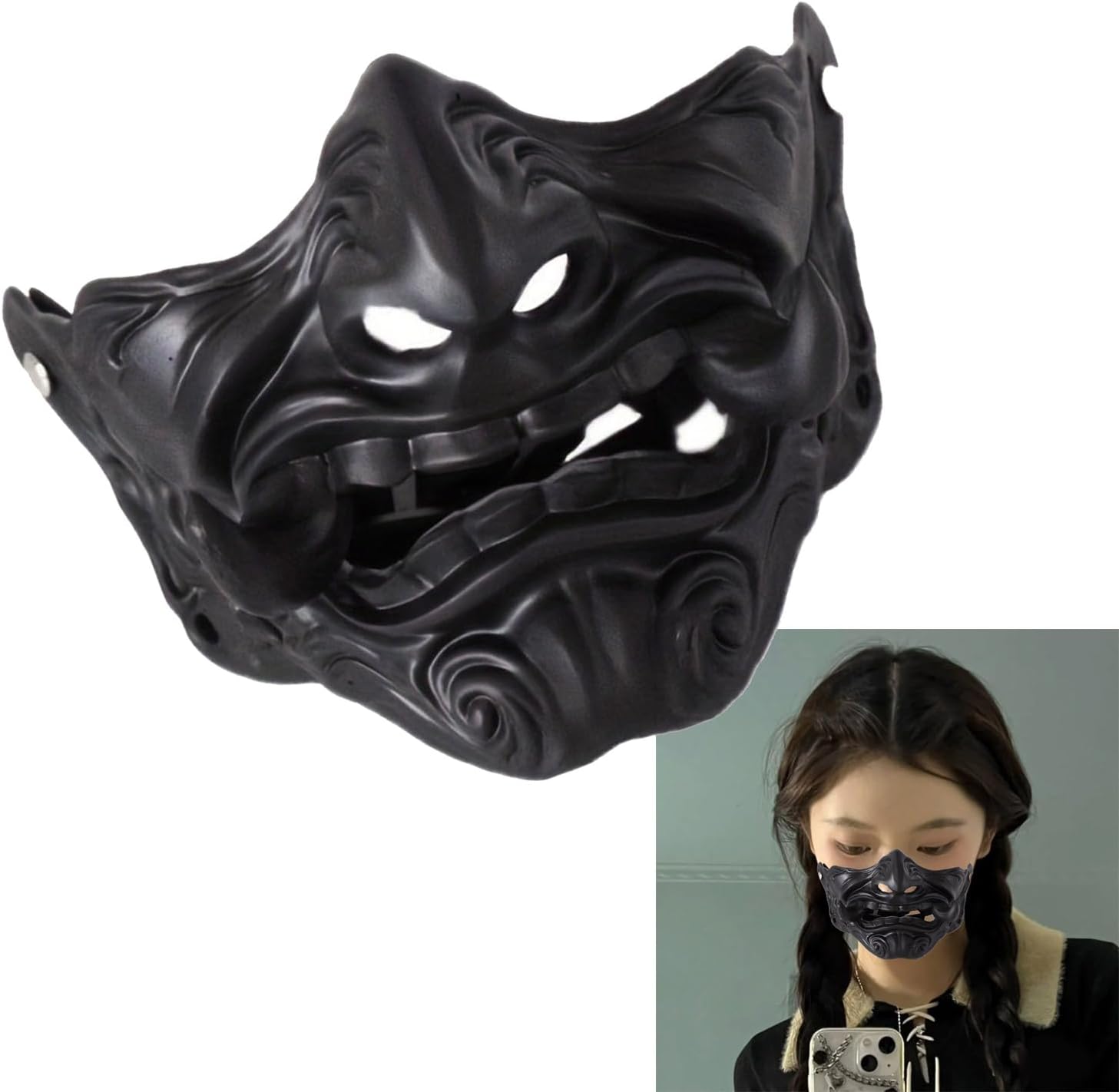Ideale per feste di Halloween, convegni e spettacoli teatrali che richiedono una trasformazione rapida e drammatica con il rilascio dello strumento 5 secondi assemblaggio Il meccanismo regolabile consente di cambiare rapidamente i personaggi, rendendolo essenziale per eventi cosplay dinamici e costumi pronti per le foto Migliora il tuo cosplay con questo stile giapponese Oni presenta zanne stampate realistiche e dettagli intricati per immersioni del personaggio Realizzato in robusta resina ABS facile da usare, il design delicato garantisce una comoda usura prolungata mentre raddoppia la longevità tradizionale s sia per i cosplayer principianti che per i ruoli professionali, gli appassionati di giochi cercano attrezzature sicure per convegni di anime o eventi a tema
