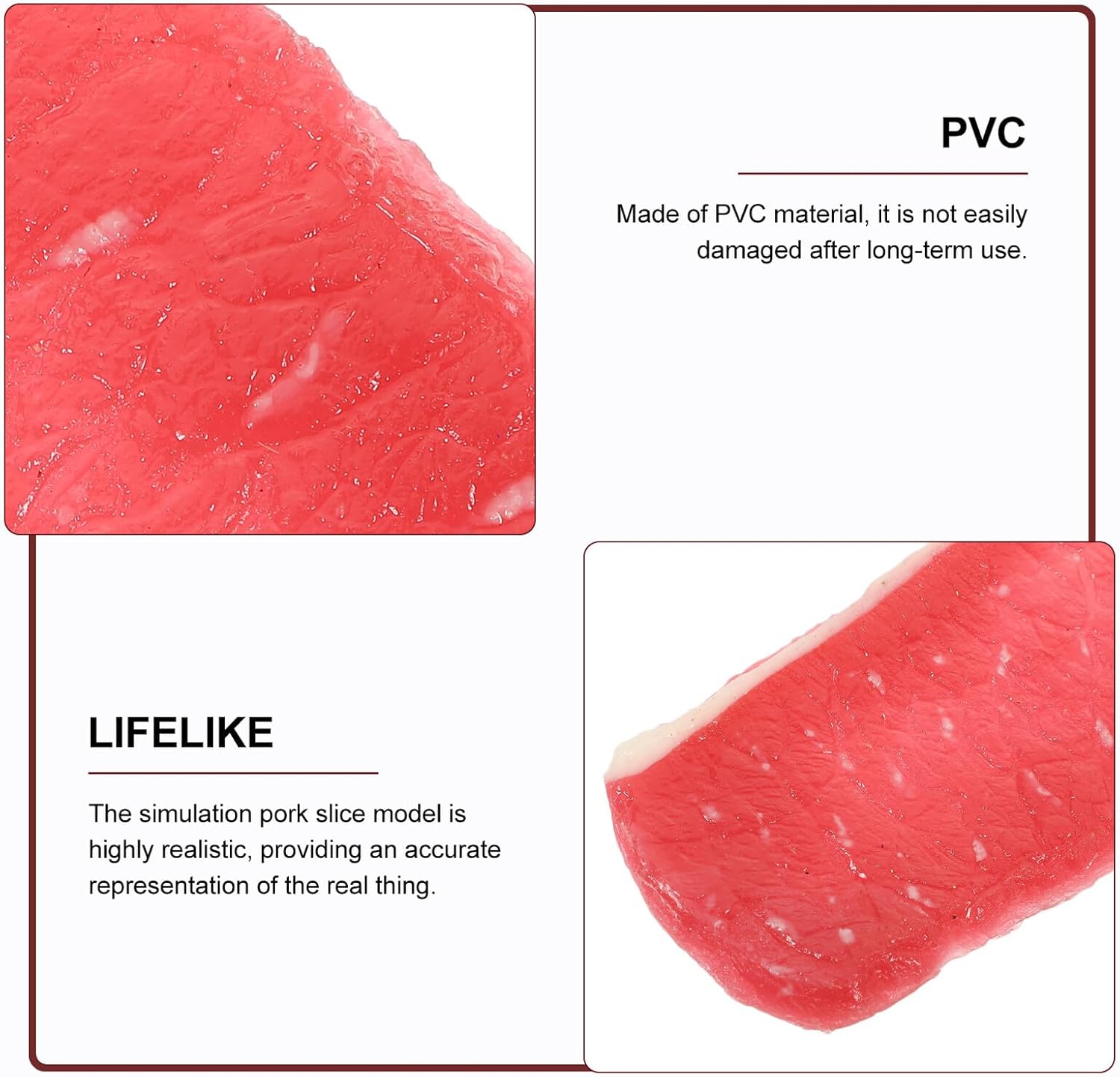 Cibo simulato: l'aspetto realistico della carne aggiungerà uno vivido e naturale alla casa per i , realistico di fetta di maiale può essere un perfetto oggetto di facsimile, oggetti di alimentari per esporre la carne Accessori per alimenti artificiali: design di lo distingue da altri prodotti simili, rendendolo una scelta eccezionale per coloro cercano qualcosa di speciale, di cibo decorativo Giocattoli alimentari realistici: è durevole e affidabile, garantendo durerà a lungo e resisterà all'uso frequente, fette di carne finte Carne : maiale simulato ha un design realistico, un bel colore, un aspetto delicato e raffinato, un giocattolo di carne simulata Cibo artificiale: realizzato con materiali avanzati, sicuro e pratico, durevole, non sbiadisce facilmente, non si rompe facilmente, di carne