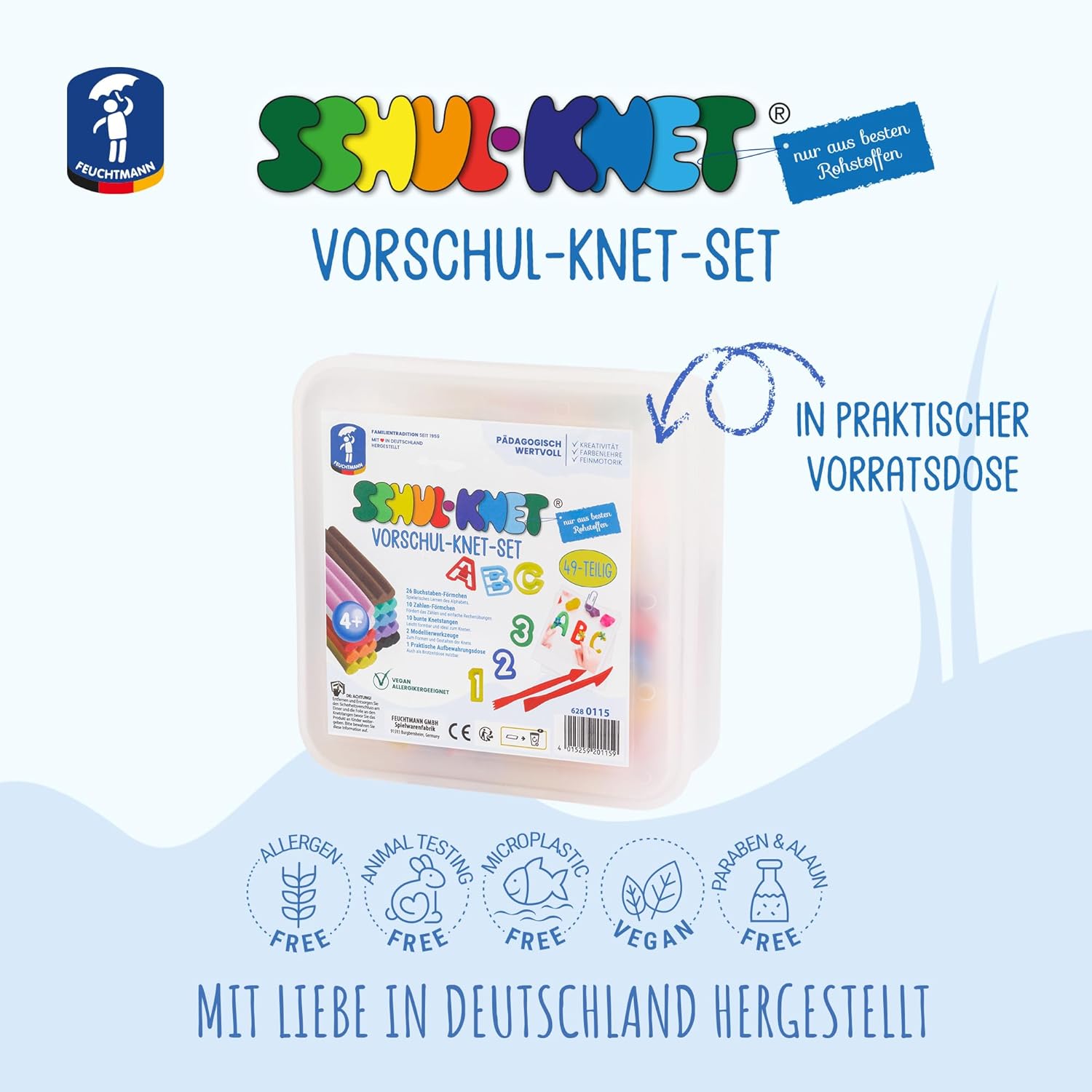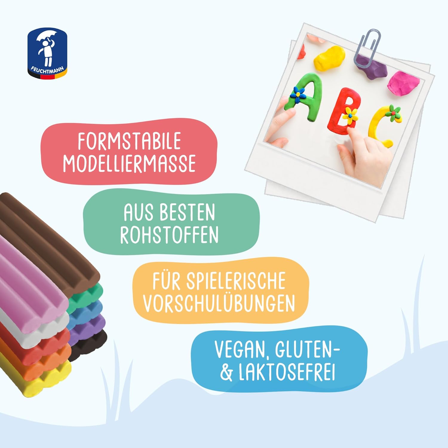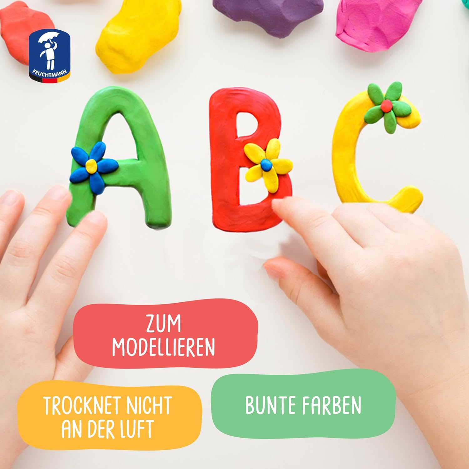 Comprovata: la pasta da modellare della scuola Feuchtmann è una pasta da modellare molto malleabile e dimensionalmente stabile e con la sua formula collaudata è da 40 anni un classico nella scuola e nelle stanze dei bambini. Non indurisce, non si attacca e non scolorisce Creativo: impastando, la base in cera Feuchtmann SCHUL-KNET si riscalda in tempo record e consente di creare splendide figure modellabili. I colori espressivi e lo strumento di modellazione incluso garantiscono ancora più creatività dei bambini. Sicuro: la pasta da modellare Feuchtmann School è prodotta in Germania con le migliori materie prime e soddisfa i più alti standard di qualità. Pulito: la pasta da modellare per la scuola non solo può essere lavorata in modo pulito, ma anche facilmente da tessuti, tappeti e simili. Rimuovilo Innocuo: l'impasto vegano è senza glutine, senza proteine, senza noci e senza lattosio! Ecco perché è assolutamente sicuro per chi soffre di allergie. Dai 4 anni.