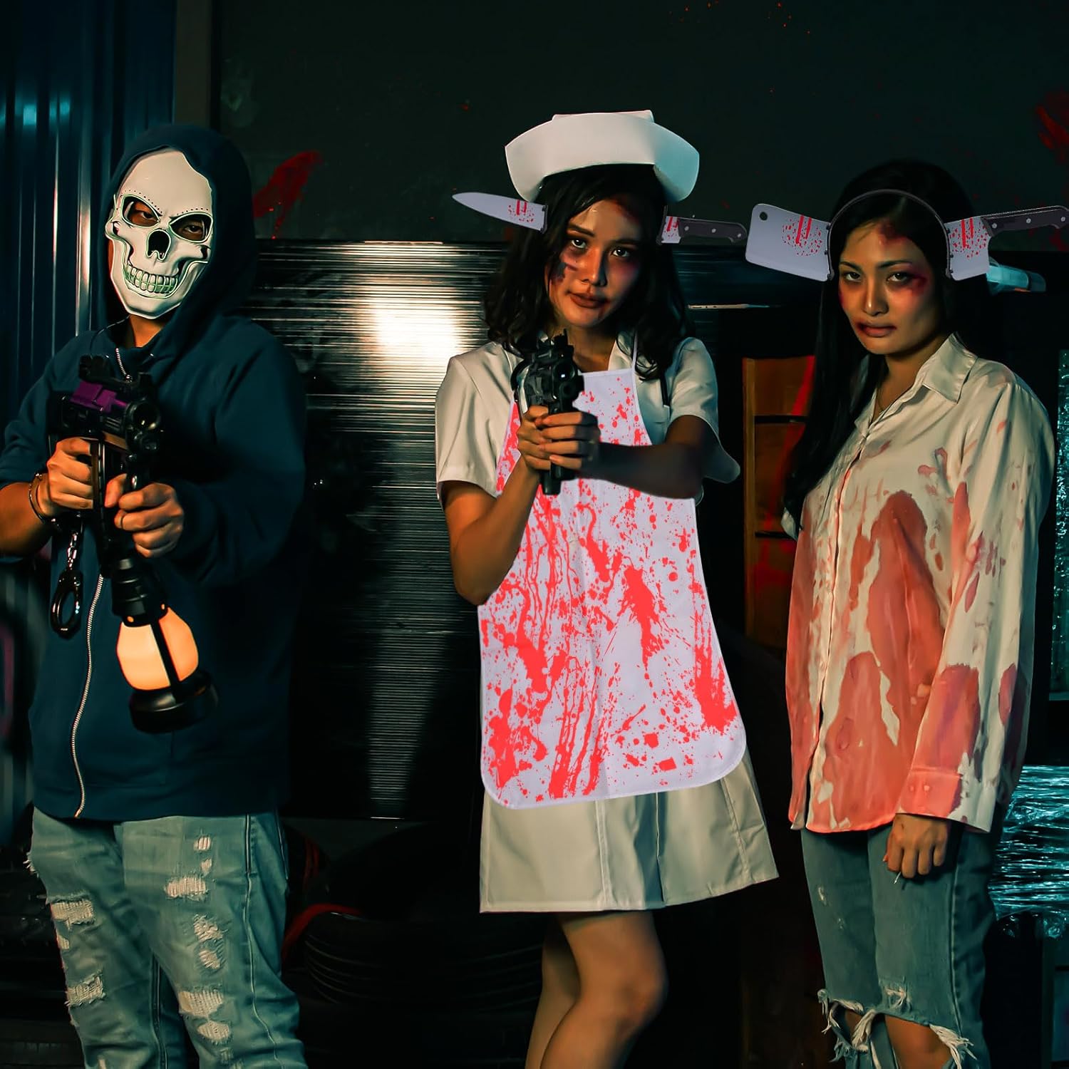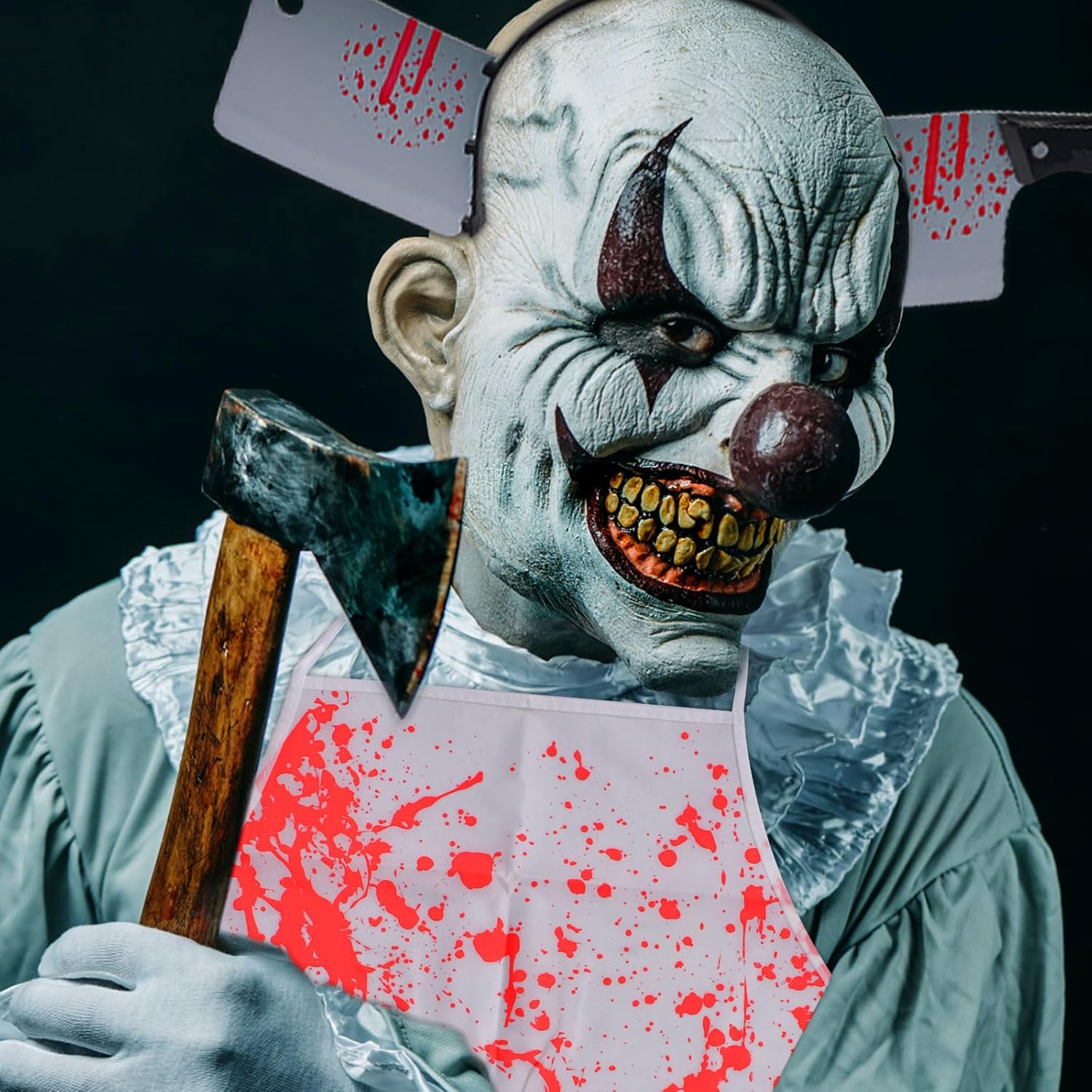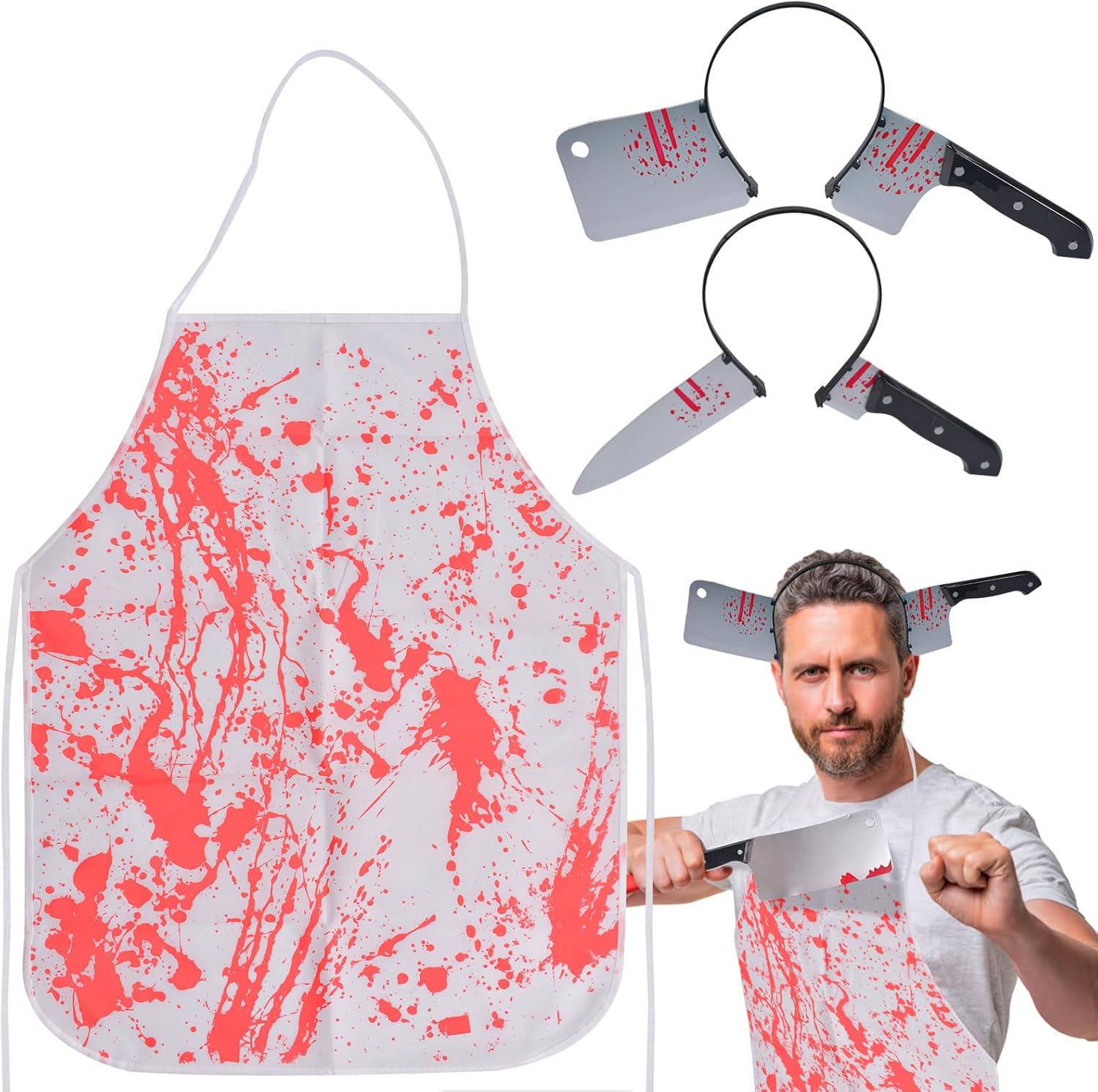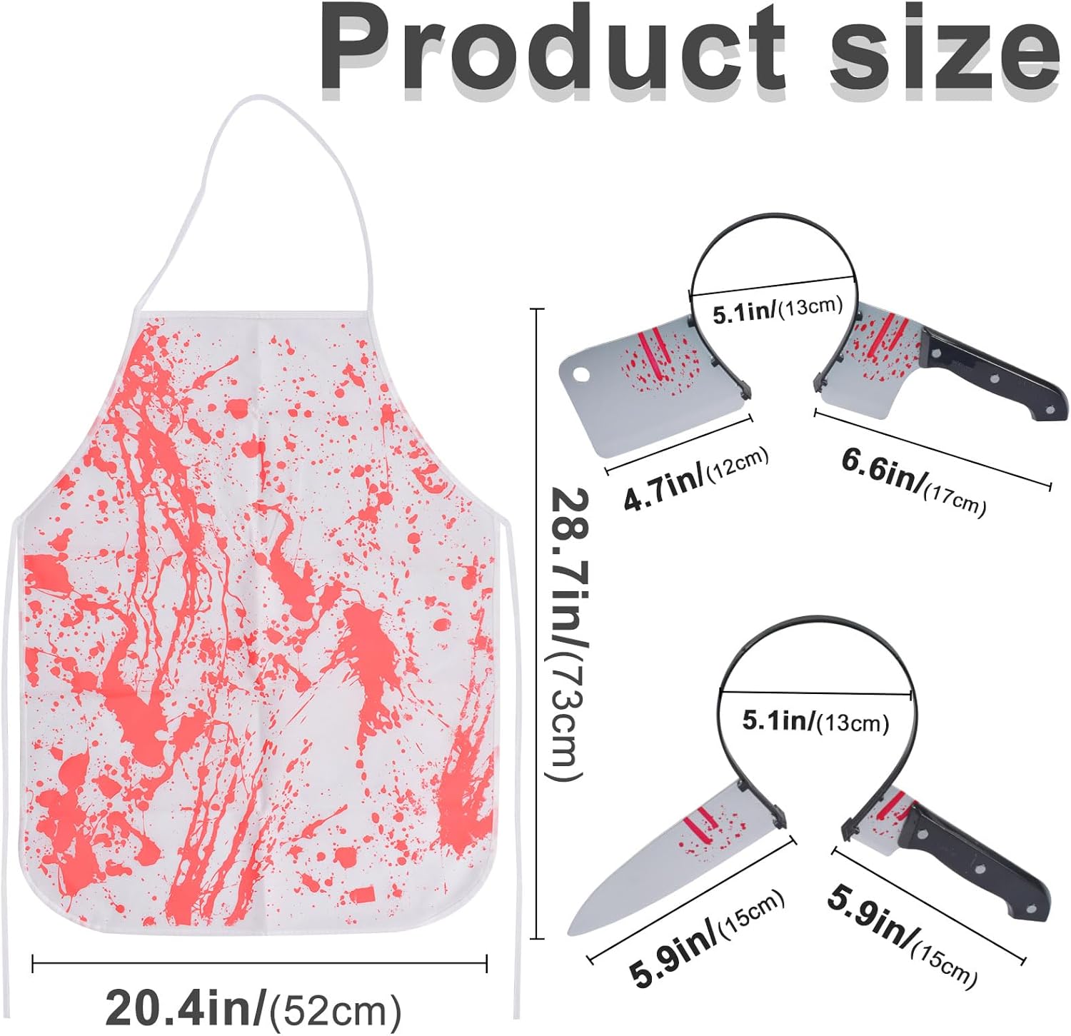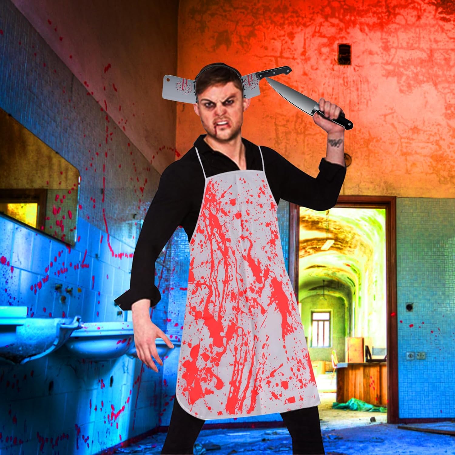 FGen Confezione da 3 macellaio di Halloween, fascia horror, grembiule da macellaio con schizzi di sangue di Halloween, coltello di Halloween in testa, grembiule insanguinato horror, per la festa in costume di Halloween