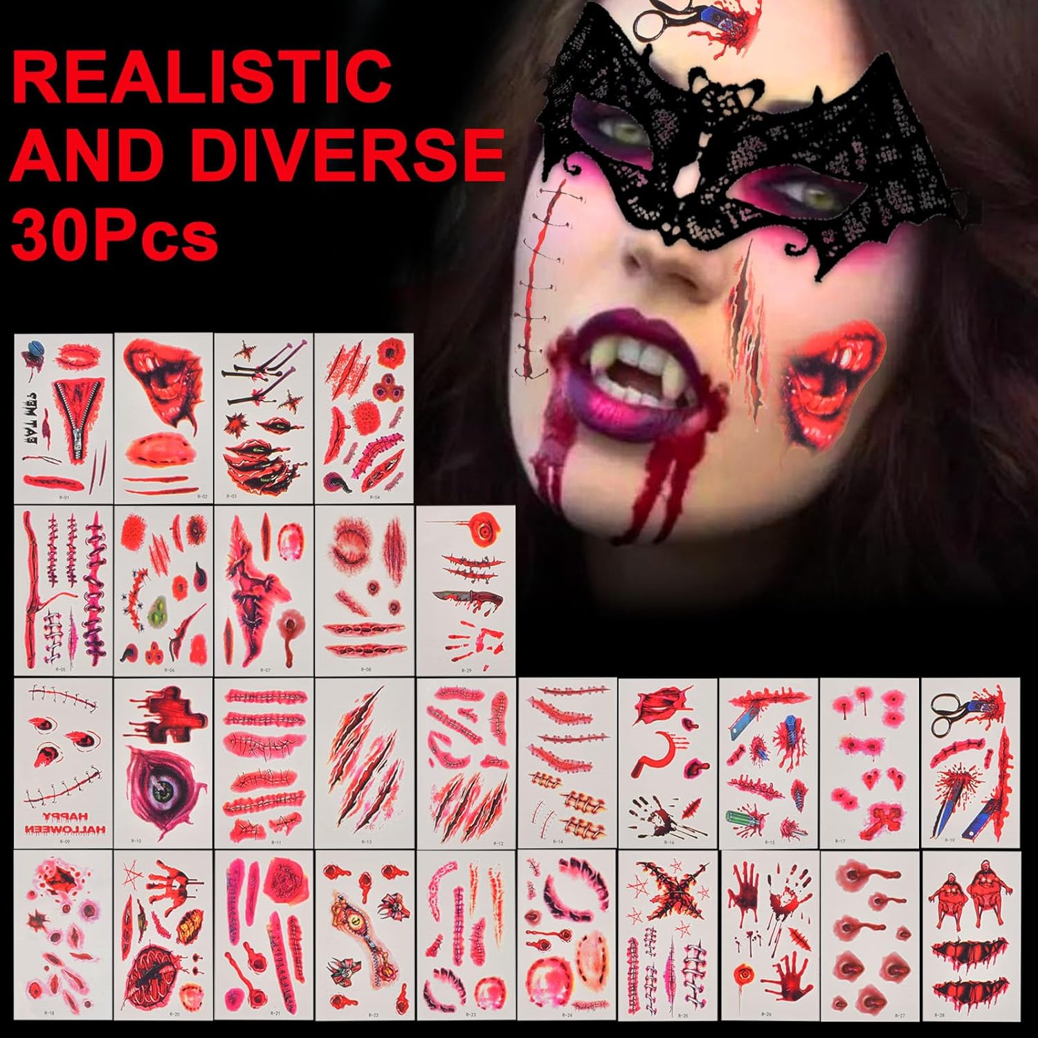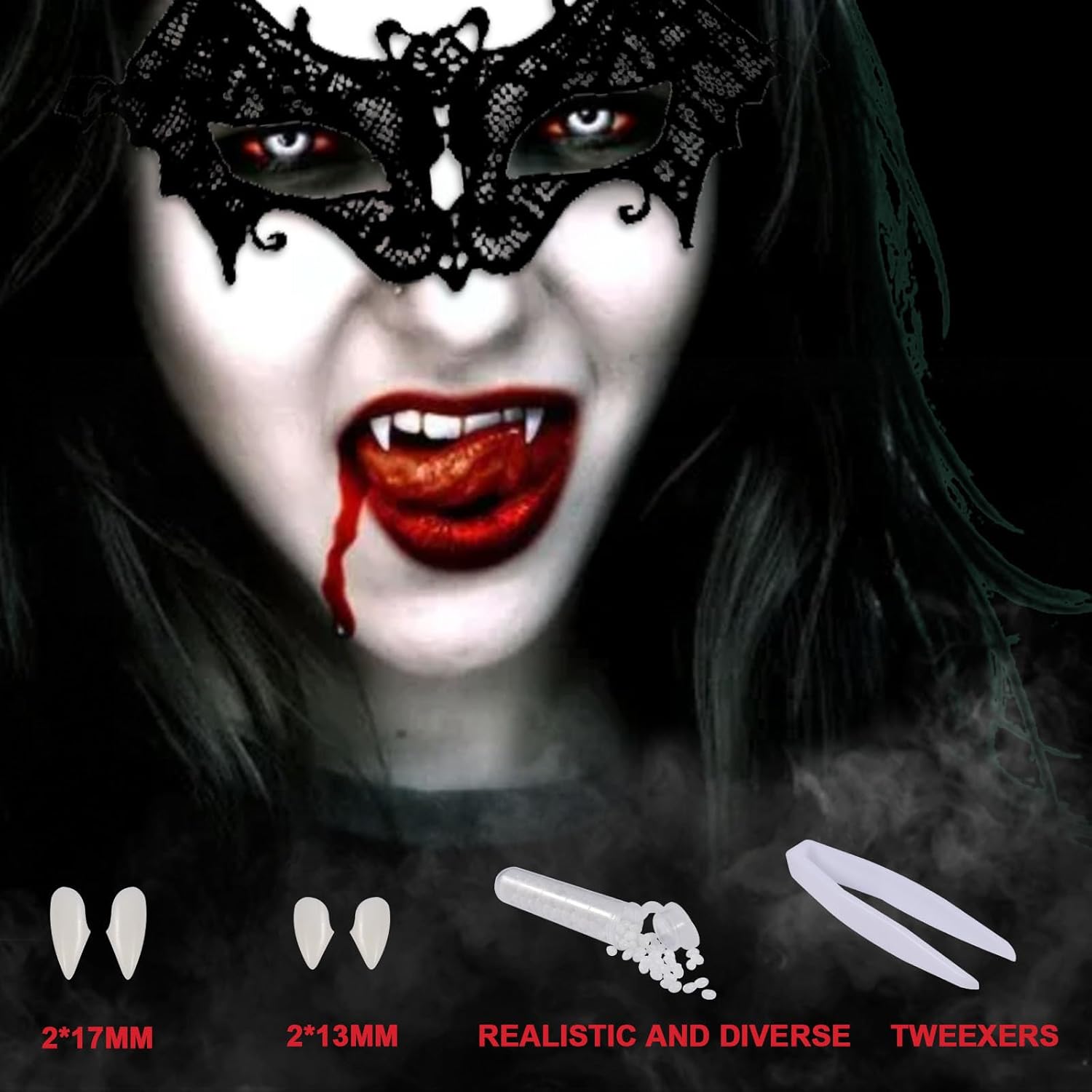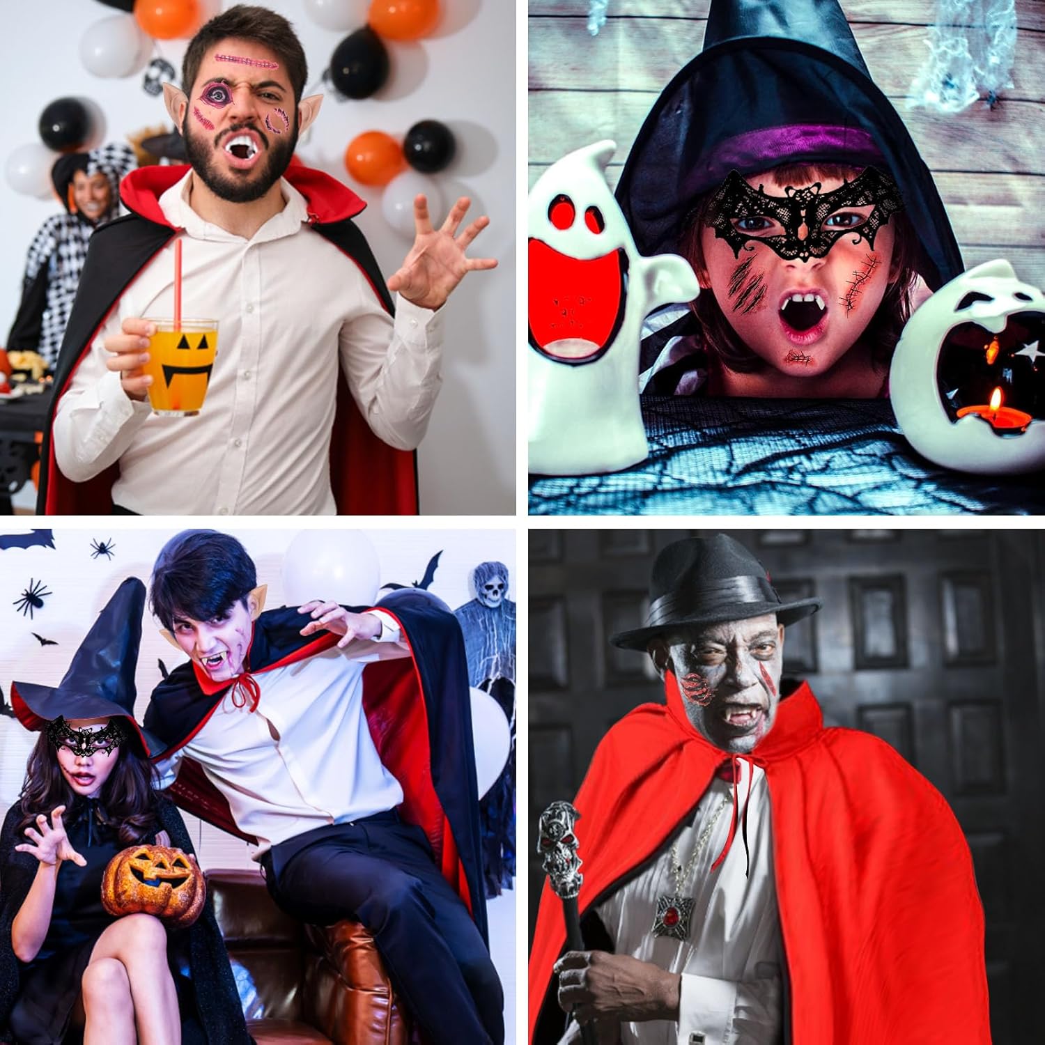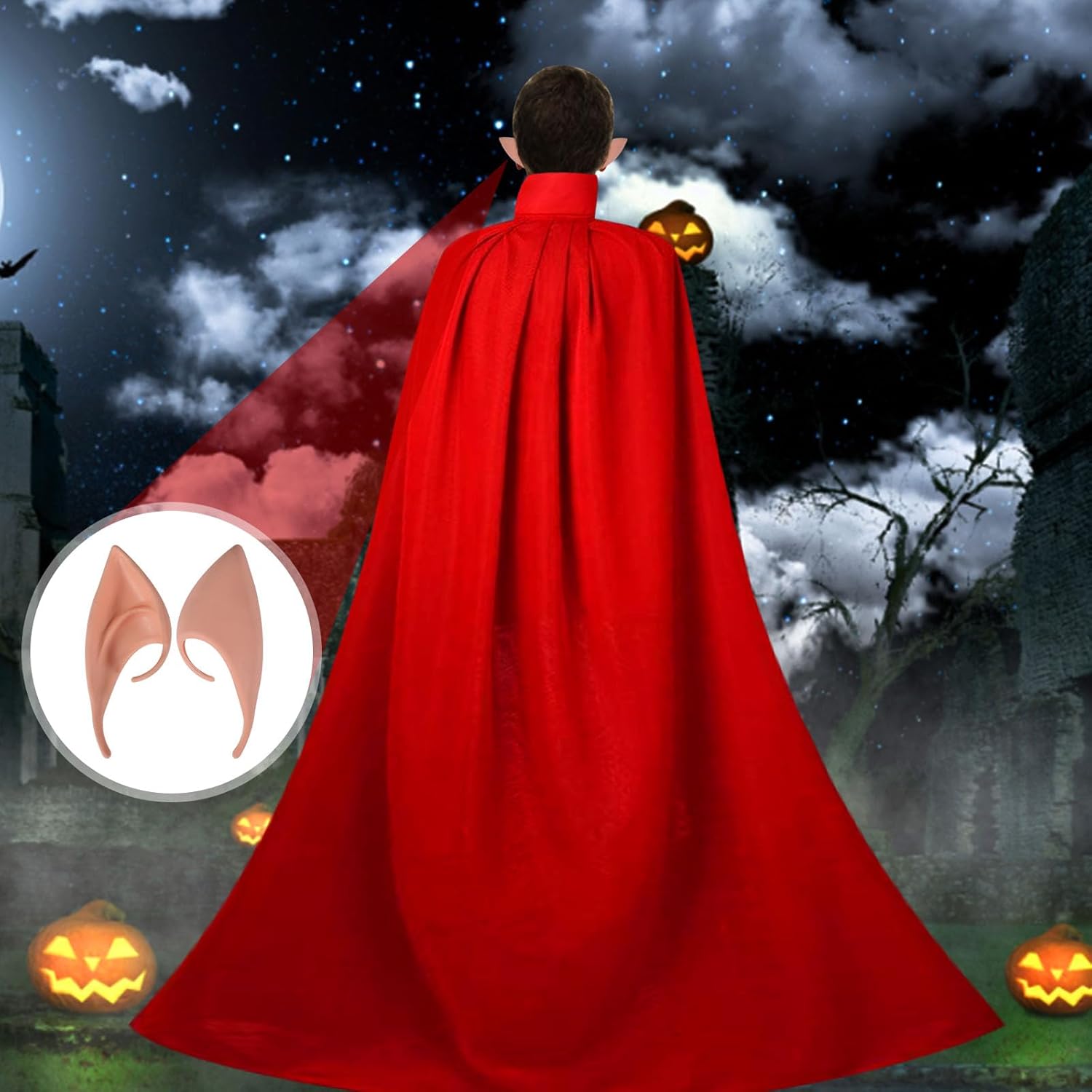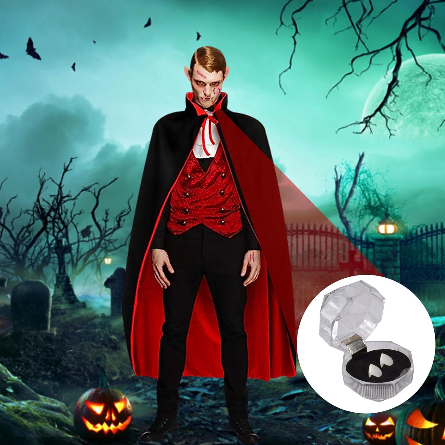 FGen Halloween Mantello da Vampiro, con 30 Tatuaggi Temporanei, 4 Denti da Vampiro, 2 Orecchie da Elfo, 1 Maschera per Occhi di Pipistrello Costume Adatto per Giochi di Ruolo di Halloween