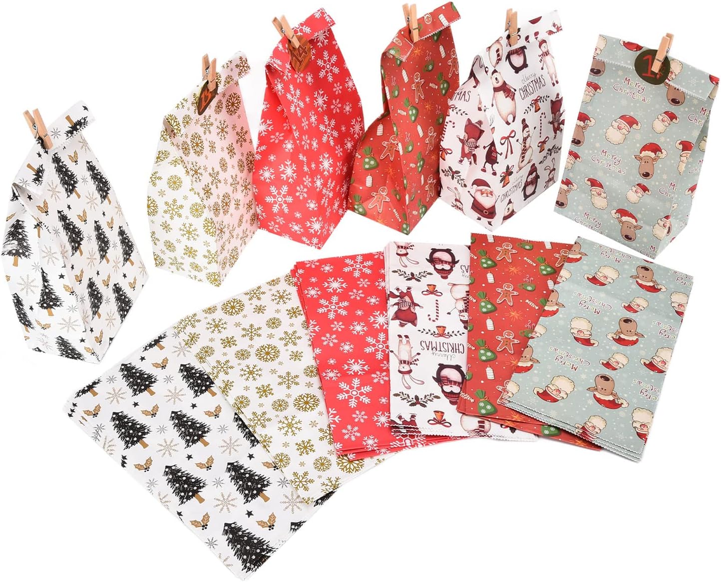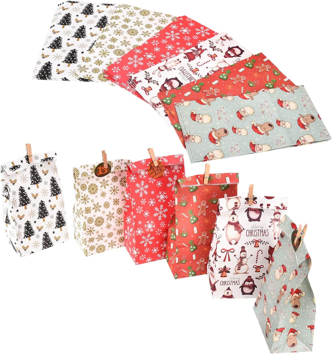 Migliora il tuo regalo natalizio con il nostro set di sacchetti regalo natalizi da 24 pezzi, con squisiti disegni che catturano lo spirito festivo. Ogni borsa è decorata con vivaci temi natalizi, perfetta per aggiungere un tocco di gioia ed eleganza ai tuoi regali, rendendoli indimenticabili per i tuoi cari. Questi sacchetti regalo sono dotati di adesivi digitali, che consentono di personalizzare ogni regalo con facilità. Gli adesivi sono semplici da applicare e rimuovere, offrono un modo senza problemi per aggiungere nomi o messaggi festivi, assicurando che i tuoi regali si distinguano sotto l'albero di Natale. Realizzati per comodità e stile, questi sacchetti sono progettati per ospitare una varietà di dimensioni regalo. La loro struttura robusta assicura che i tuoi regali siano avvolti in modo sicuro, mentre i bellissimi disegni li rendono una deliziosa aggiunta a qualsiasi celebrazione delle vacanze. 🎉 Con 24 sacchetti in ogni set, avrai molto per soddisfare tutte le tue esigenze di regalo per le vacanze. Che si tratti di riunioni di famiglia, feste in ufficio o eventi festivi, queste borse offrono una soluzione rapida ed elegante per avvolgere regali, risparmiando tempo durante le intense festività natalizie. Goditi la facilità d'uso con questi sacchetti regalo natalizi, progettati per un montaggio rapido e una finitura lucida. Basta posizionare il regalo all'interno, piegare la parte superiore e fissarlo con gli adesivi inclusi per una presentazione senza cuciture e festosa che impressionerà tutti.