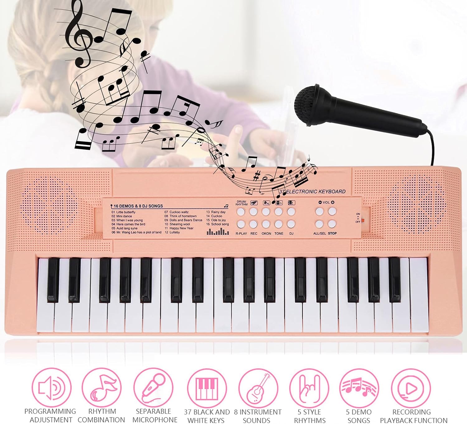 D Educazione musicale.. Tastiera musicaleTastiera giocattoloTastiera elettricaTastiera pianoelettrica a 37 tastiPianoforte elettrico. 【Design portatile e conveniente】 - Progettata per le famiglie moderne e impegnate, la nostra tastiera elettrica è portatile e dotata di doppia alimentazione. Può essere alimentato tramite ricarica USB per uso interno o con 3 batterie AA per l'uso in movimento. Questa flessibilità garantisce che N. Il pianoforte abbia un m. Tastiera musicaleTastiera giocattoloTastiera elettrica37 tasti Tastiera pianoelettrica Pianoforteelettrico. 【F e microfono funzionale】 - Limita l'esecutore interiore di tuo figlio con il microfono integrato con cui può giocare per un po'. Questa caratteristica unica non solo aumenta il tuo divertimento musicale, ma promuove anche l'espressione di sé e la fiducia in se stessi. Con la funzione di registrazione integrata puoi anche registrare la tua voce e la tua composizione. 【La formazione musicale è stata divertente. Ti invita a immergerti nel mondo della musica e crearne uno per le competenze future. La creazione di melodie favorisce un amore per la musica che può durare tutta la vita, rendendolo un'aggiunta inestimabile alla stanza dei giochi di un bambino. D Educazione musicale. 【Opzioni audio versatili】 - Questo piano elettrico offre una variazione di Sou con 2 toni, 16 brani preinstallati, 4 ritmi e 4 opzioni di percussioni. La funzione del volume della musica consente un tempo di gioco personalizzato, offrendo sia esercizi tranquilli che sessioni di musica vivace. Con suoni così straordinari, puoi esplorare e influenzare la tua creatività, migliorare la tua esperienza musicale e renderla ideale. Tastiera musicaleTastiera giocattolo elettrica 【Materiali S】 - La nostra tastiera a 37 tasti realizzata in S e materiali garantisce i tuoi piccoli musicisti. La lavorazione fine e i bordi fanno sì che non danneggi le dita dei bambini, permettendo loro di giocare con sicurezza e gioia. Questo design accurato è inclusivo e divertente, rendendolo l'introduzione ideale alla musica per i bambini piccoli. N. Il pianoforte ha una m. Tastiera musicaleTastiera giocattoloTastiera elettricaTastiera pianoelettrica a 37 tasti P