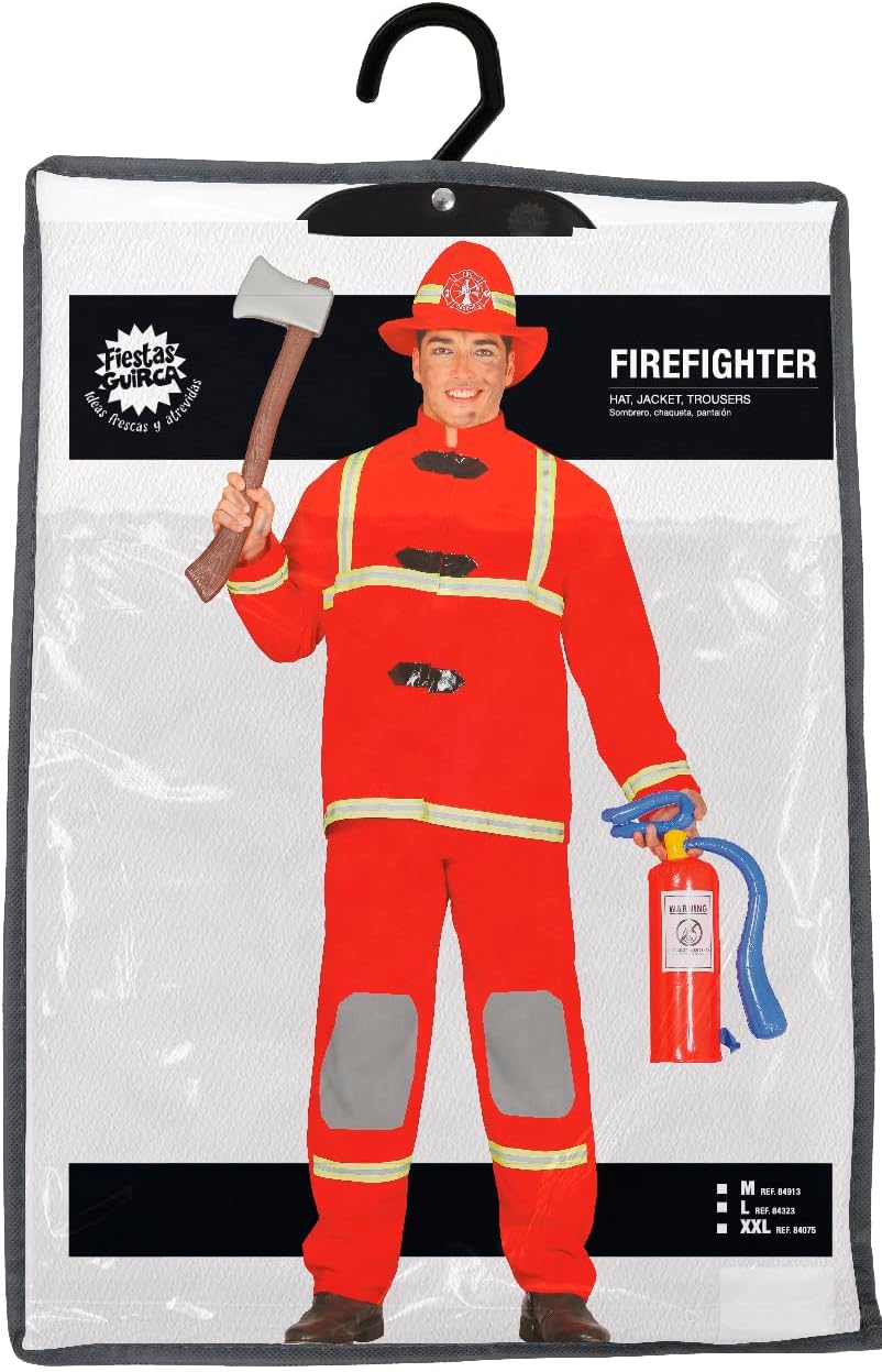 Costume da Pompiere per adulti. Taglia L. Include giacca, pantaloni e cappello.