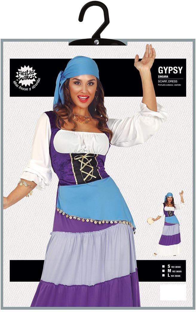 COSTUME VESTITO ABITO TRAVESTIMENTO CARNEVALE DONNA ADULTA ZINGARA, CHIROMANTE, GITANA, GIPSY, NEGROMANTE, CHIAROVEGGENTE La confezione comprende vestito e fascia per la testa. Tamburello in vendita separatamente. Ideale per diverse occasioni: feste in maschera, Carnevale, party in costume, feste di compleanno, recite, commedie, etc.