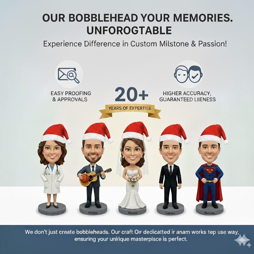 Completamente personalizzabile: personalizza la tua statuetta con opzioni per il tono della pelle, l'acconciatura, il colore degli occhi e accessori come cappelli o occhiali. Esprimi la tua personalità: crea una versione mini di te o di una persona cara, completamente adattata al suo stile. Dettagli di alta qualità: realizzati con precisione per catturare ogni dettaglio, offrendo un design realistico e divertente che è unicamente tuo. 【Durevole e pronto per l'esposizione】 Realizzato con materiali di alta qualità, questo pupazzo è costruito per durare e costituisce un ottimo pezzo da esposizione per la casa o l'ufficio. 【Idea regalo perfetta】 Un regalo premuroso e memorabile per compleanni, anniversari o occasioni speciali.